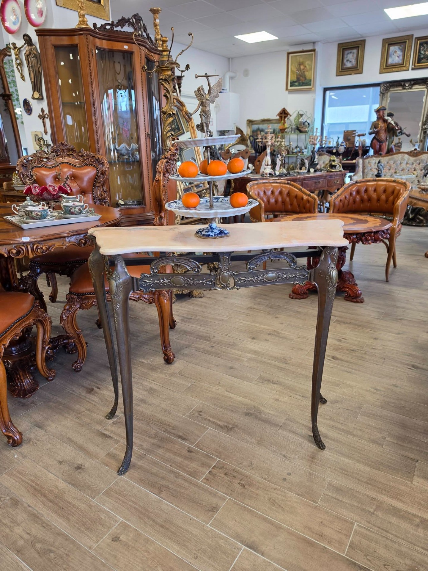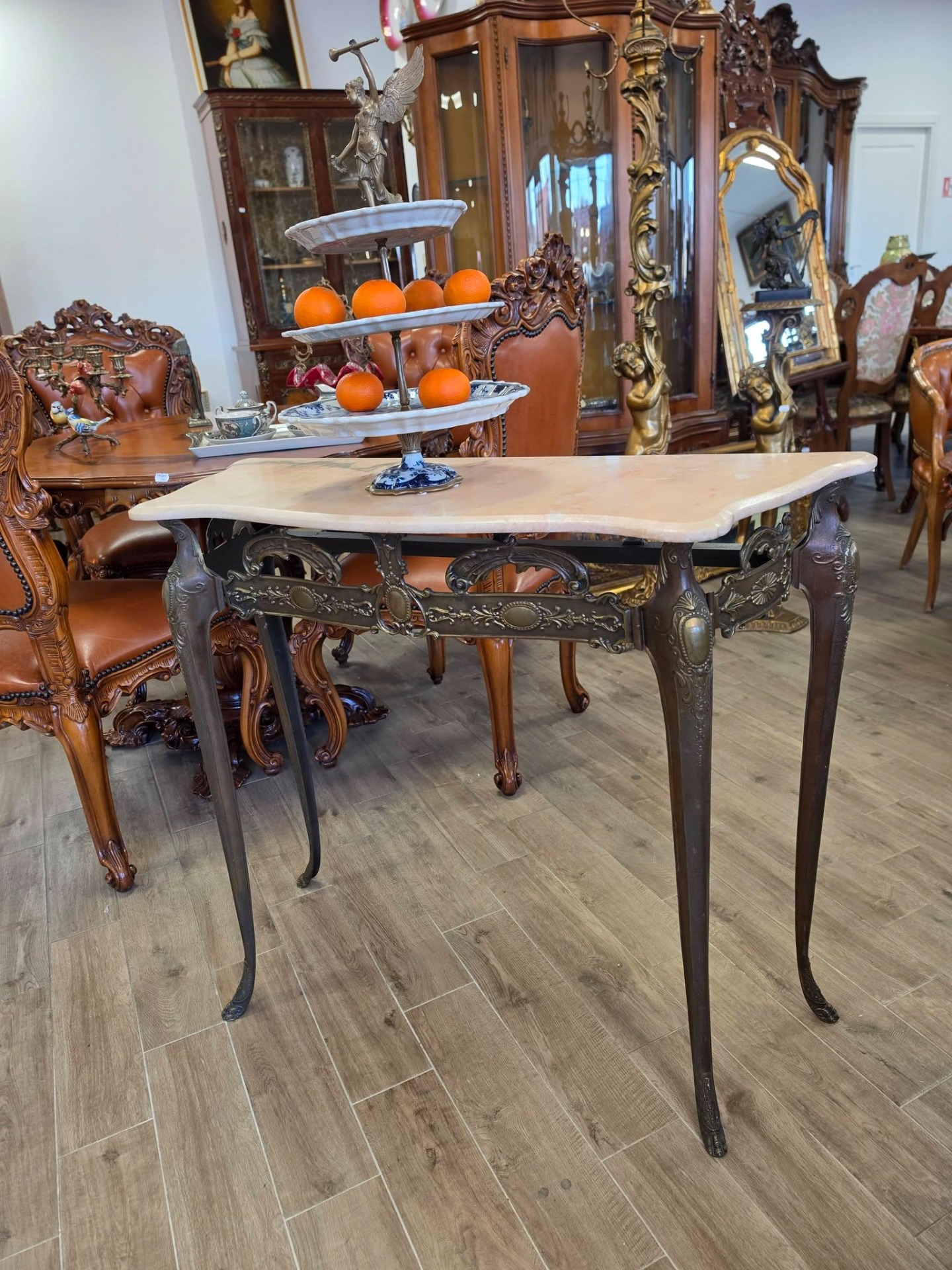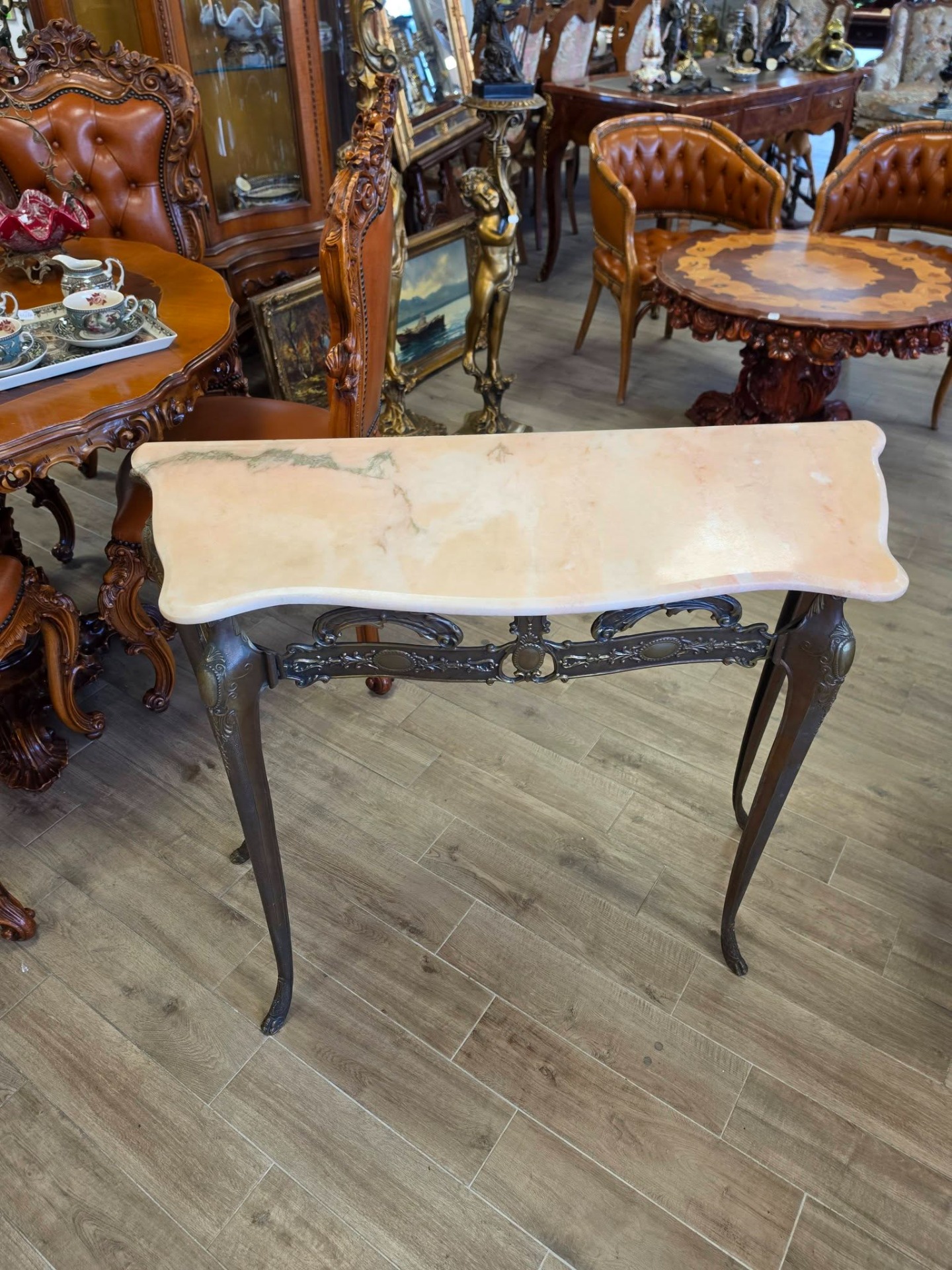 Consola din bronz cu blat din marmură-