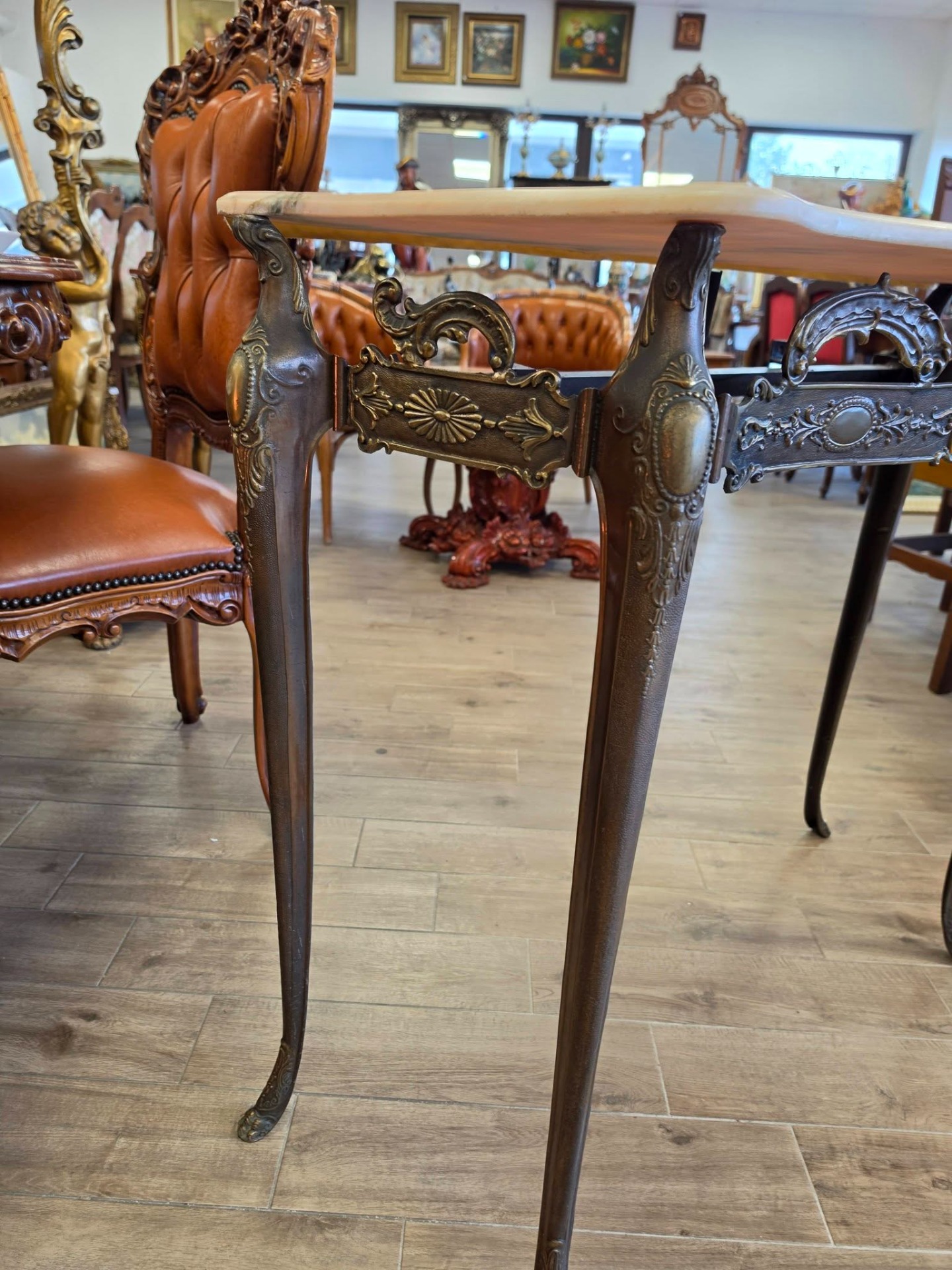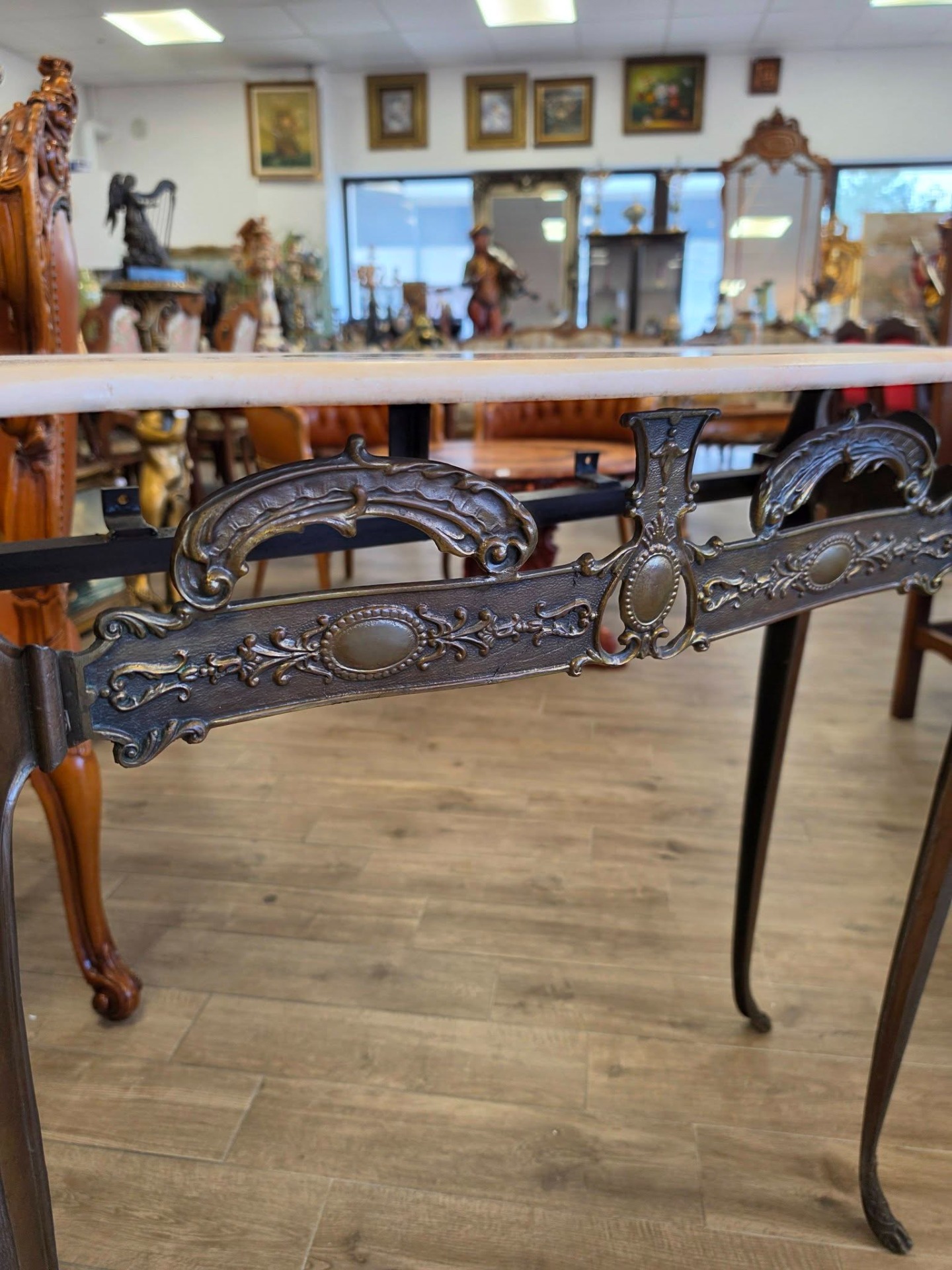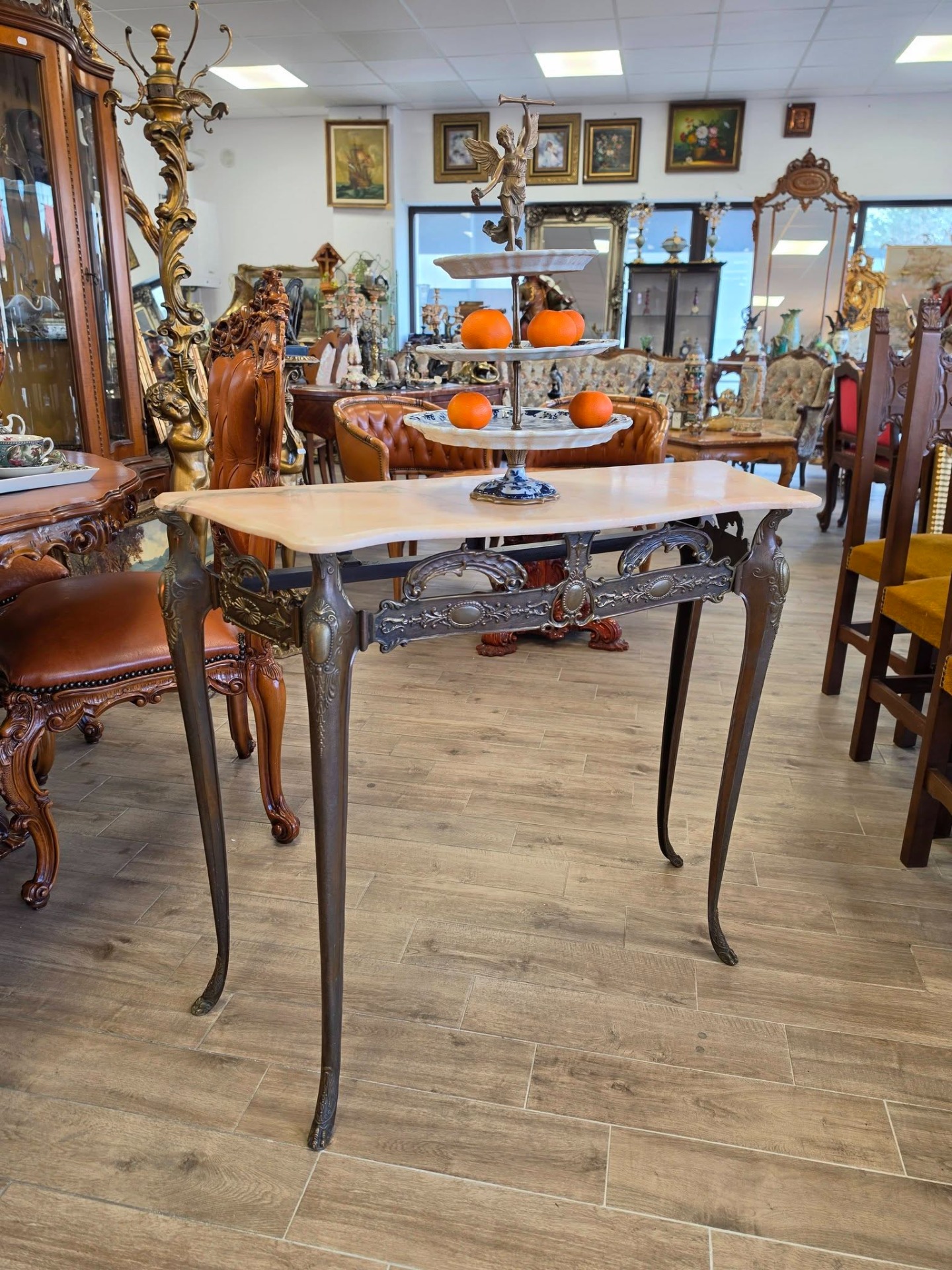 Consola din bronz cu blat din marmură-
