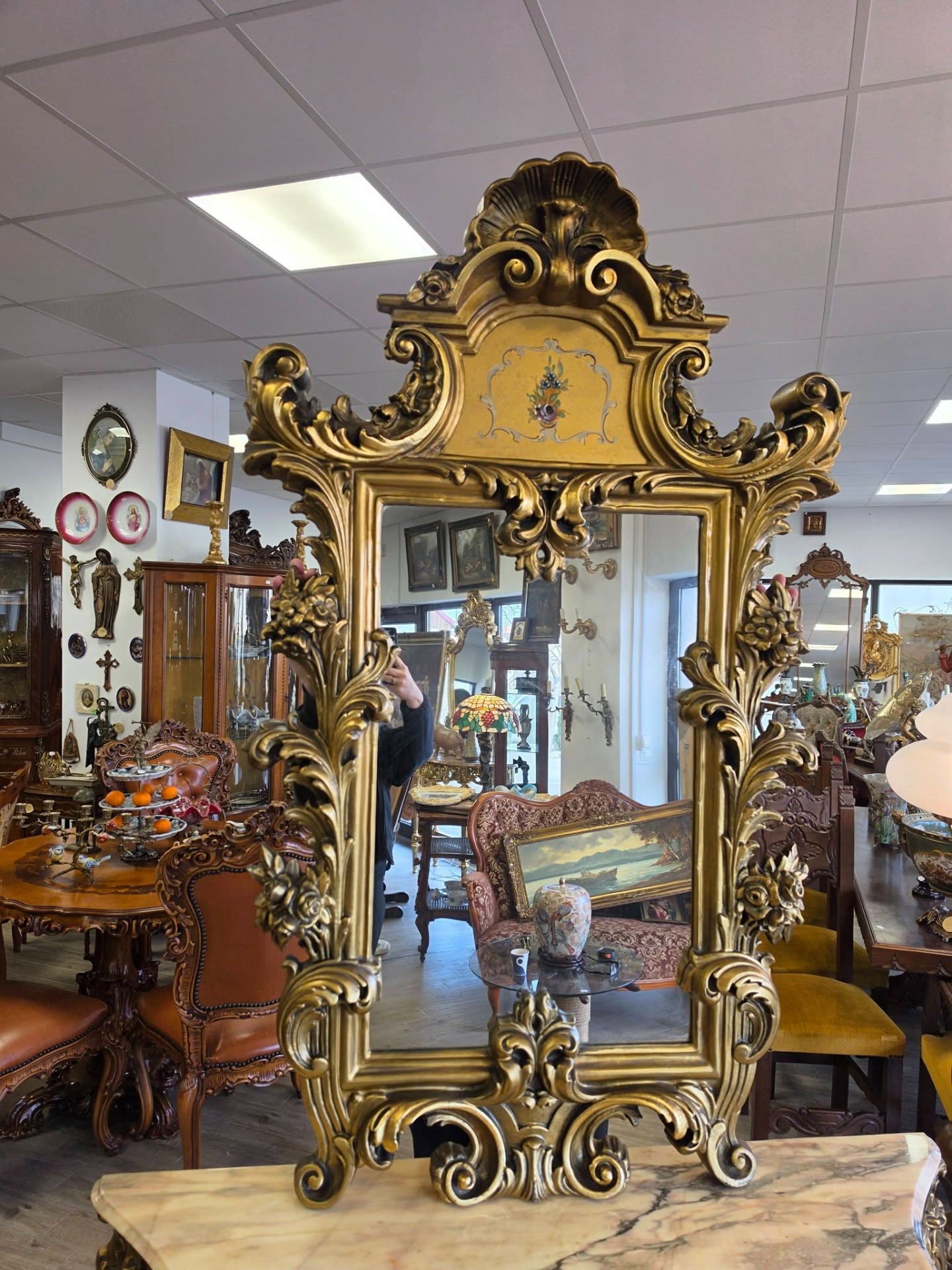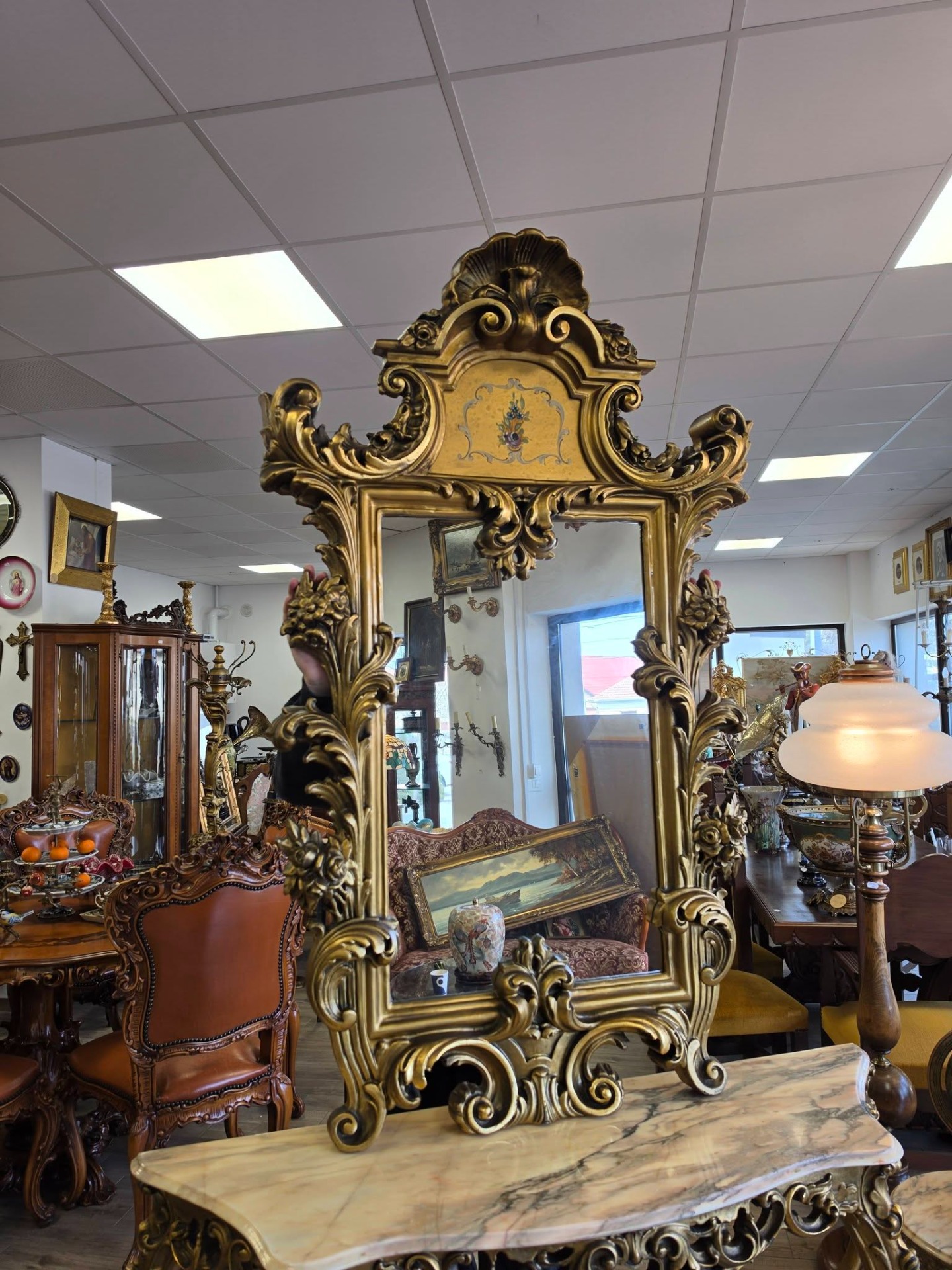 Oglindă: mare, cu ramă decorativă elaborată