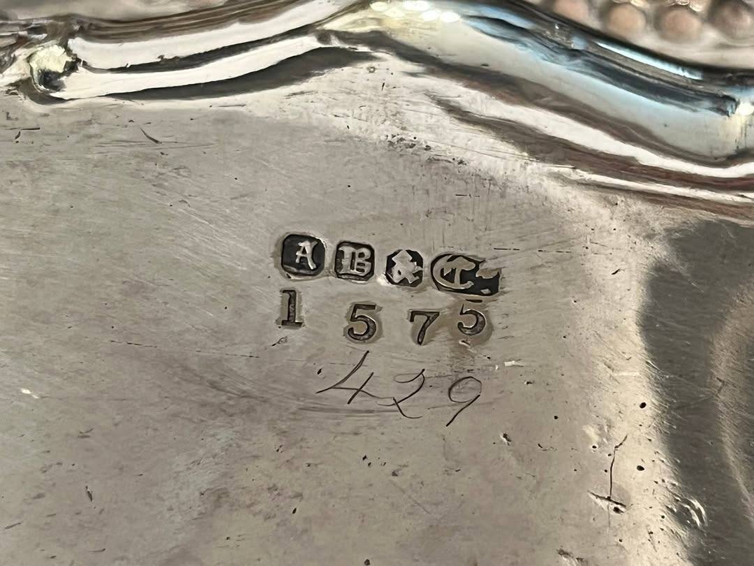 Interiorul este gravat cu motive florale, iar marginea este decorată în relief, specific obiectelor decorative vintage. Marcajele existente indică producția de atelier și numerotarea piesei.