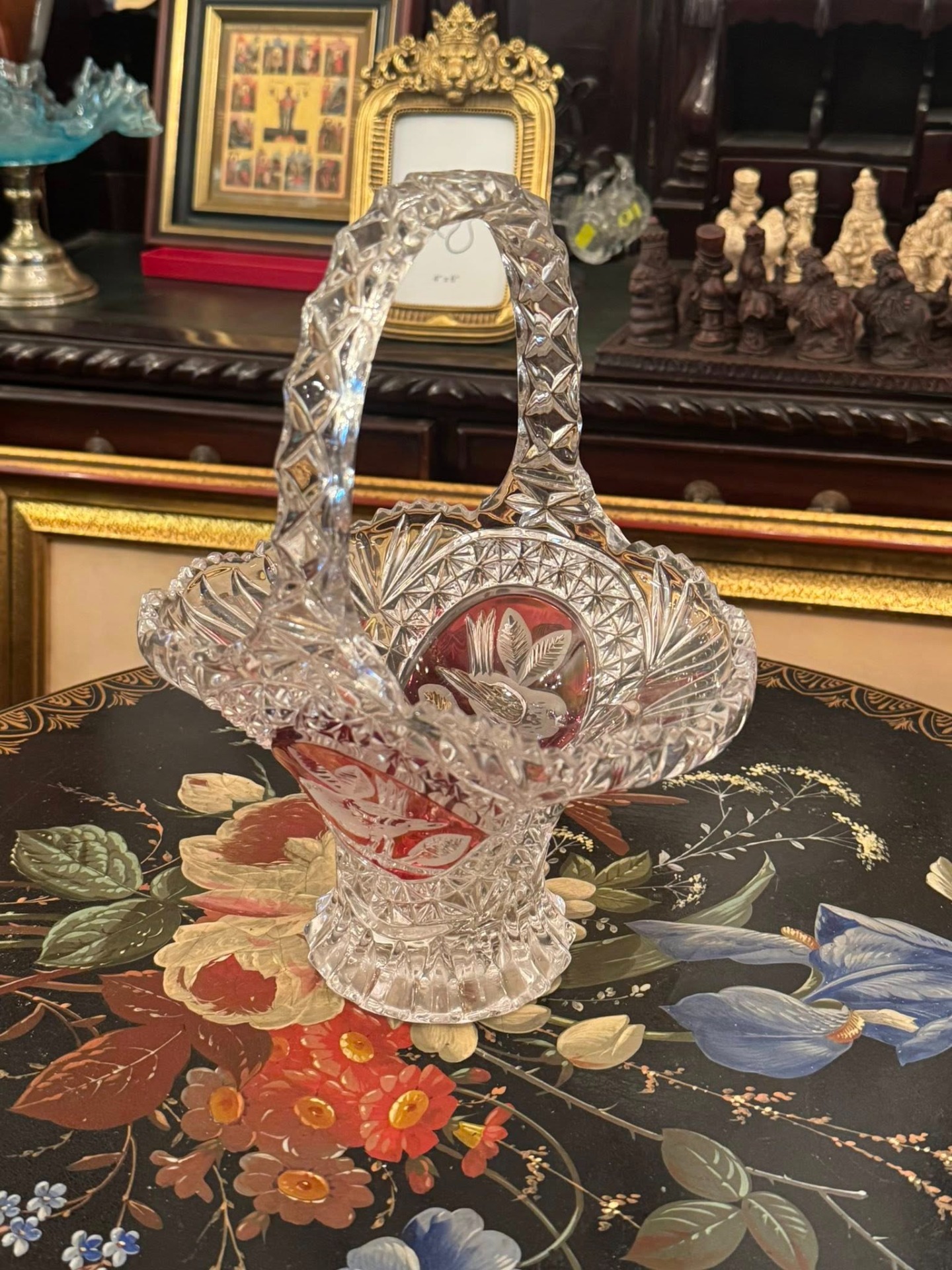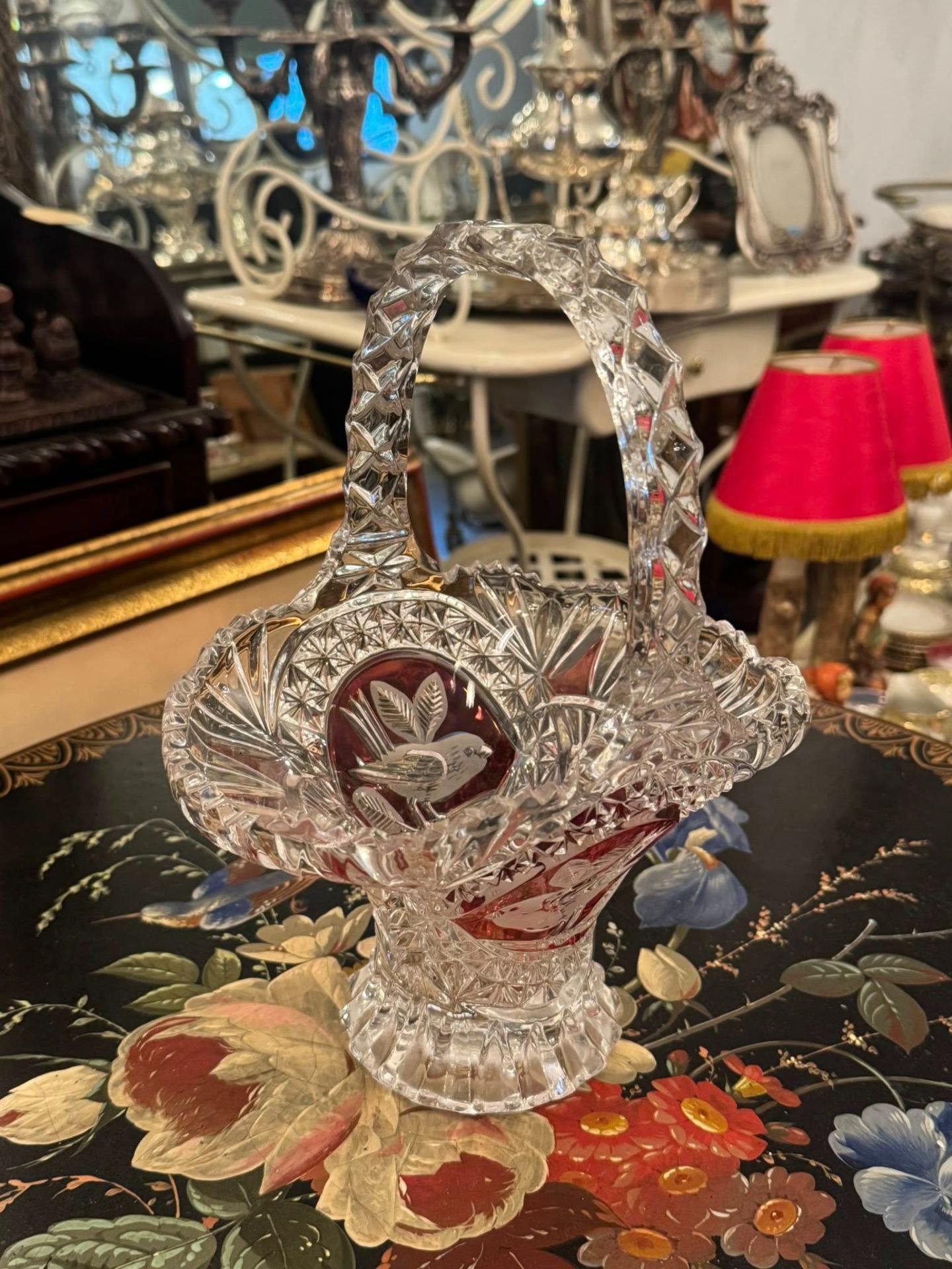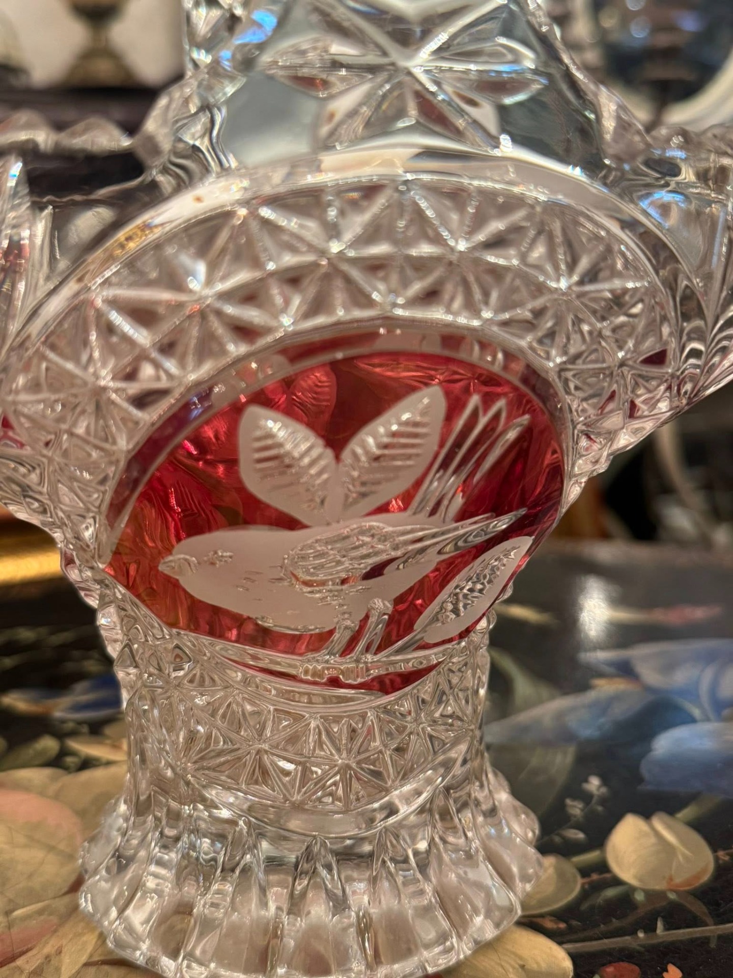 Coșuleț/fructiera din cristal de Boemia cu rândunica