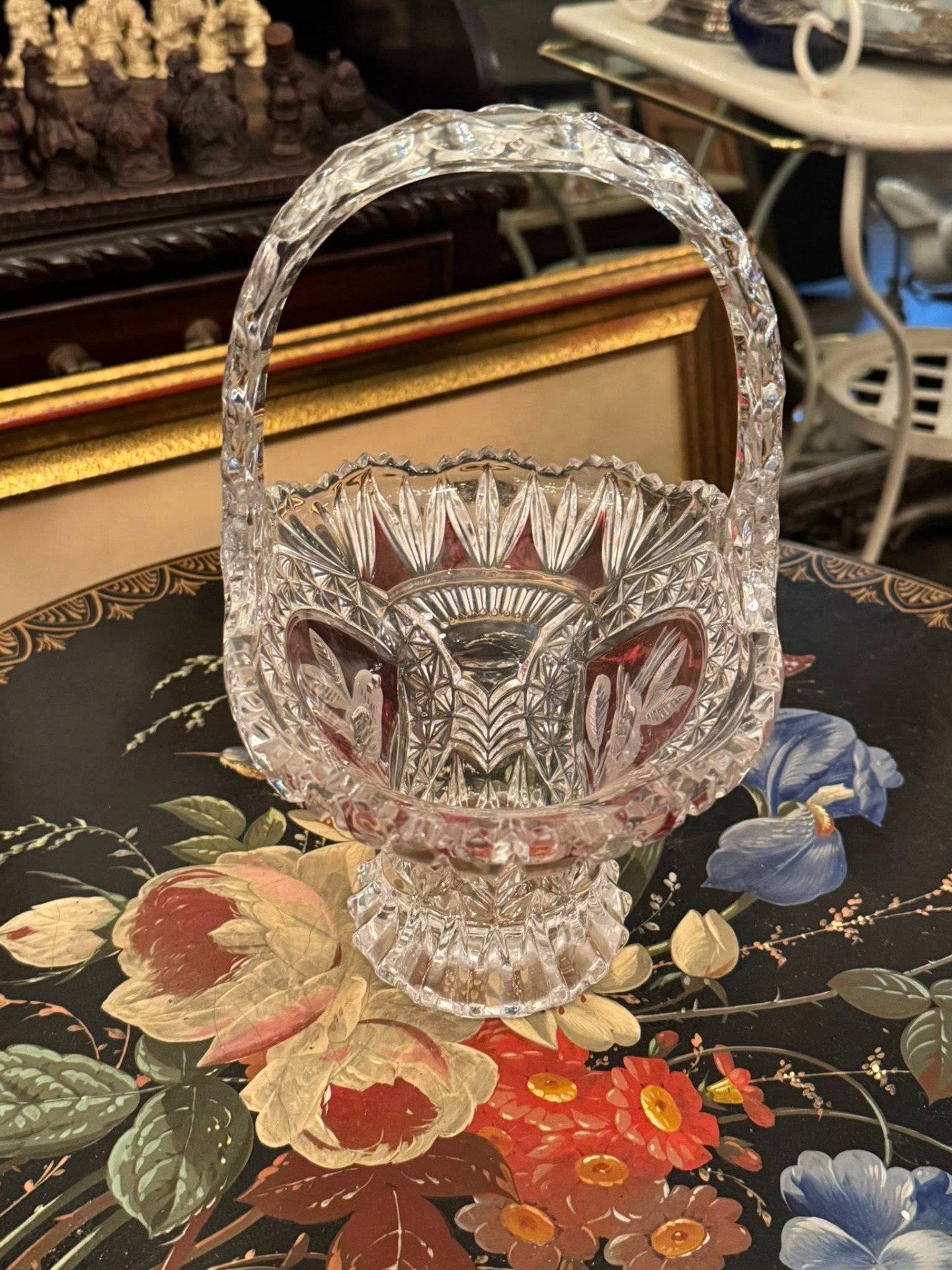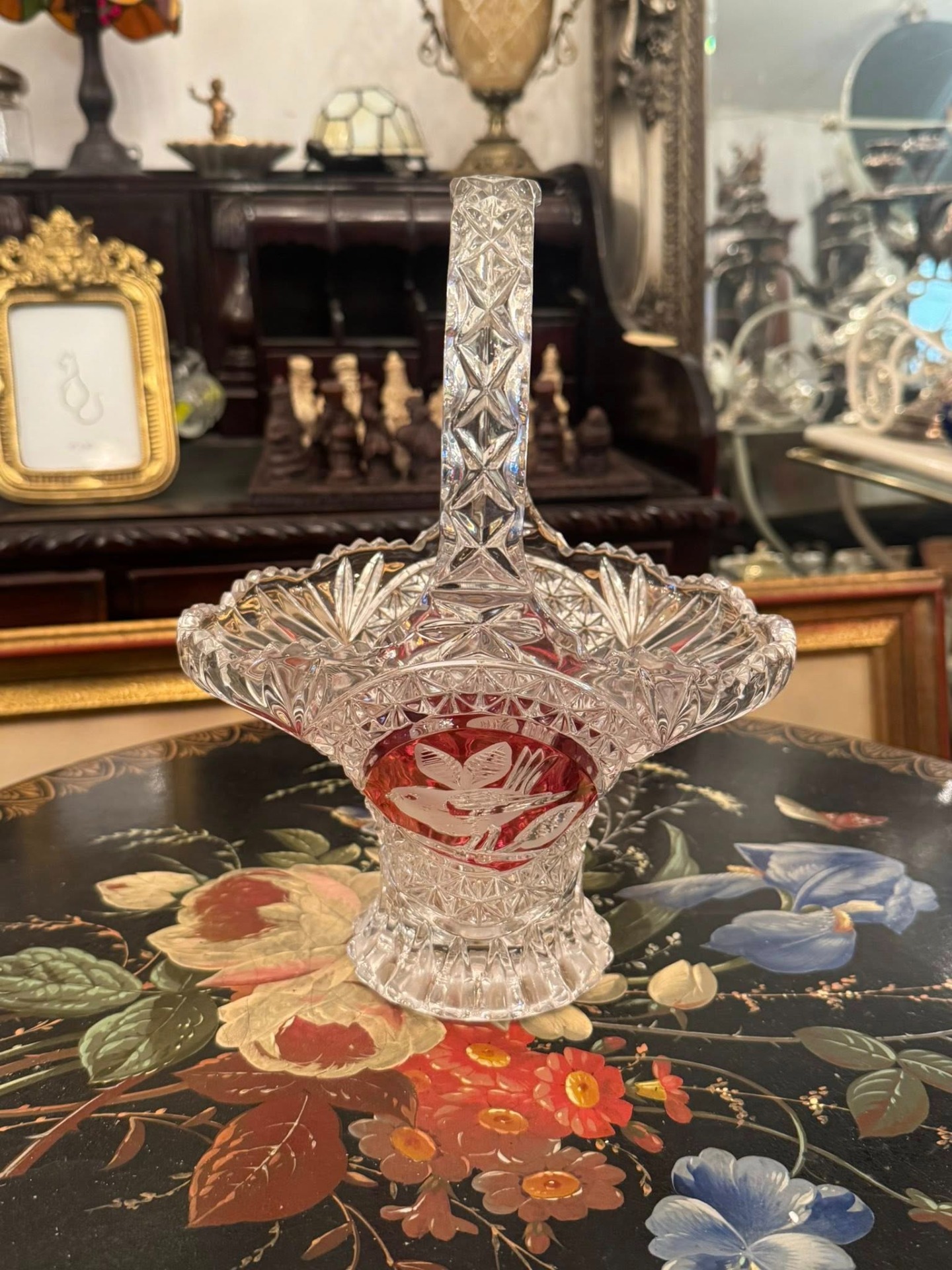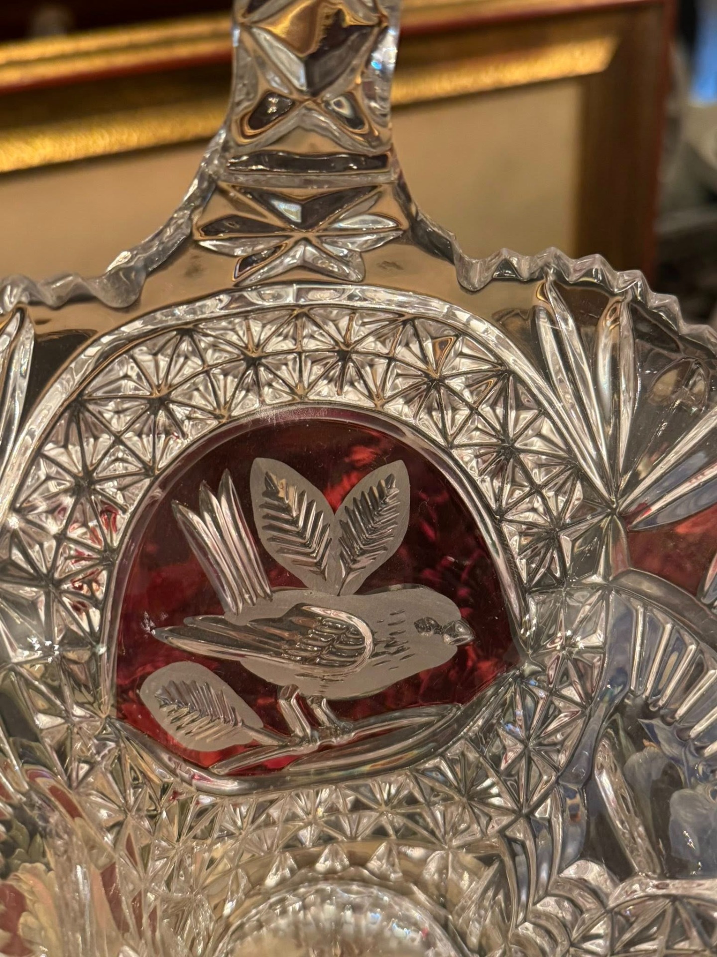 Coșuleț/fructiera din cristal de Boemia cu rândunica