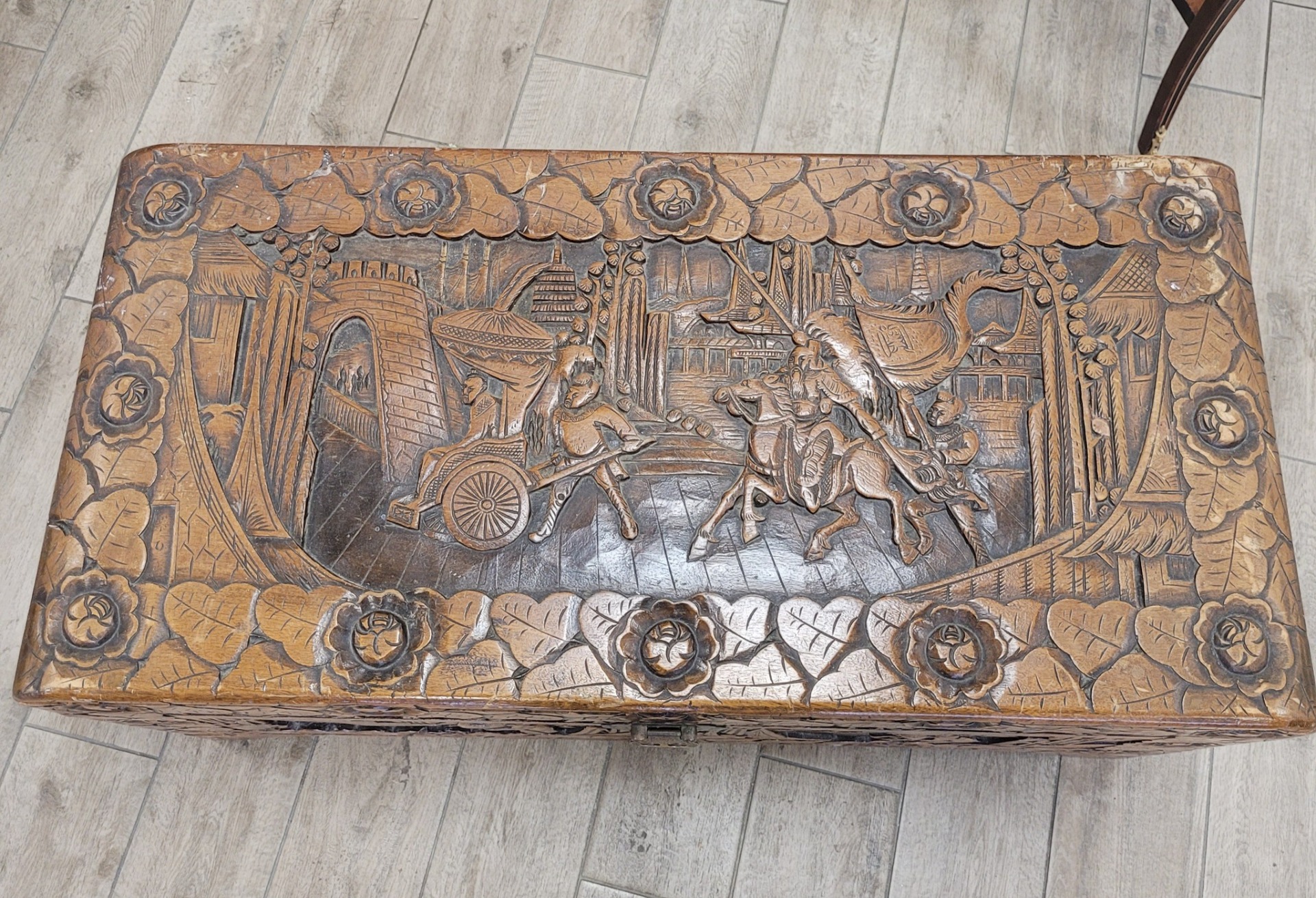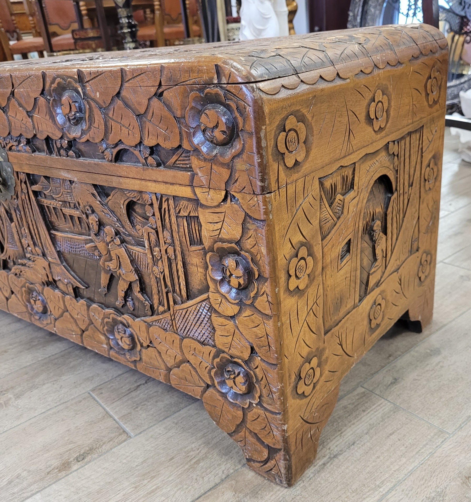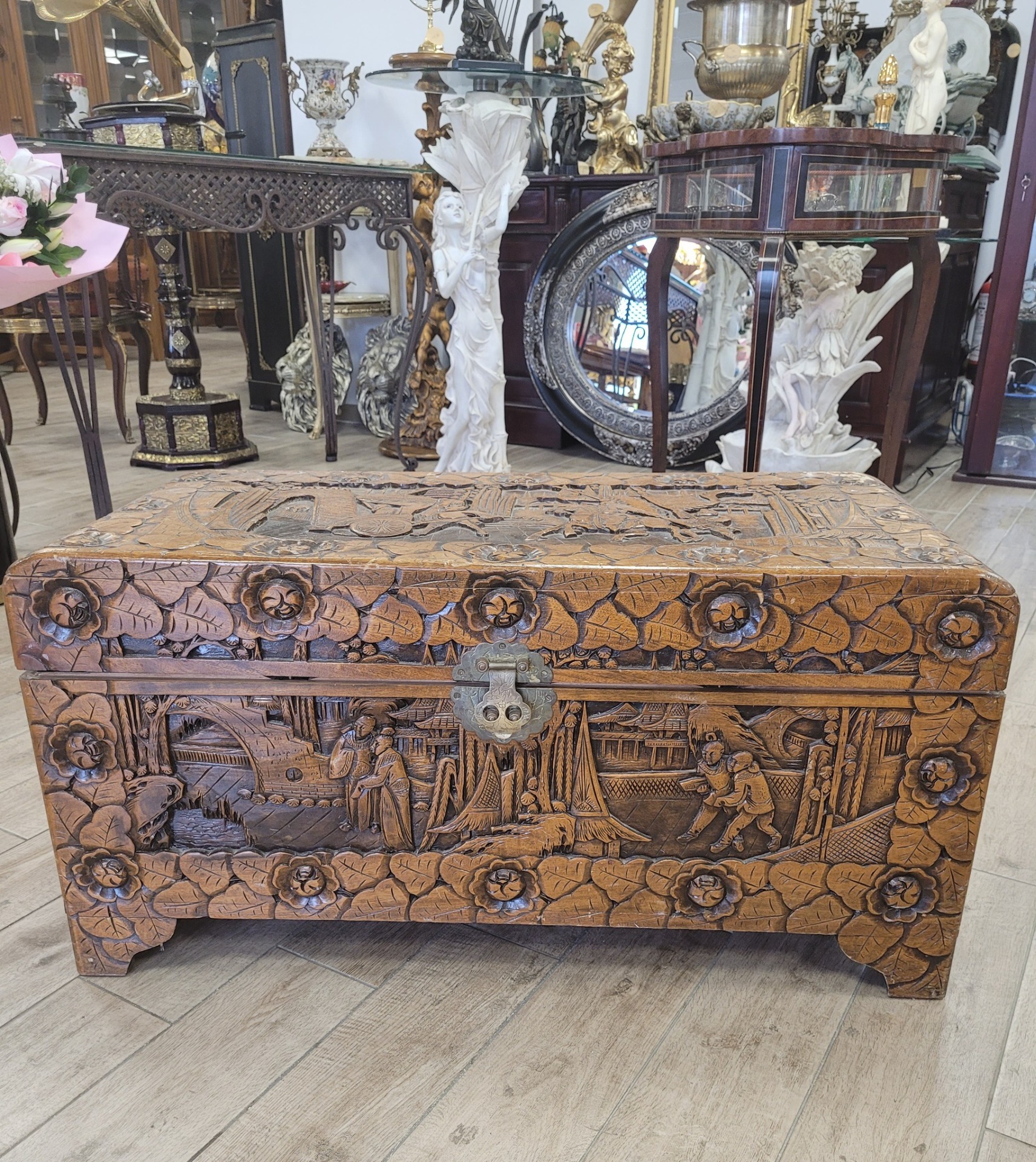 Cufăr asiatic vintage sculptat manual - Hung Hop, Hong Kong.