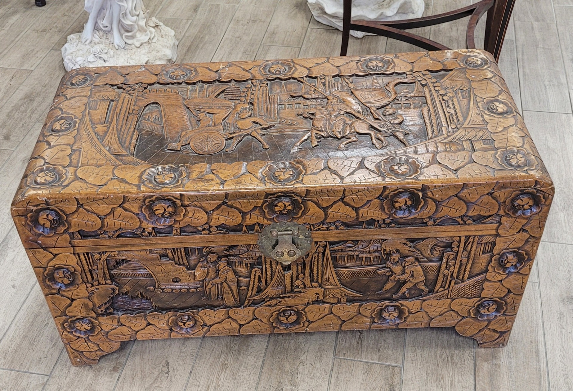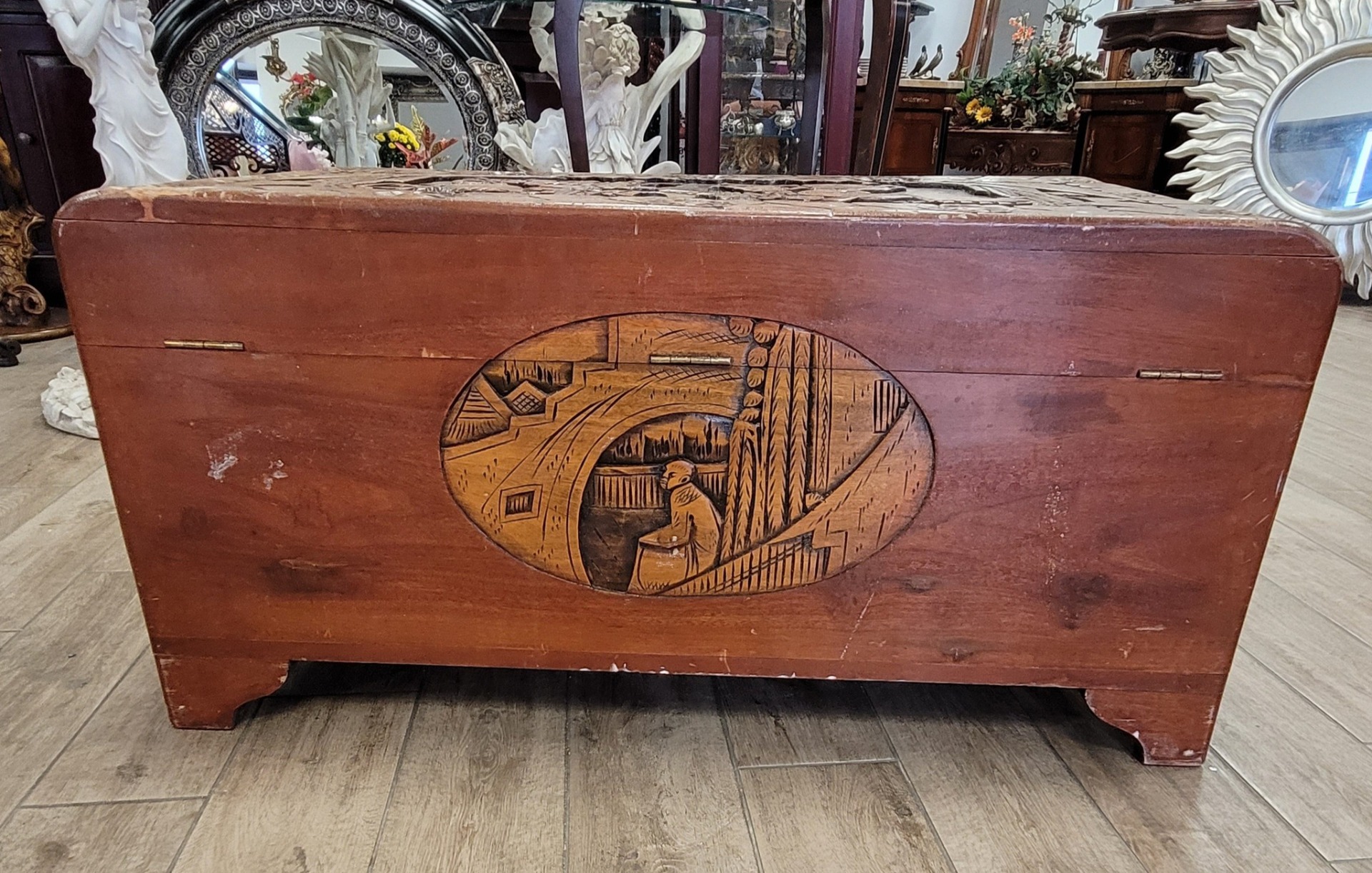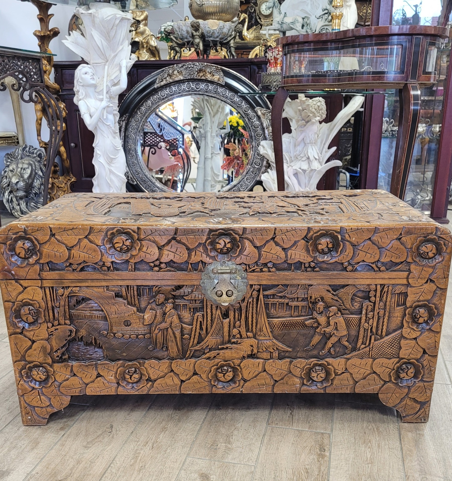 Cufăr asiatic vintage sculptat manual - Hung Hop, Hong Kong.