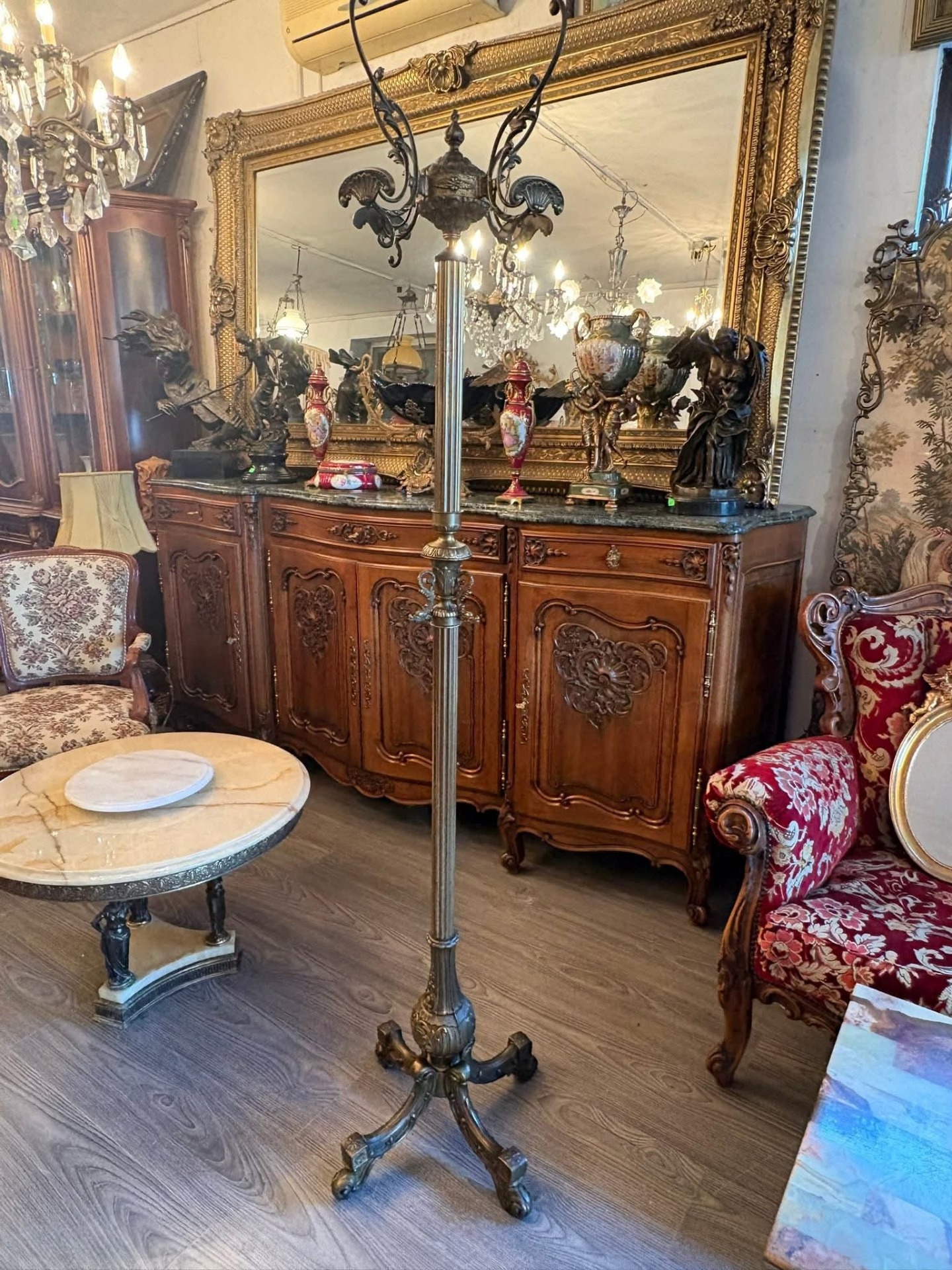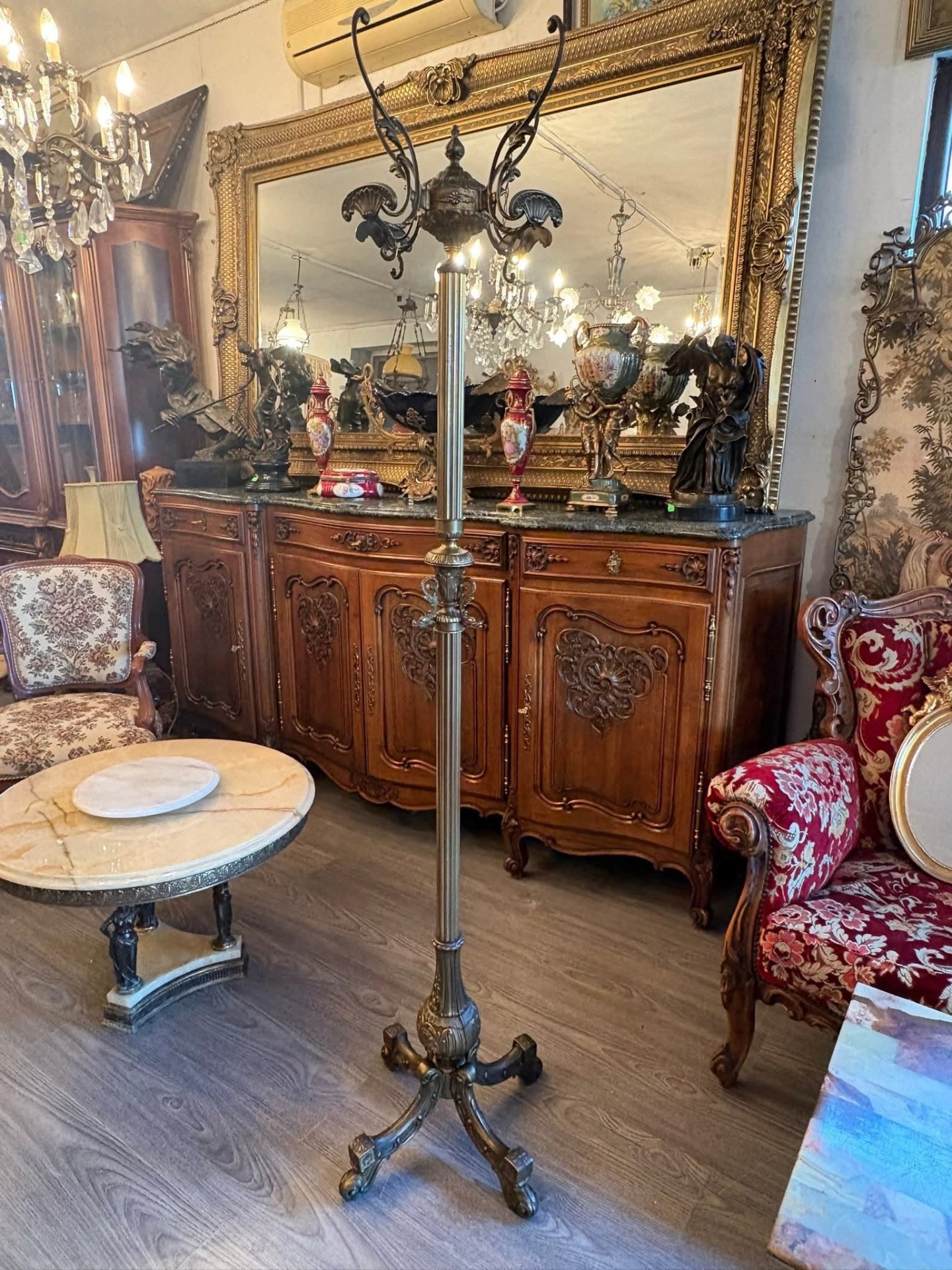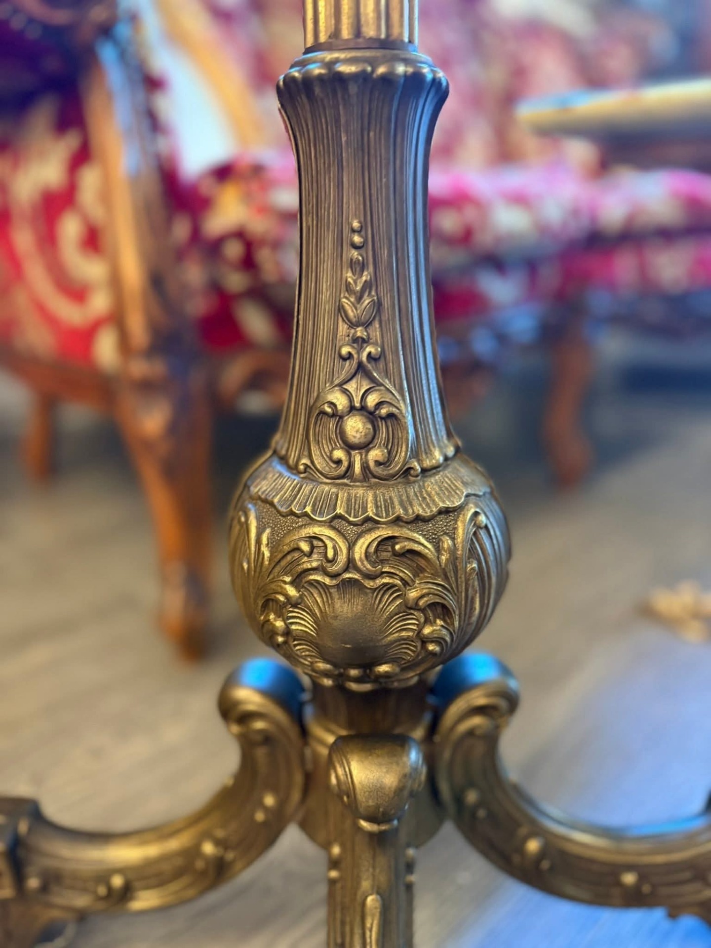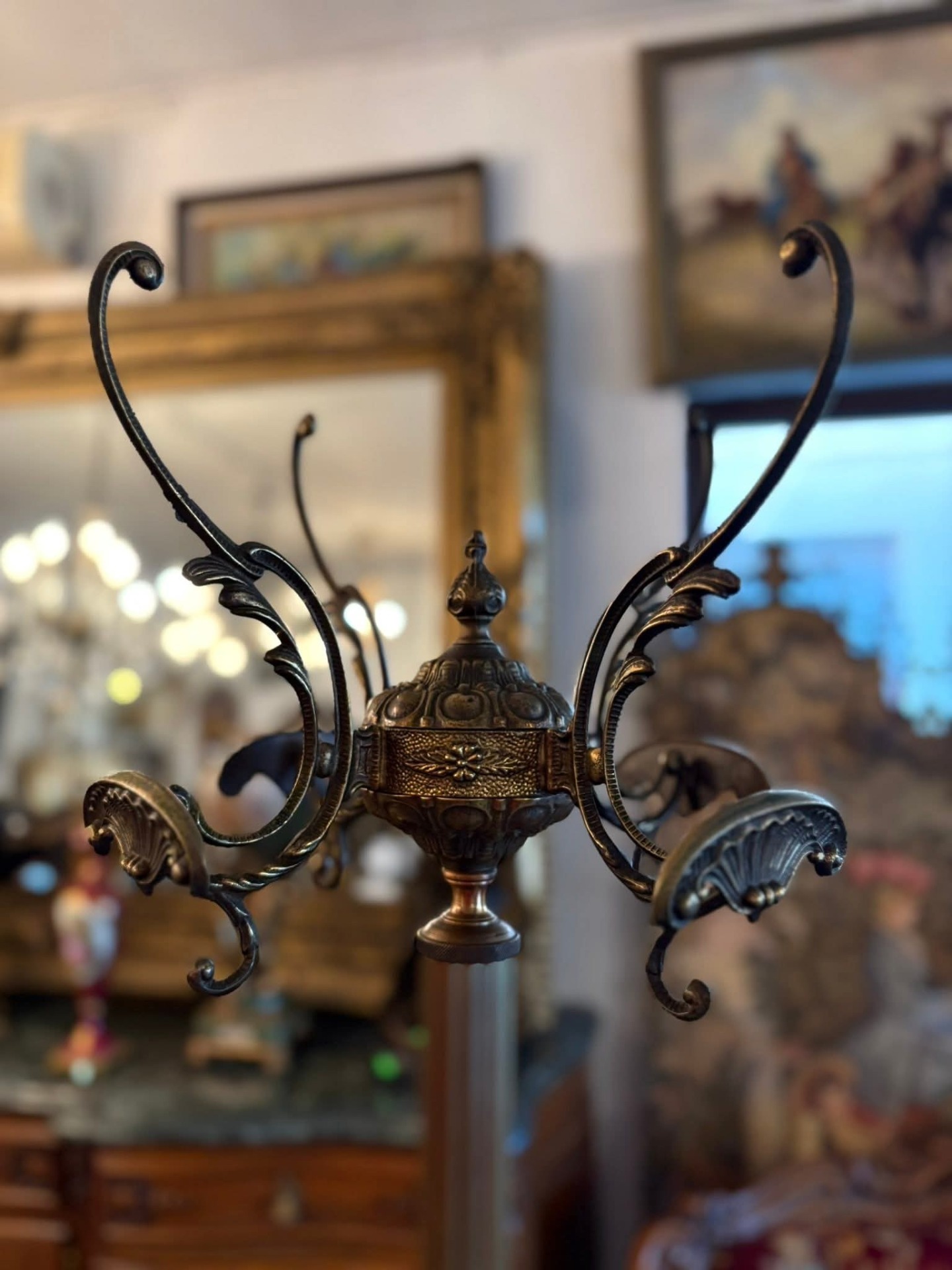 Cuier de podea deosebit, realizat din bronz, cu design elegant în stil clasic/baroc. Piesa are multiple brațe curbate, frumos ornamentate, cu detalii decorative fine și bază solidă, stabilă.