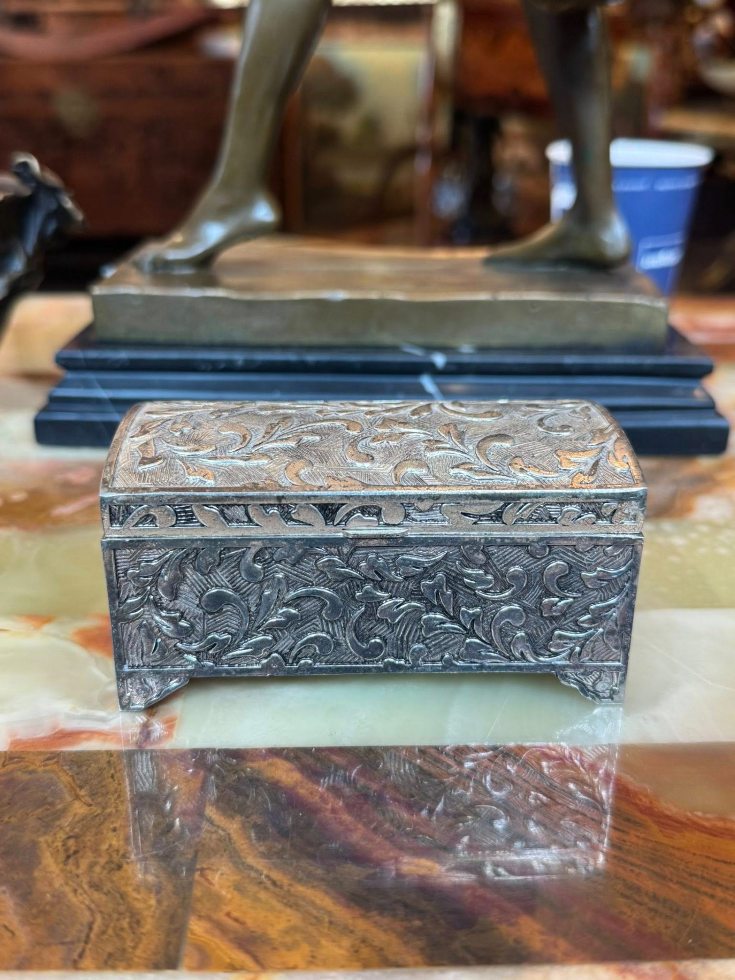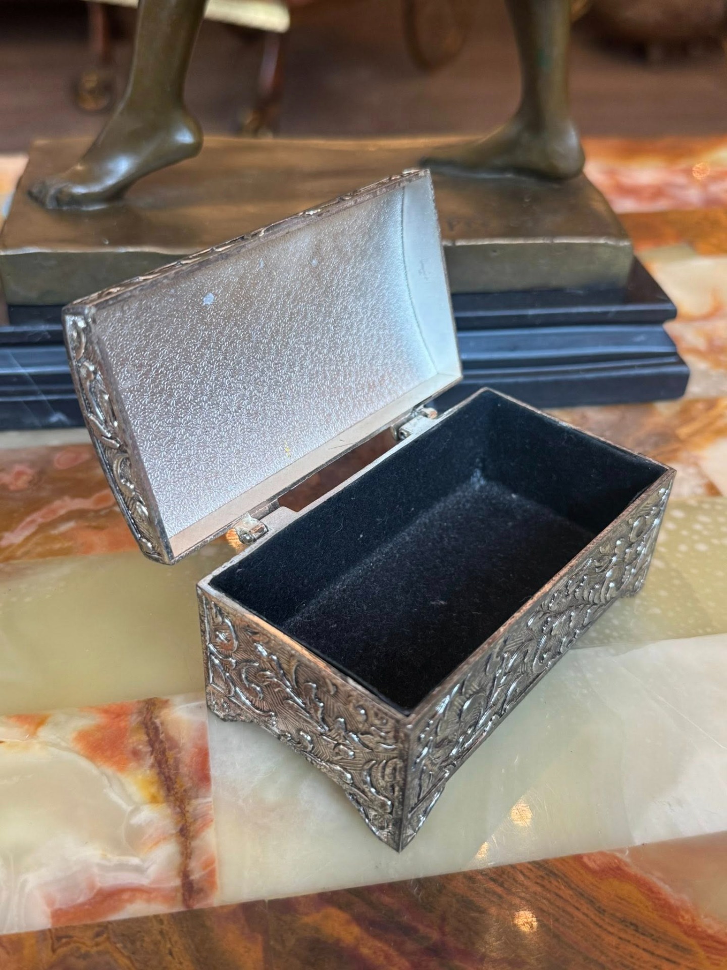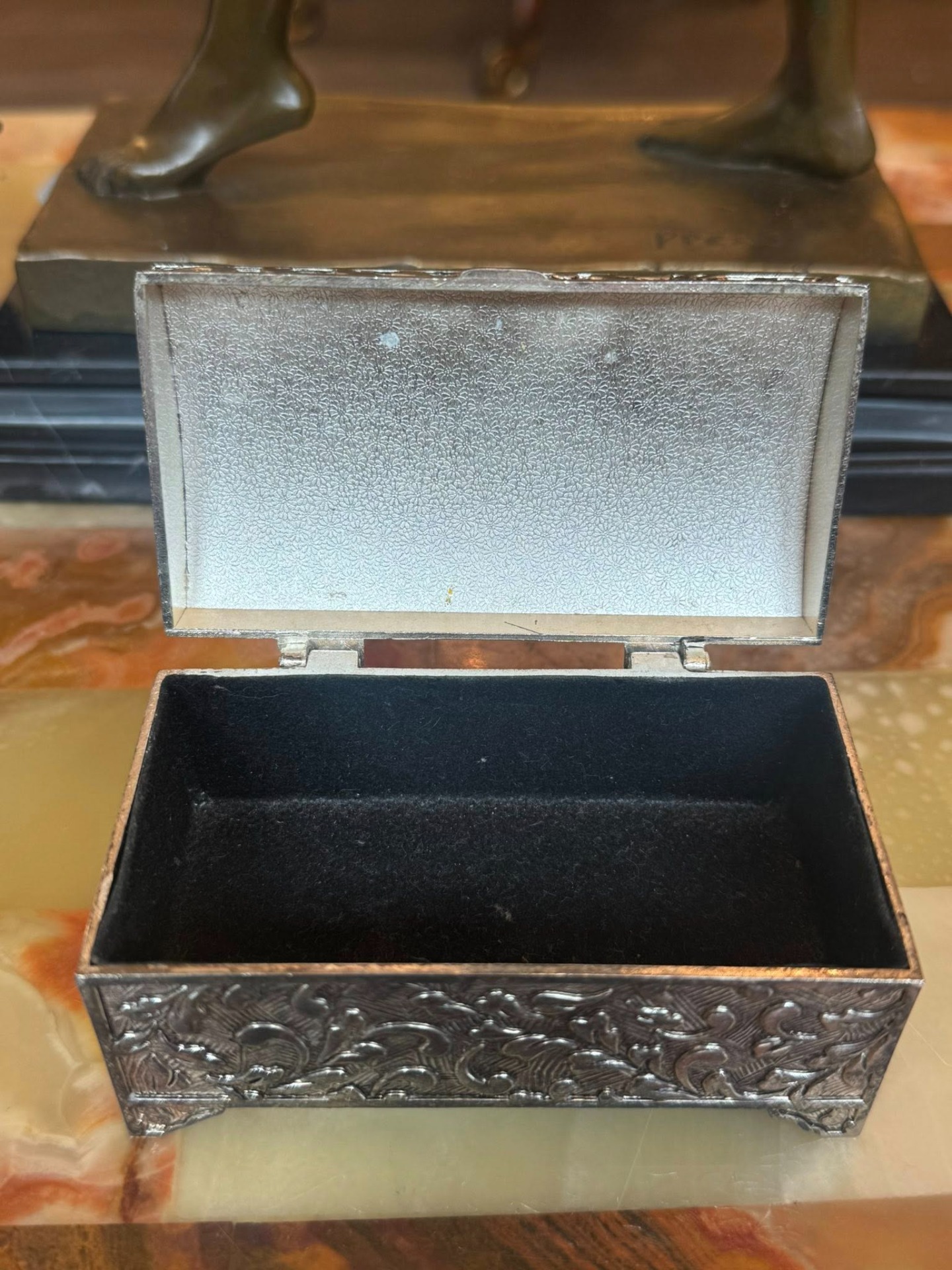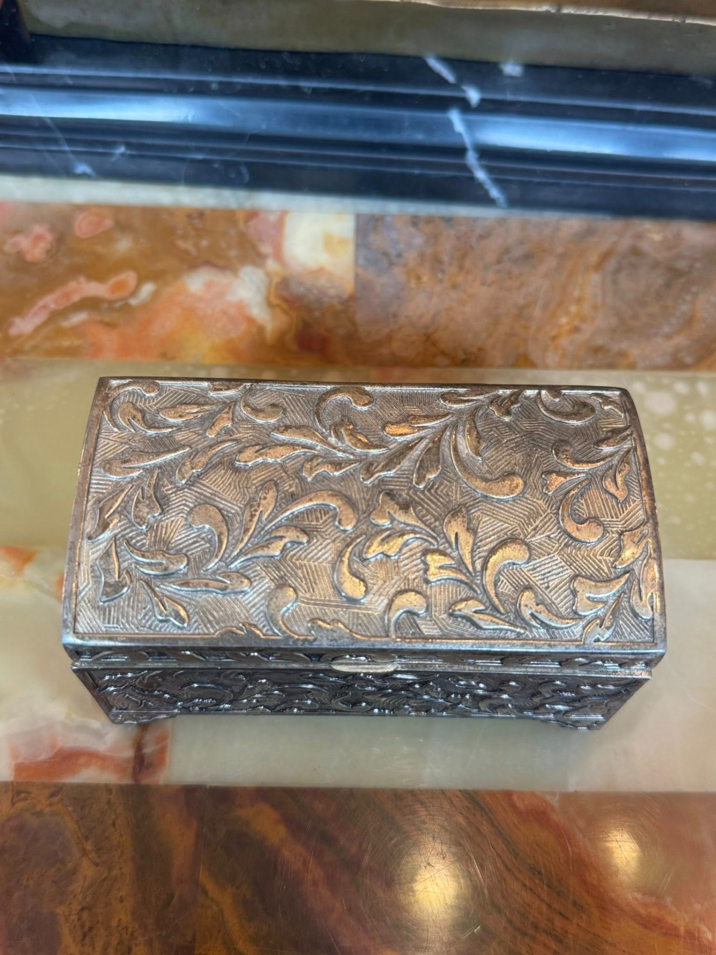 Cutiuță de bijuterii sau de tabac, decorată cu motive vegetale în relief, în stil Neo-Baroc.