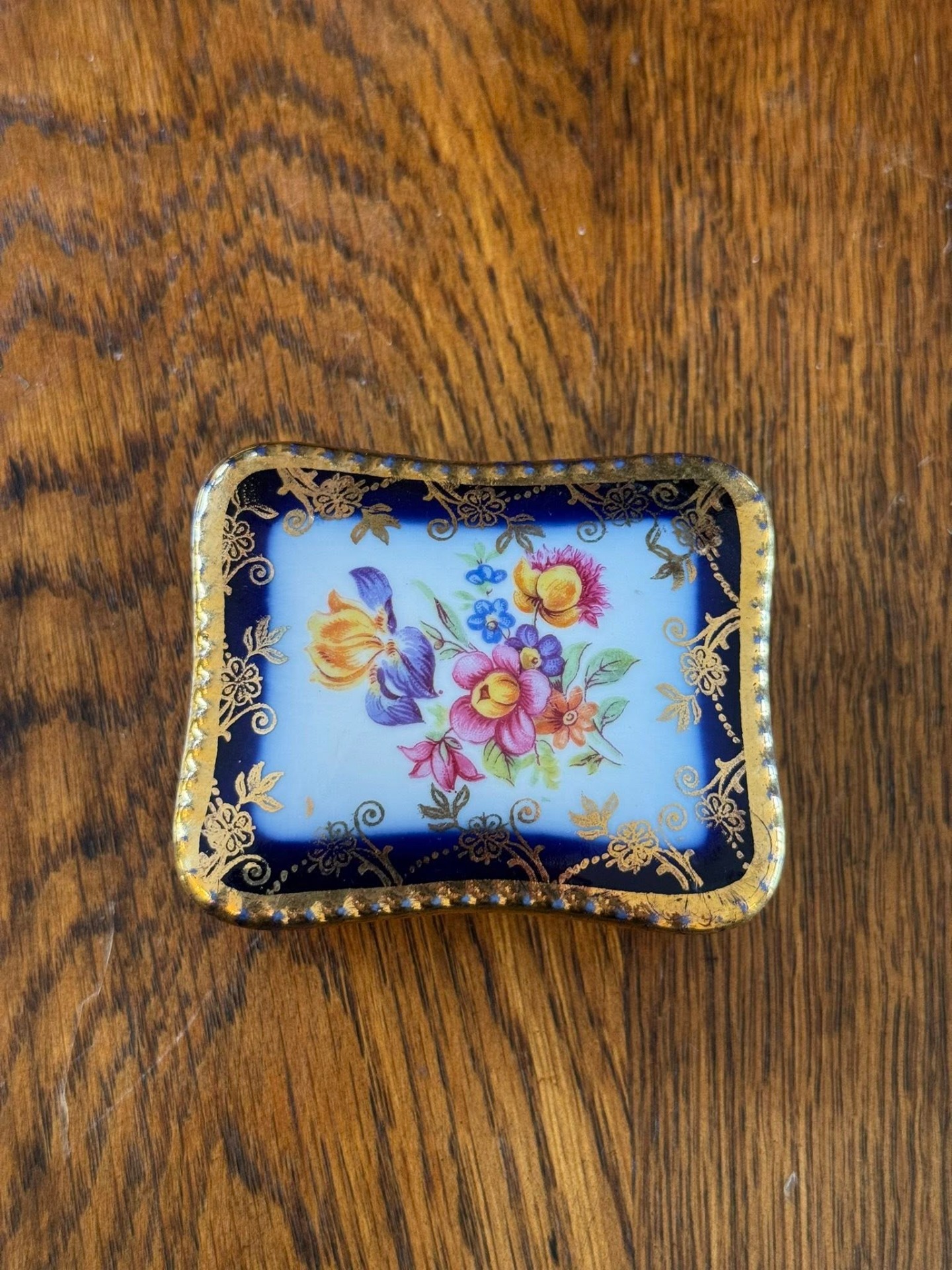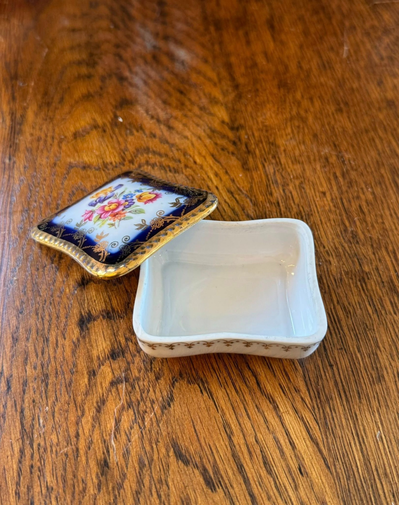 Cutiuță din porțelan fin cu motiv floral, marca Moschendorf (Porzellanfabrik Moschendorf), situată în Bavaria, Germania.