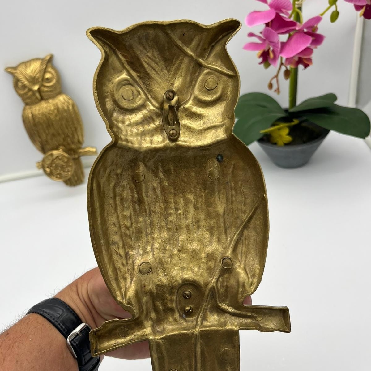 Doua cuiere din bronz stilizate in forma de bufnita.