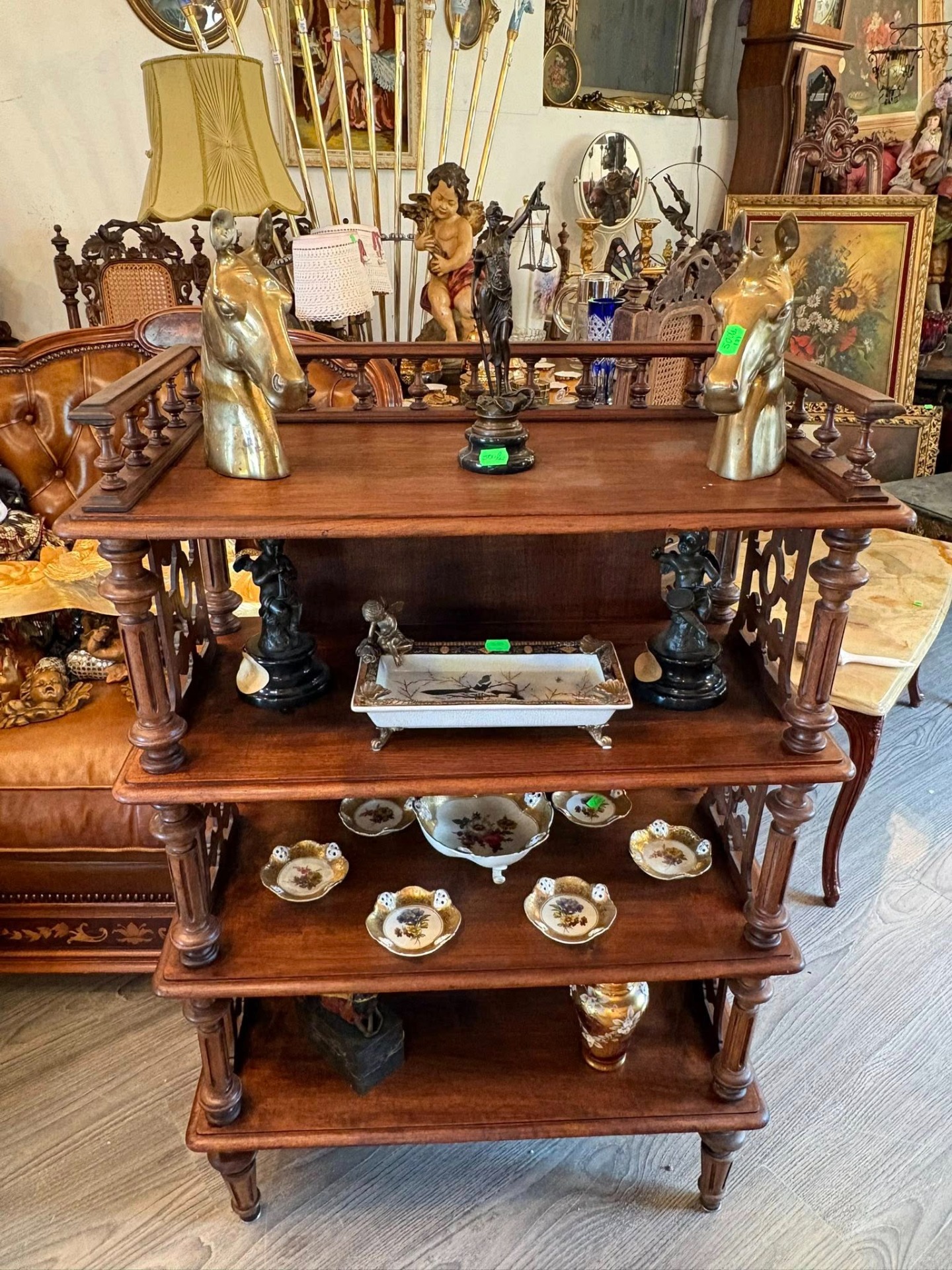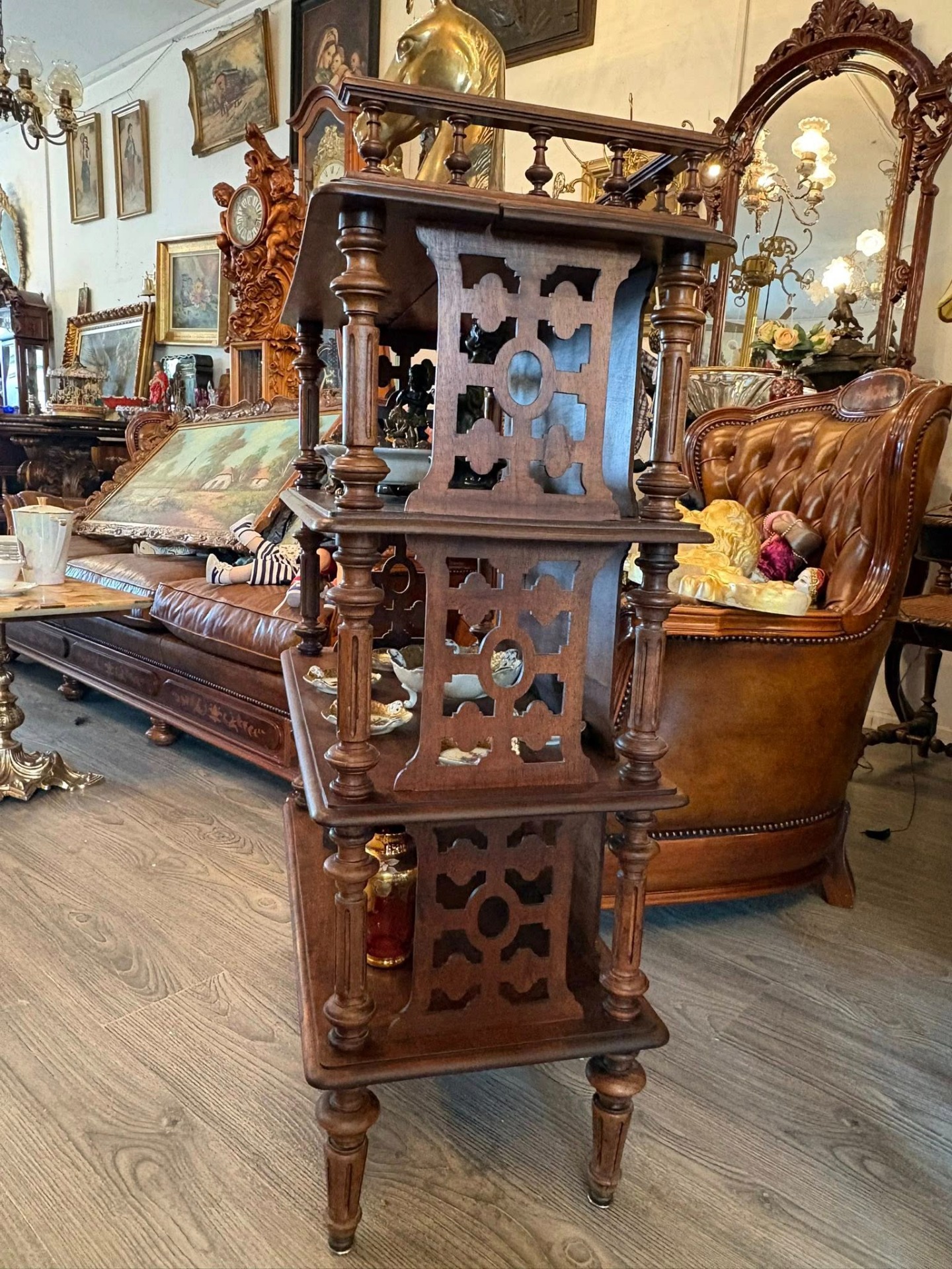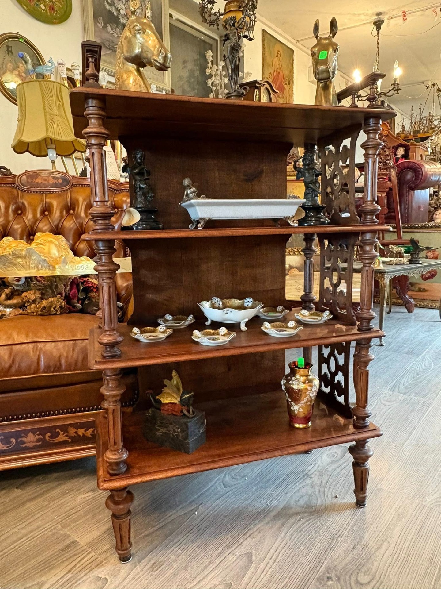 Etajeră Antică din Lemn Masiv – Stil Victorian / Étagère.deosebită din lemn masiv, o piesă de mobilier cu caracter, ideală pentru expunerea colecțiilor de porțelan, cărților sau obiectelor decorative vintage.
