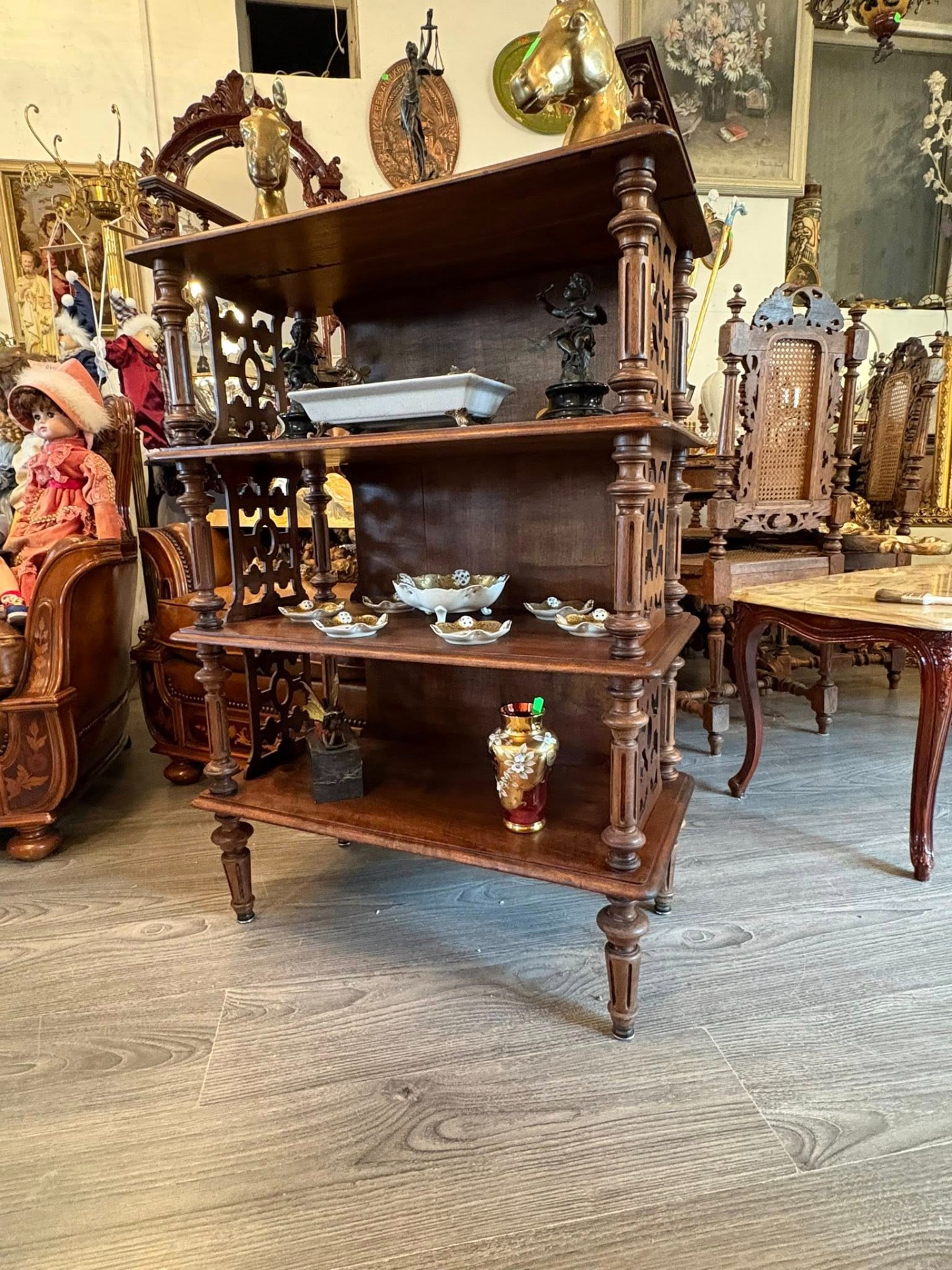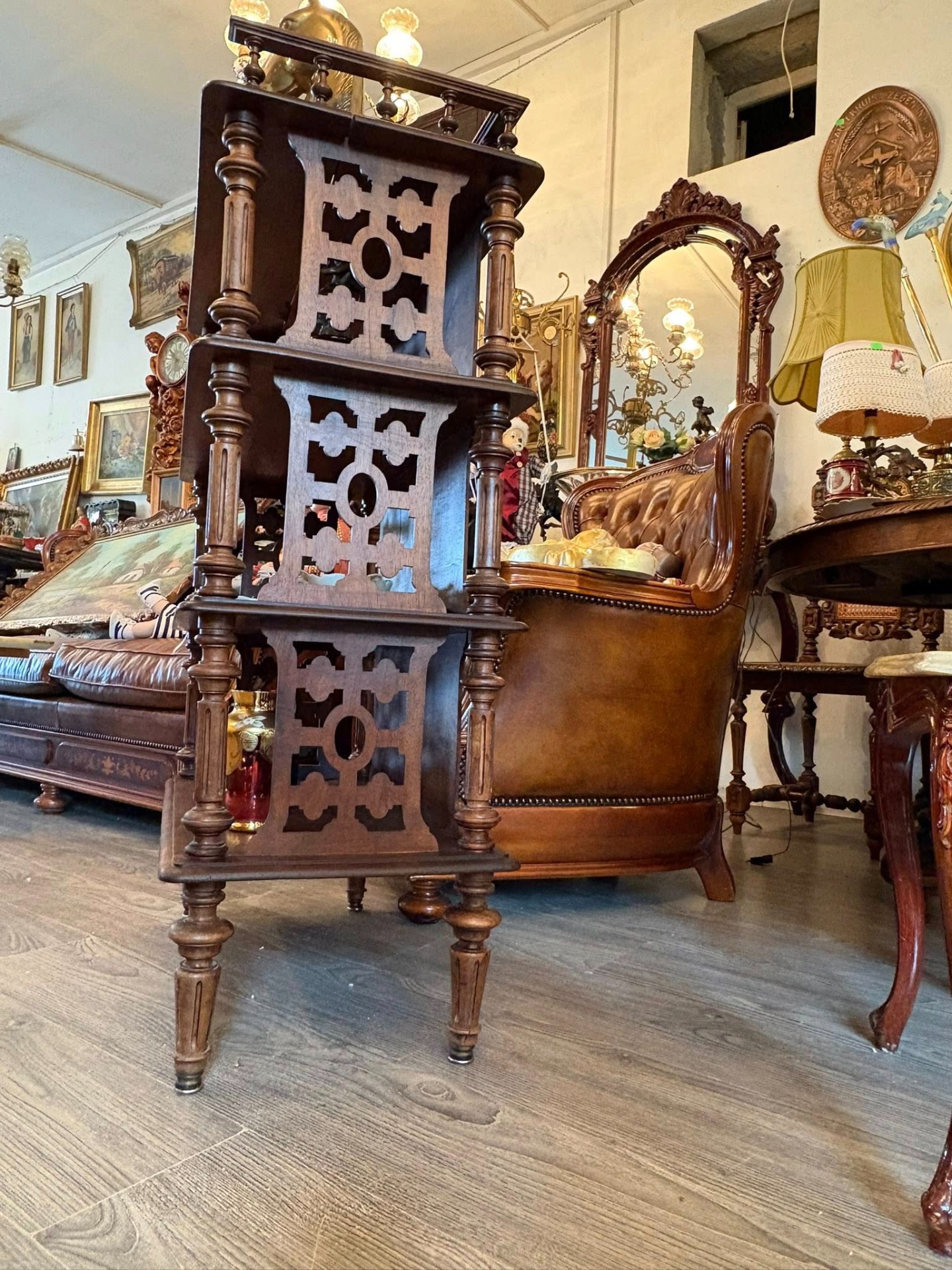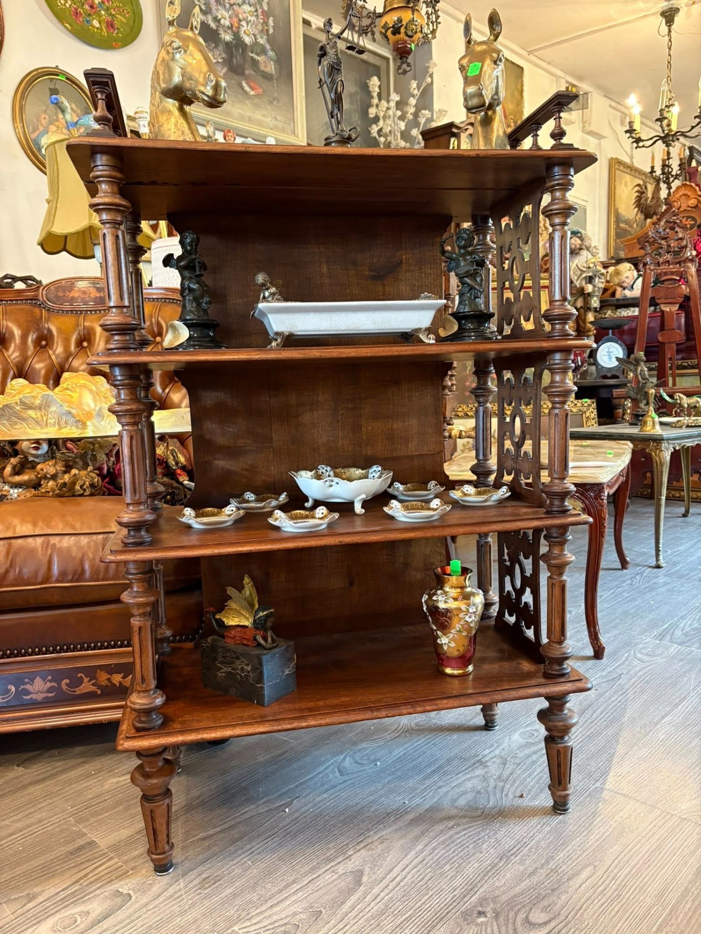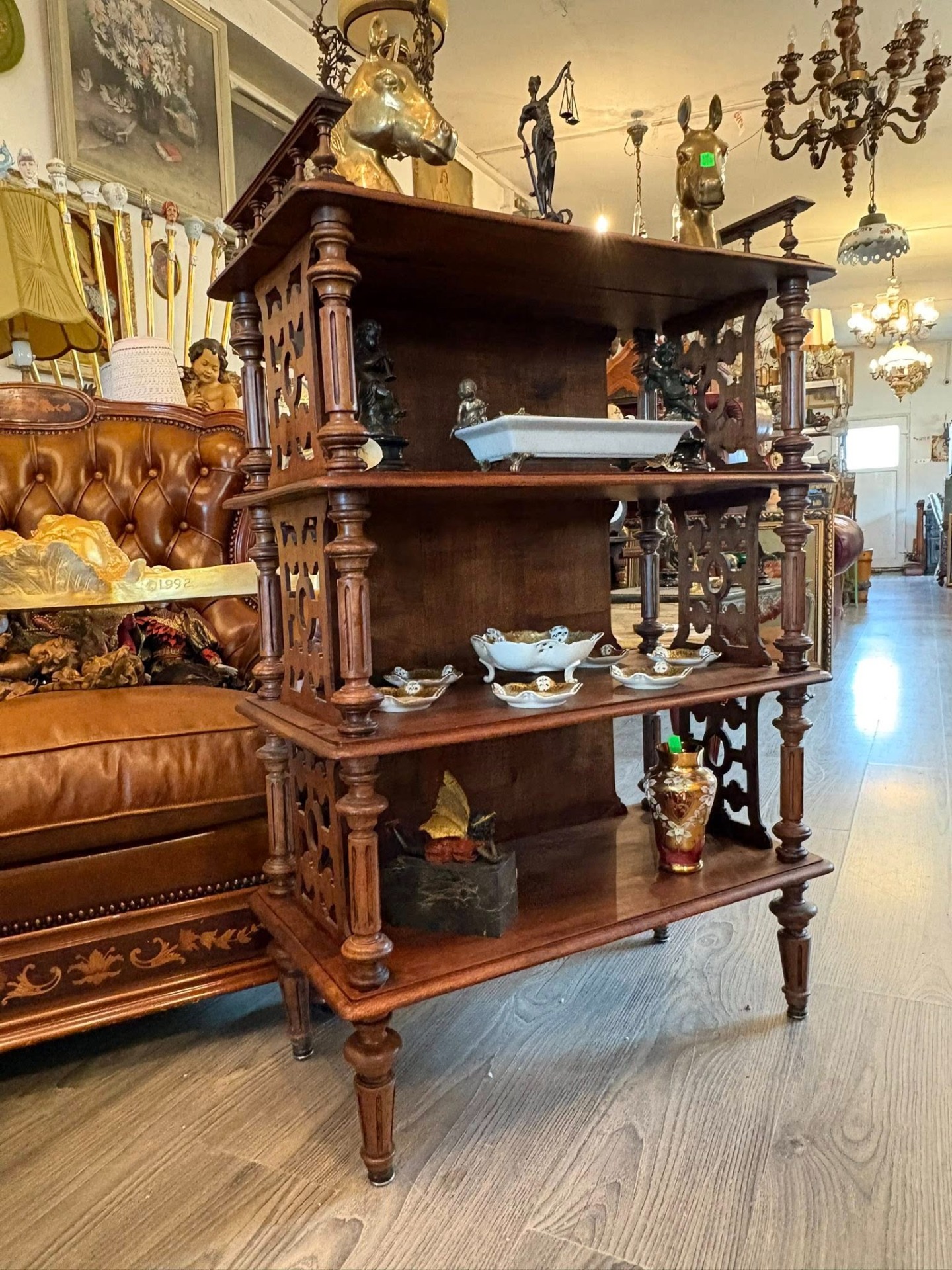 Etajeră Antică din Lemn Masiv – Stil Victorian / Étagère.deosebită din lemn masiv, o piesă de mobilier cu caracter, ideală pentru expunerea colecțiilor de porțelan, cărților sau obiectelor decorative vintage.