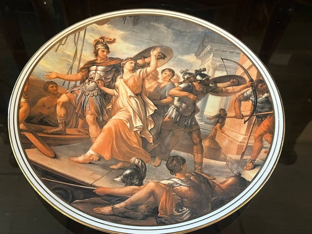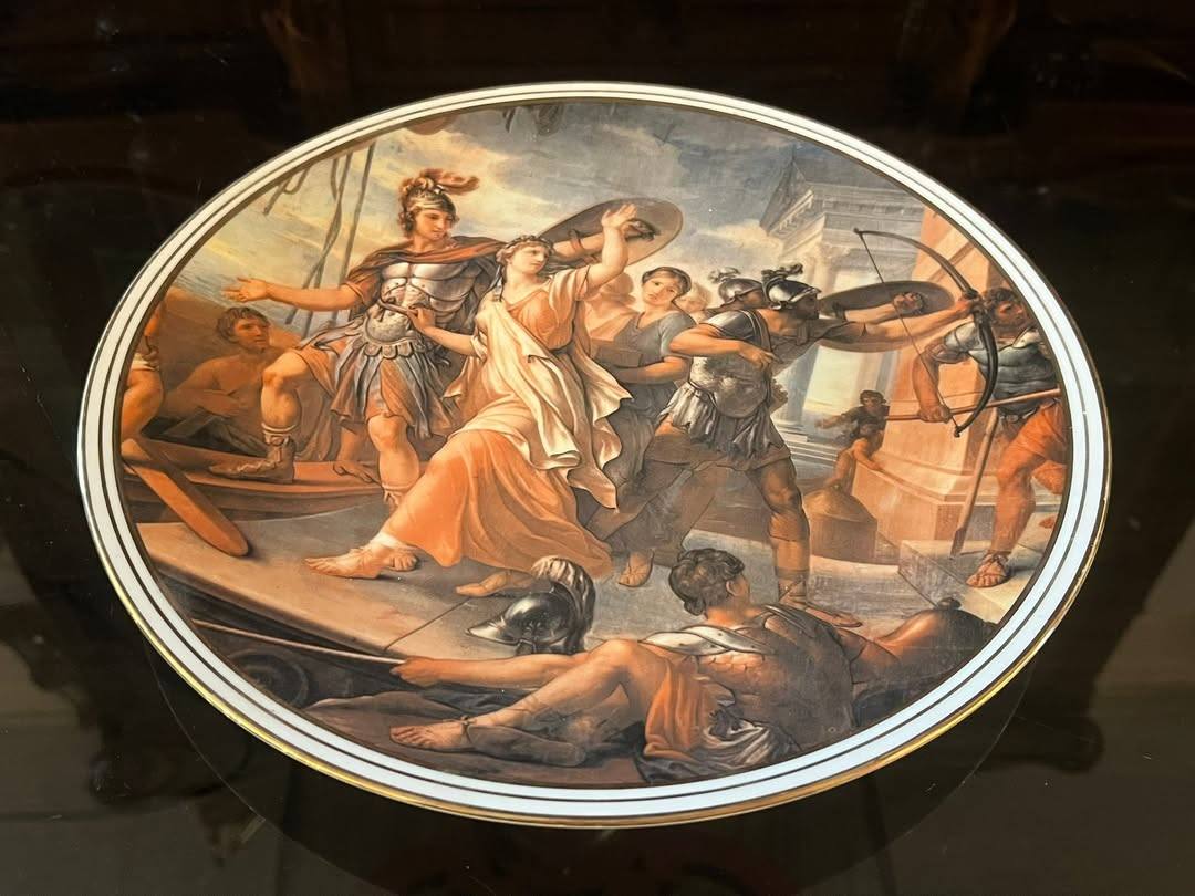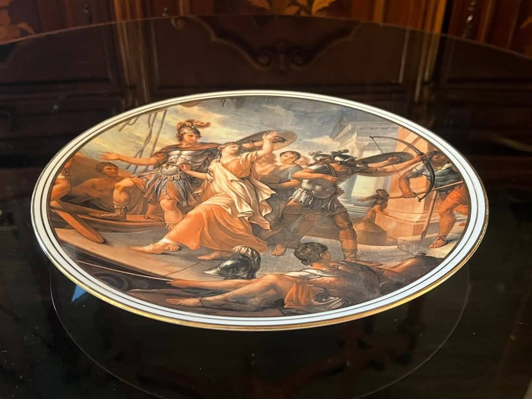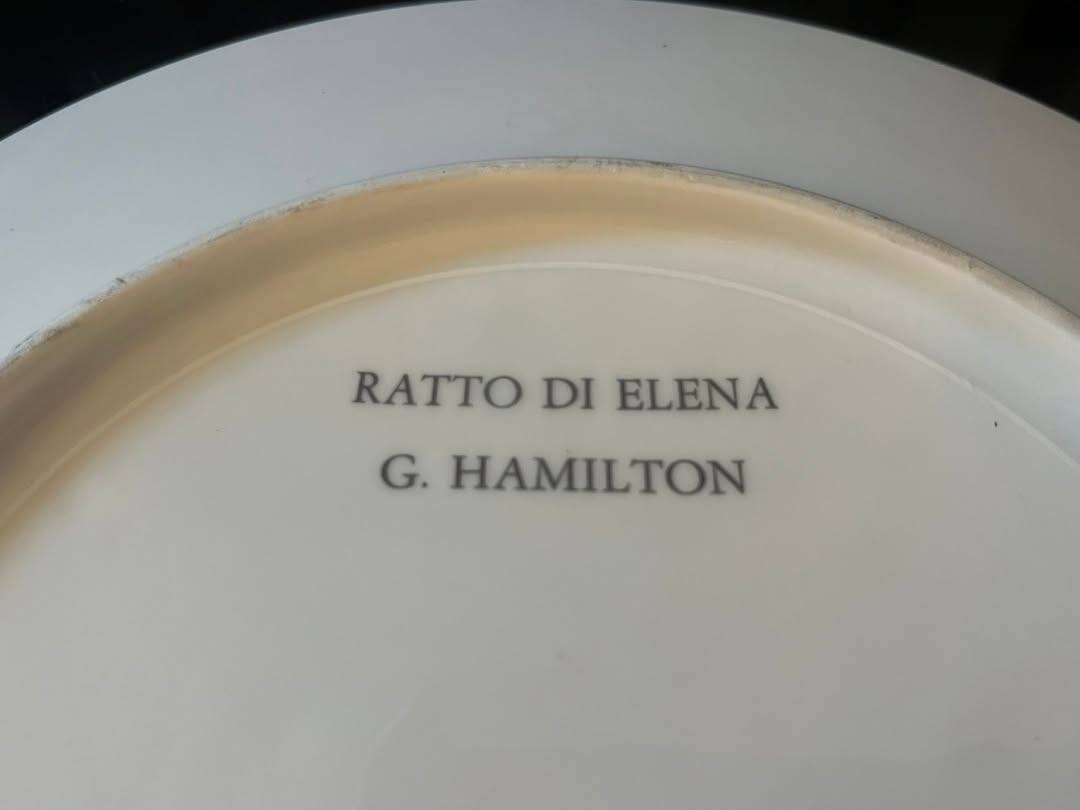 Farfurie decorativă din porțelan fin, realizată de Bavaria – Porcelaine très fine, cu reproducerea celebrului tablou „Răpirea Elenei” (Ratto di Elena) după artistul G. Hamilton.