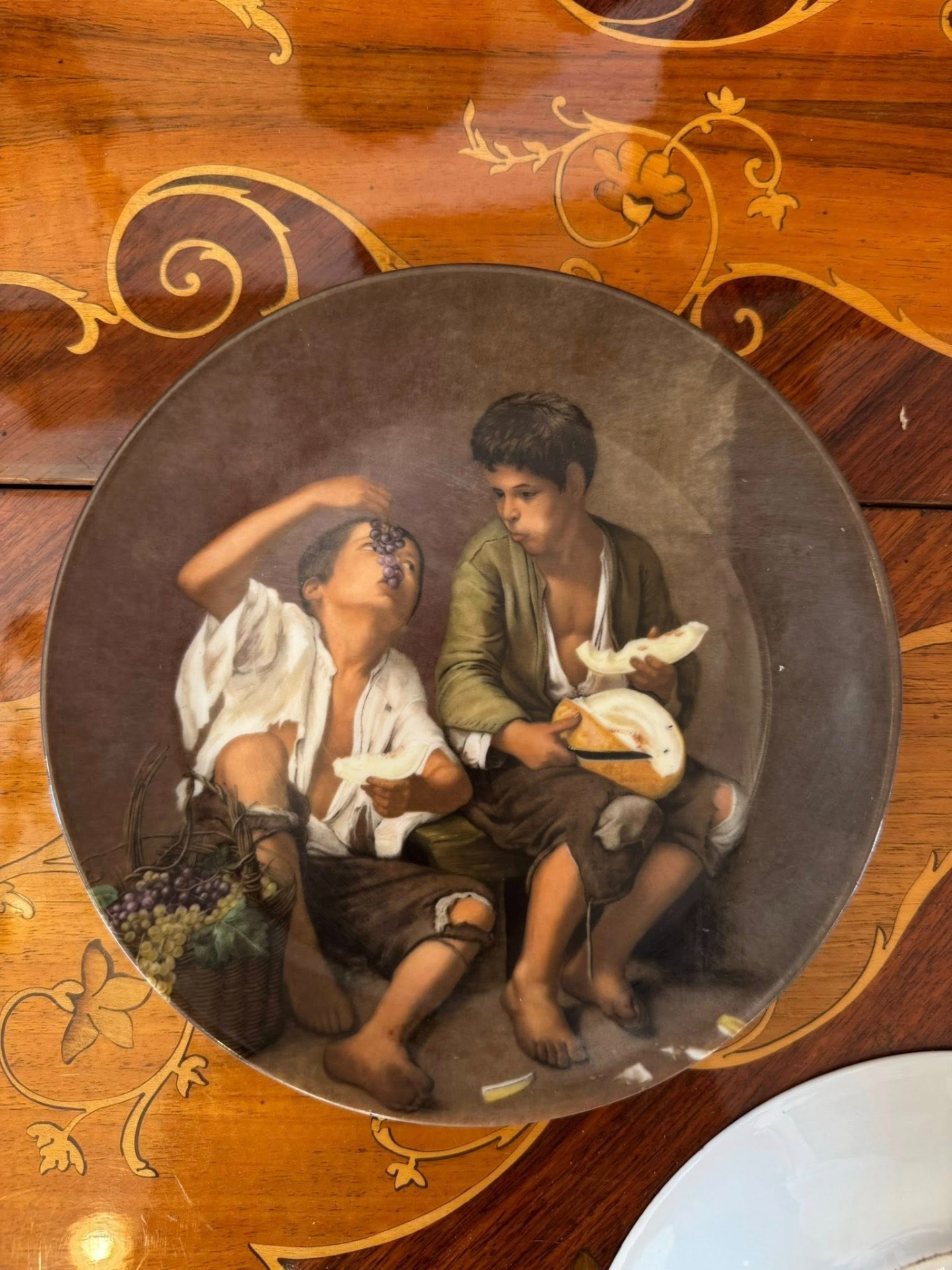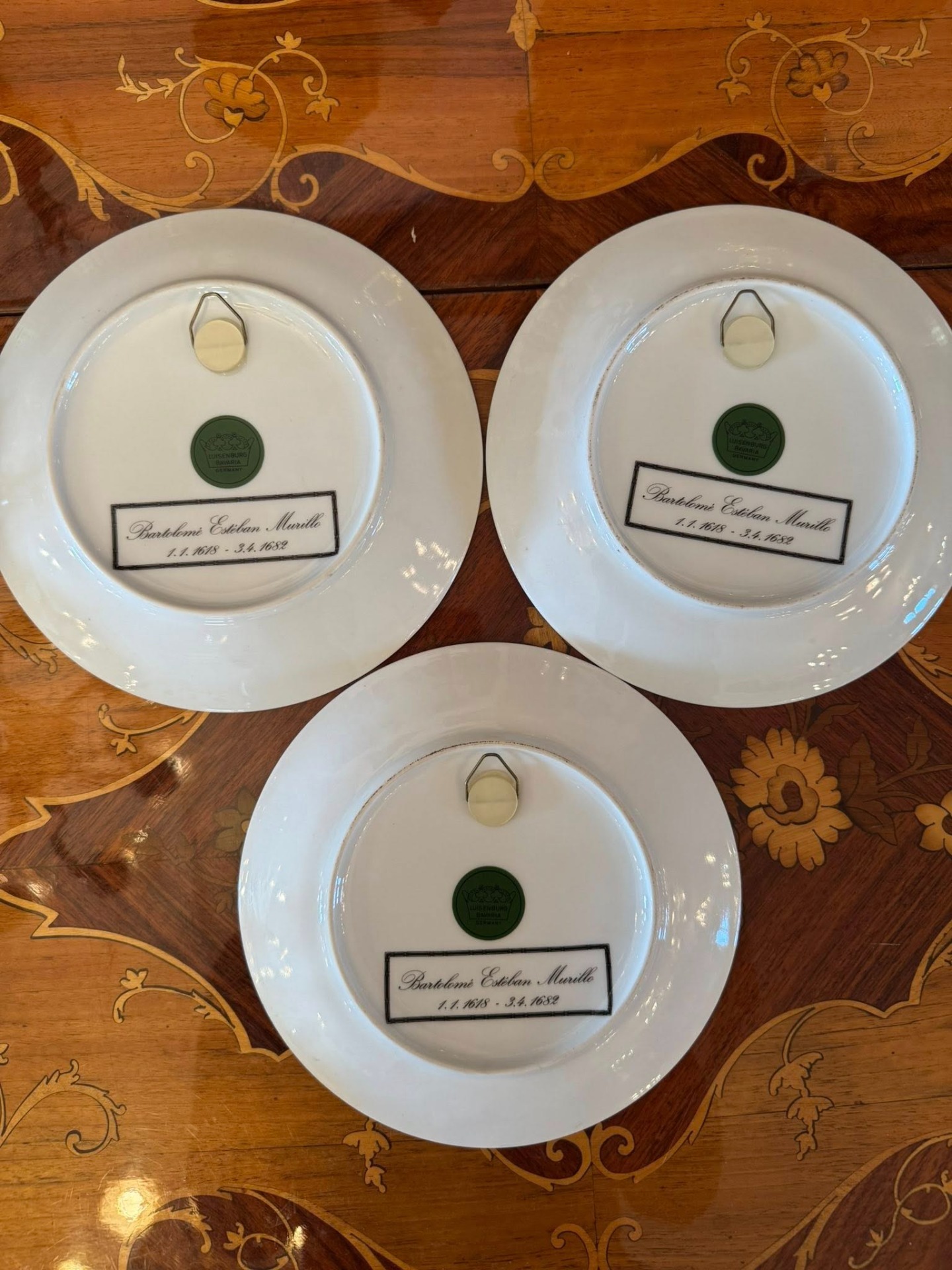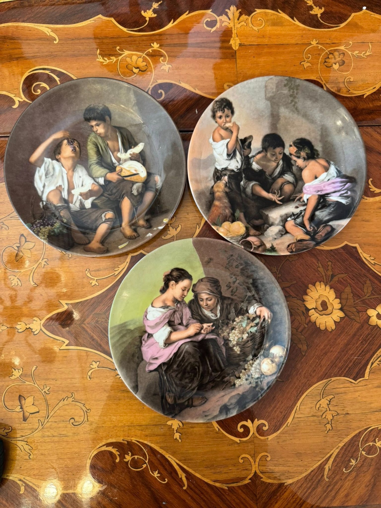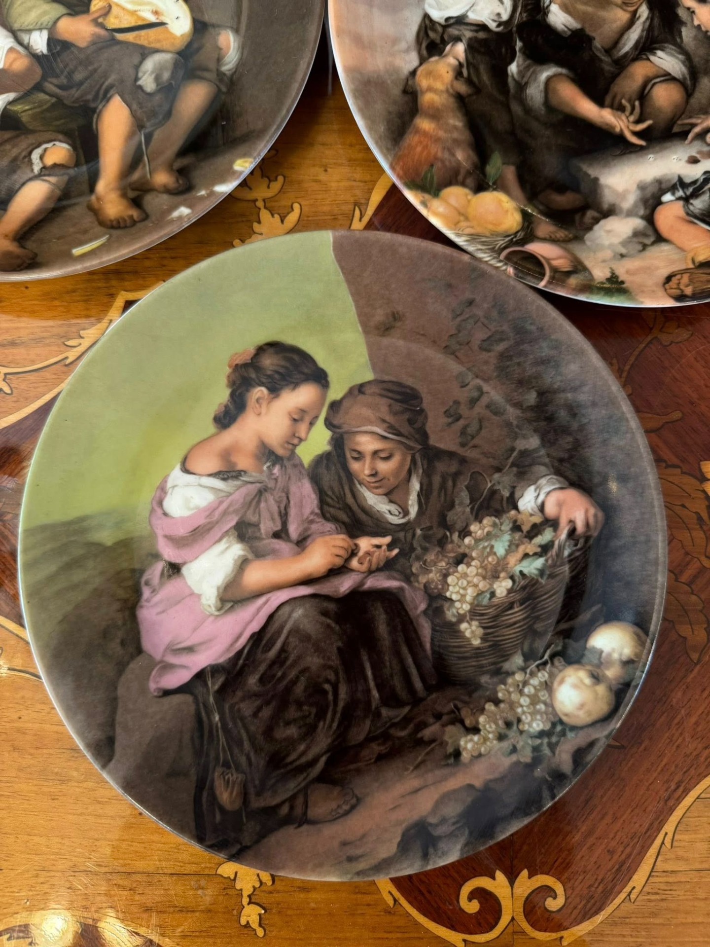 Farfurii decorative de colecție din porțelan de Bavaria. Farfuriile redau scene de gen celebre, ilustrând viața cotidiană a copiilor din Sevilla secolului al XVII-lea