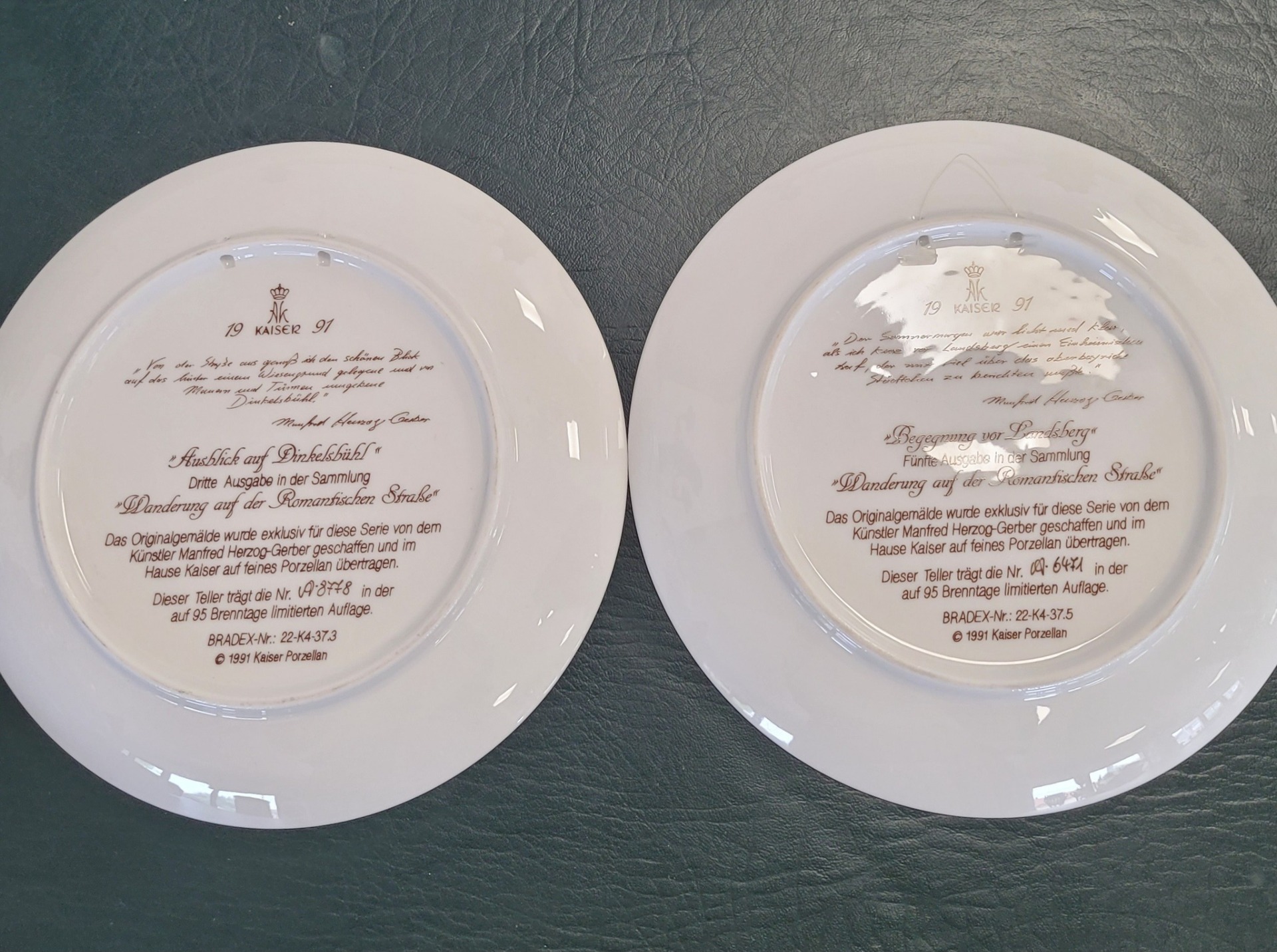 Farfurii decorative de colecție, produse de Kaiser Porzellan în ediții limitate, din seria "Wanderung auf der Romantischen StraBe" (Plimbare pe Drumul