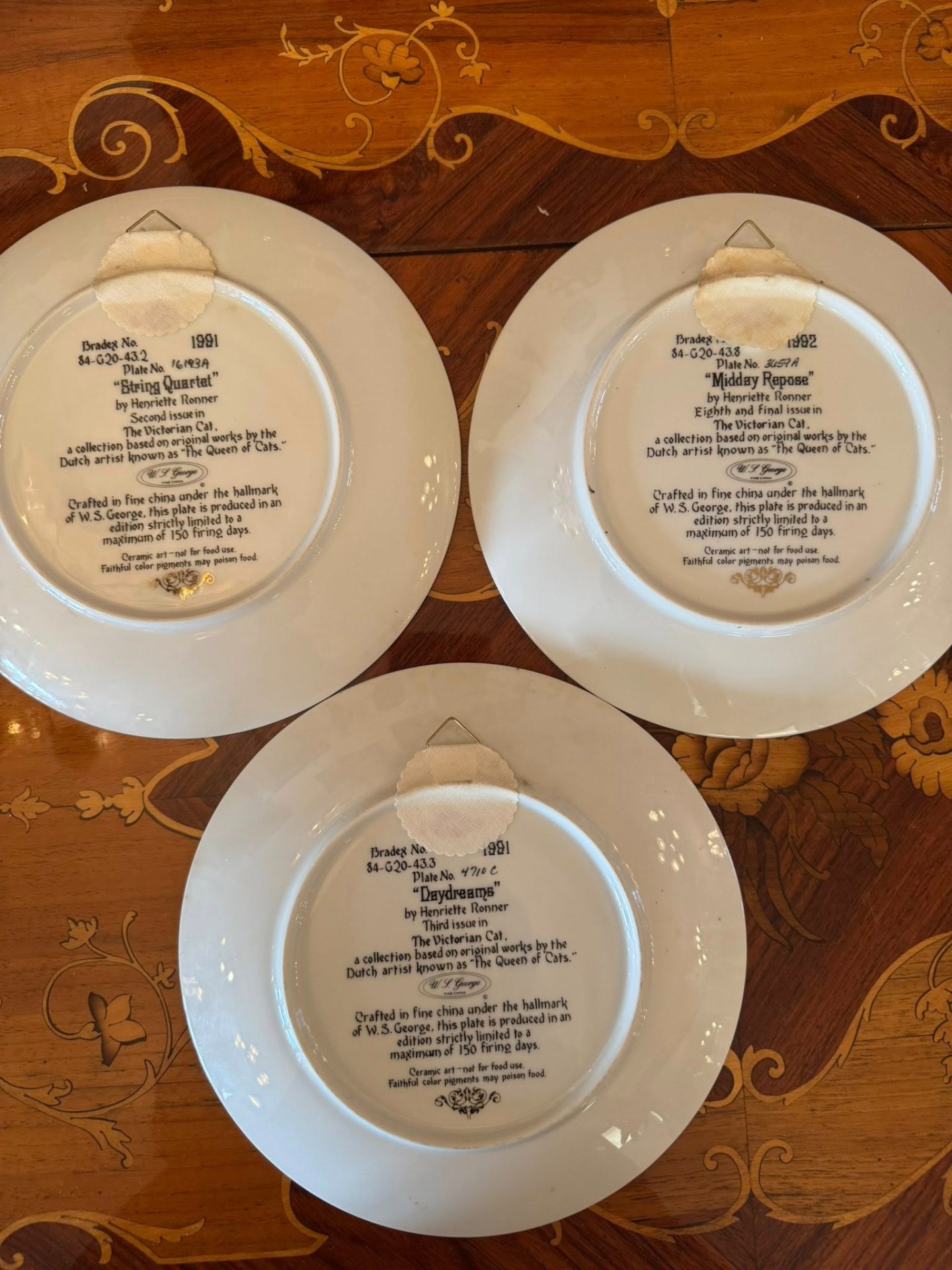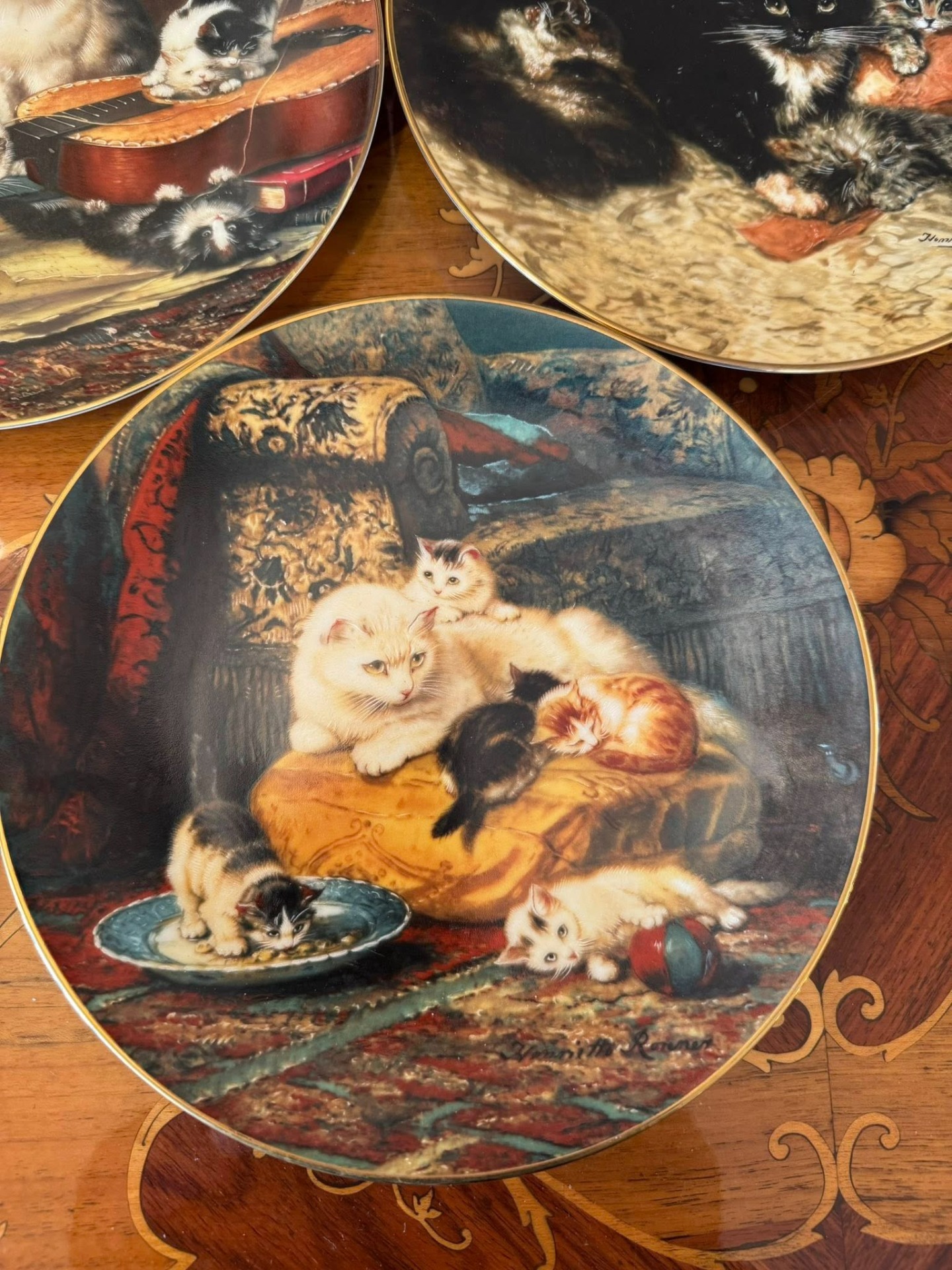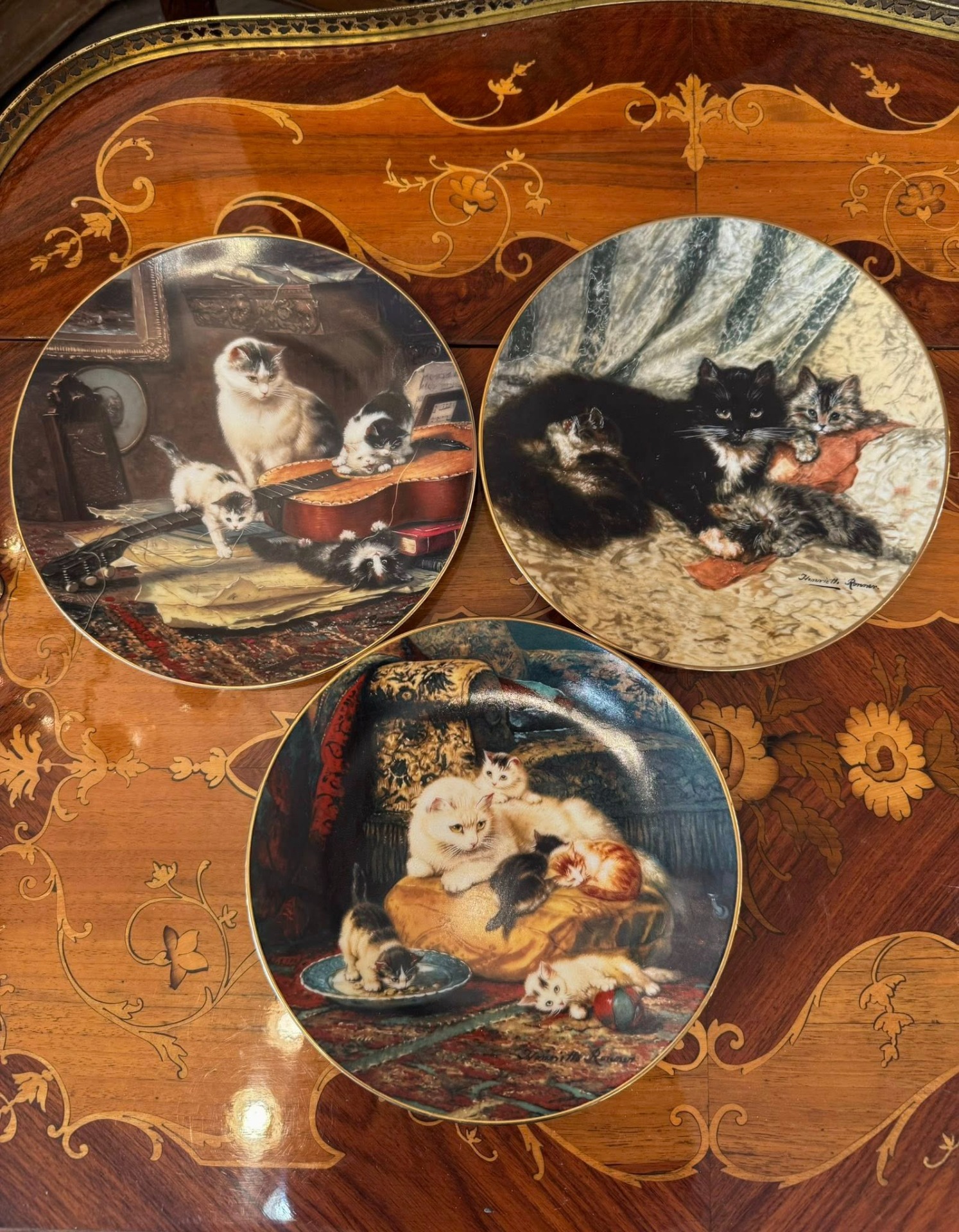 Farfurii decorative din porțelan fin, decorate cu operele celebrei artiste olandeze Henriette Ronner-Knip.