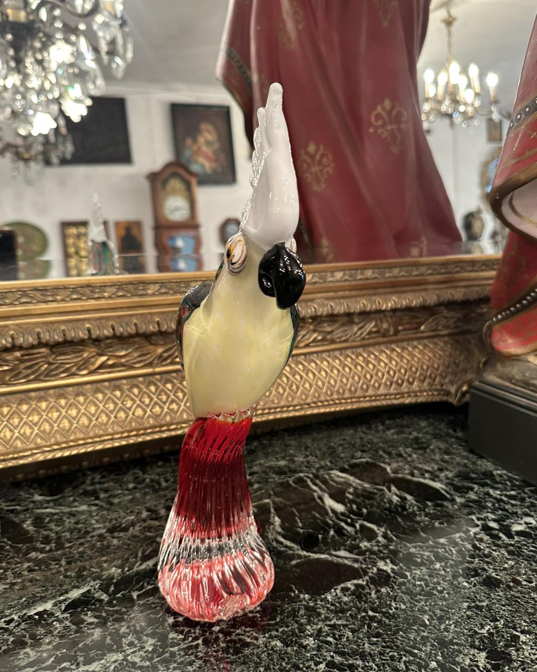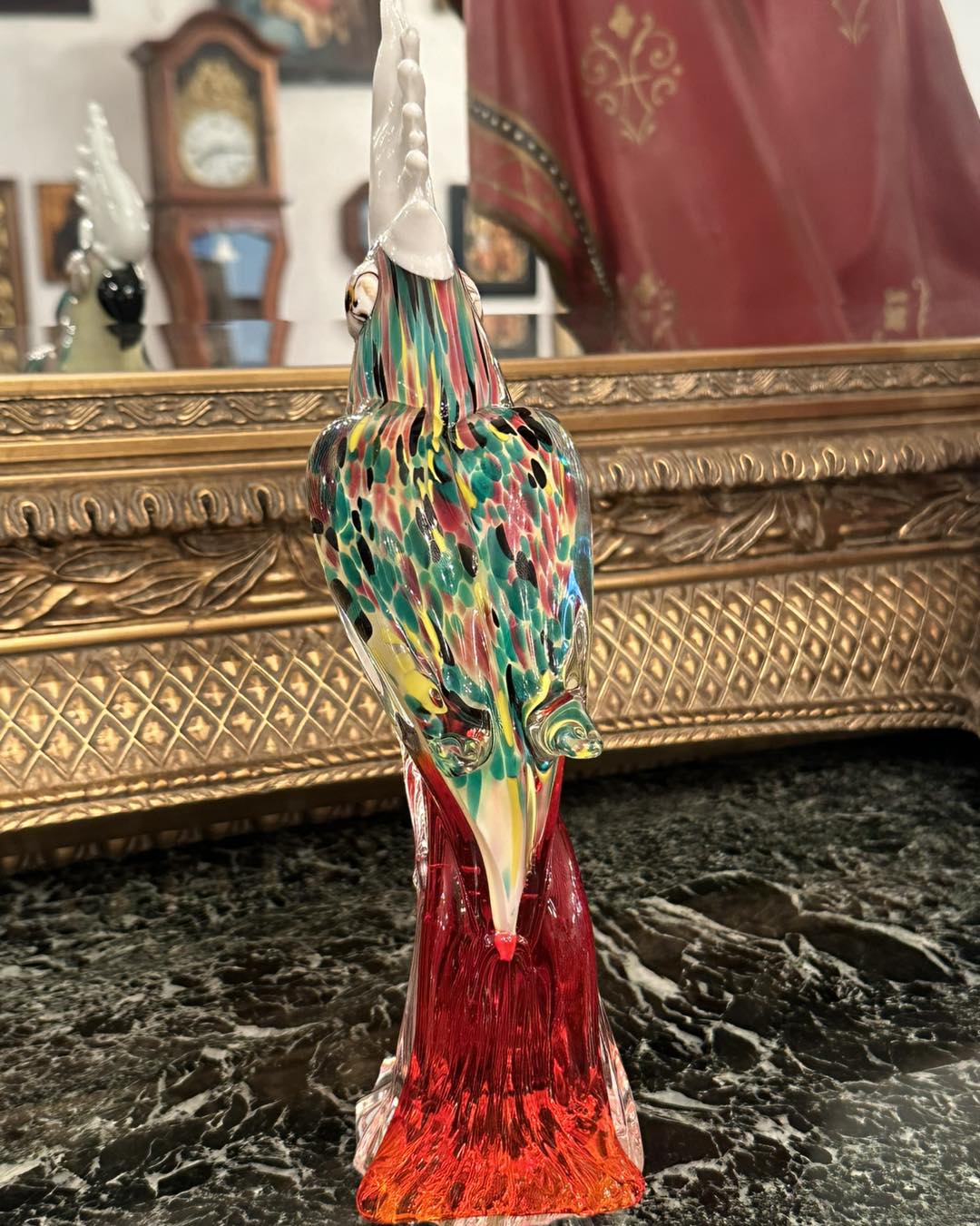 Figurină din sticlă stil Murano ,papagal multicolor elegant și deosebit!