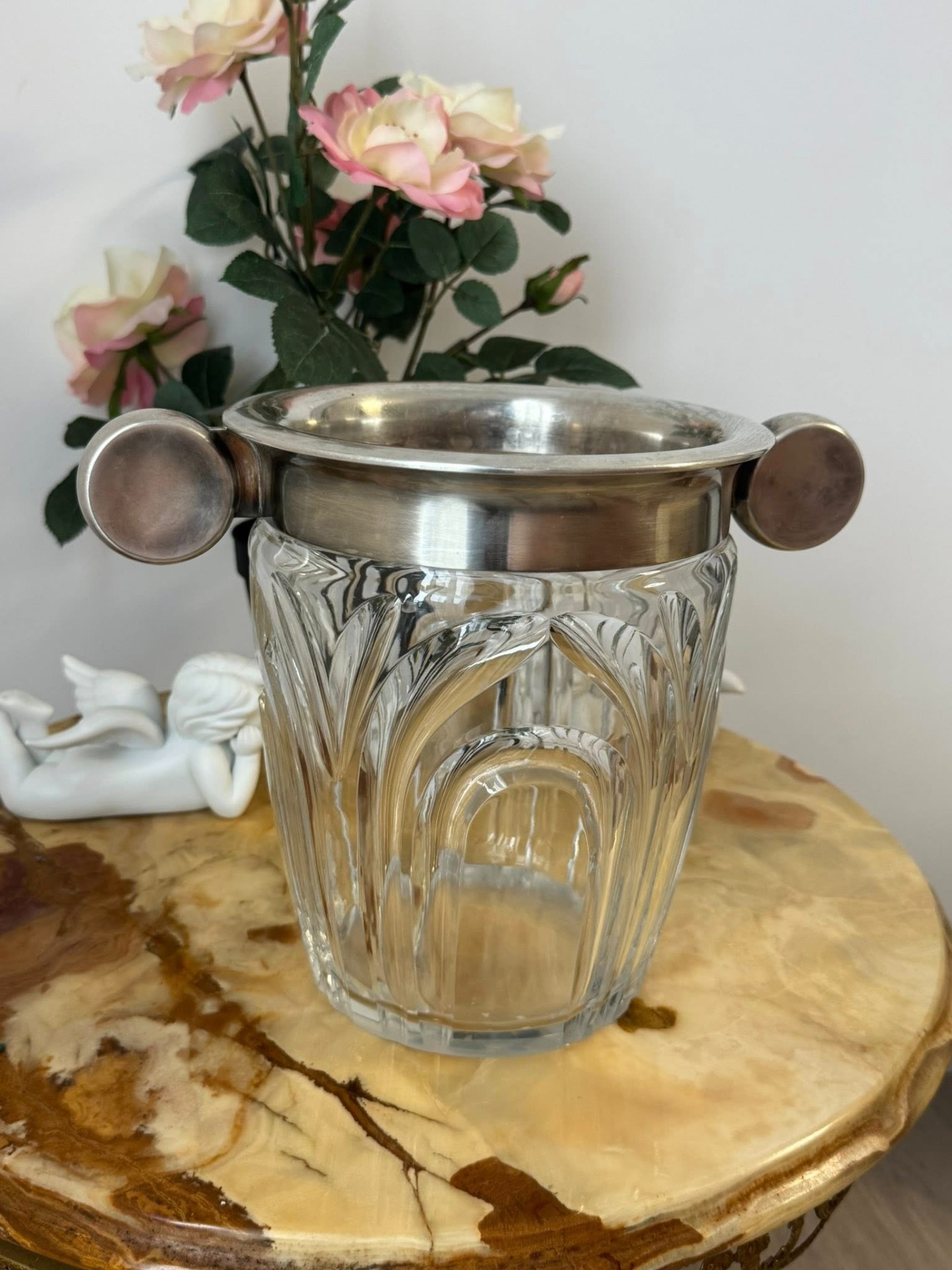 Frapieră Vintage din Cristal și Metal Argintat