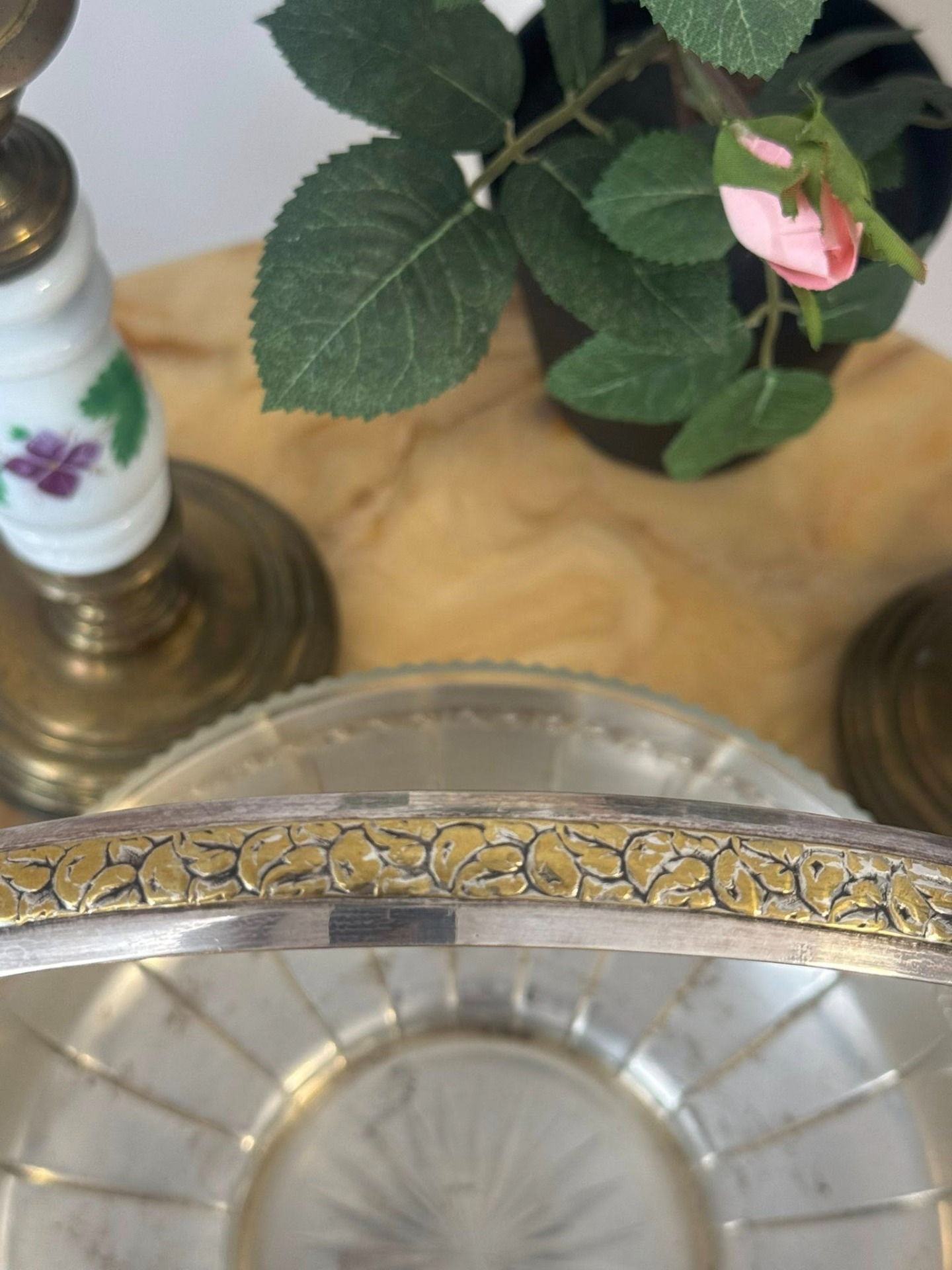 • Material: Baza metalică prezintă un luciu specific placării cu argint de înaltă calitate, tipic pentru standardul atelierelor Herrmann.