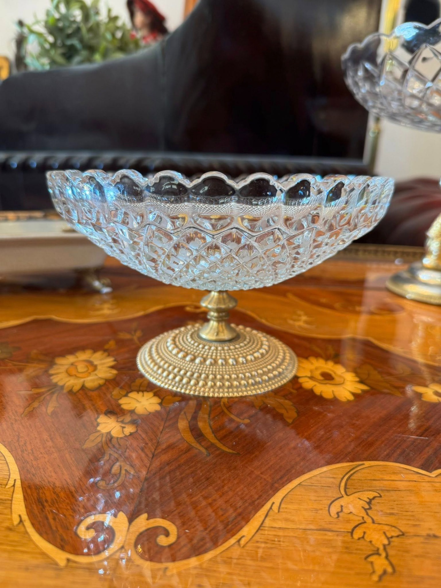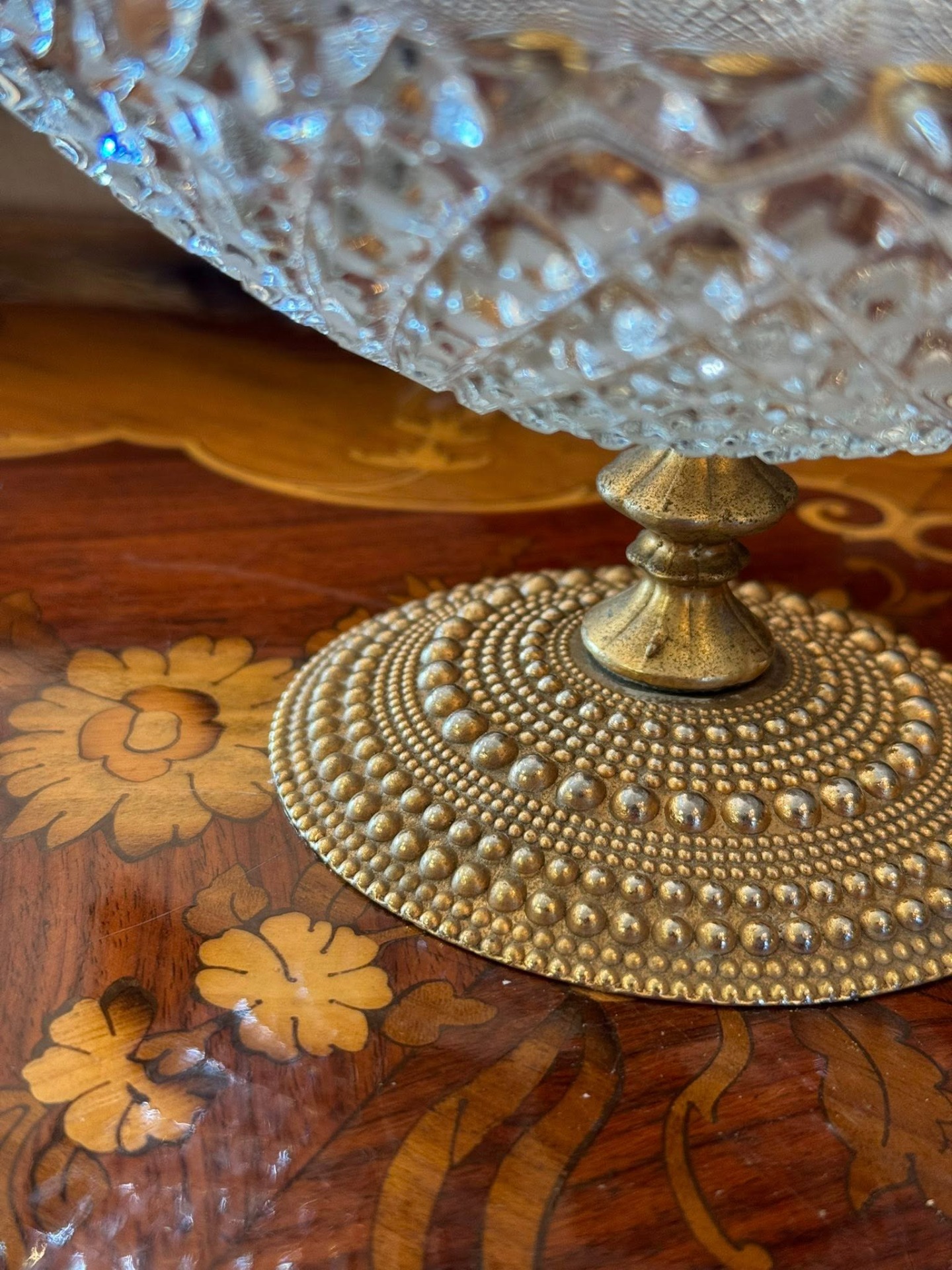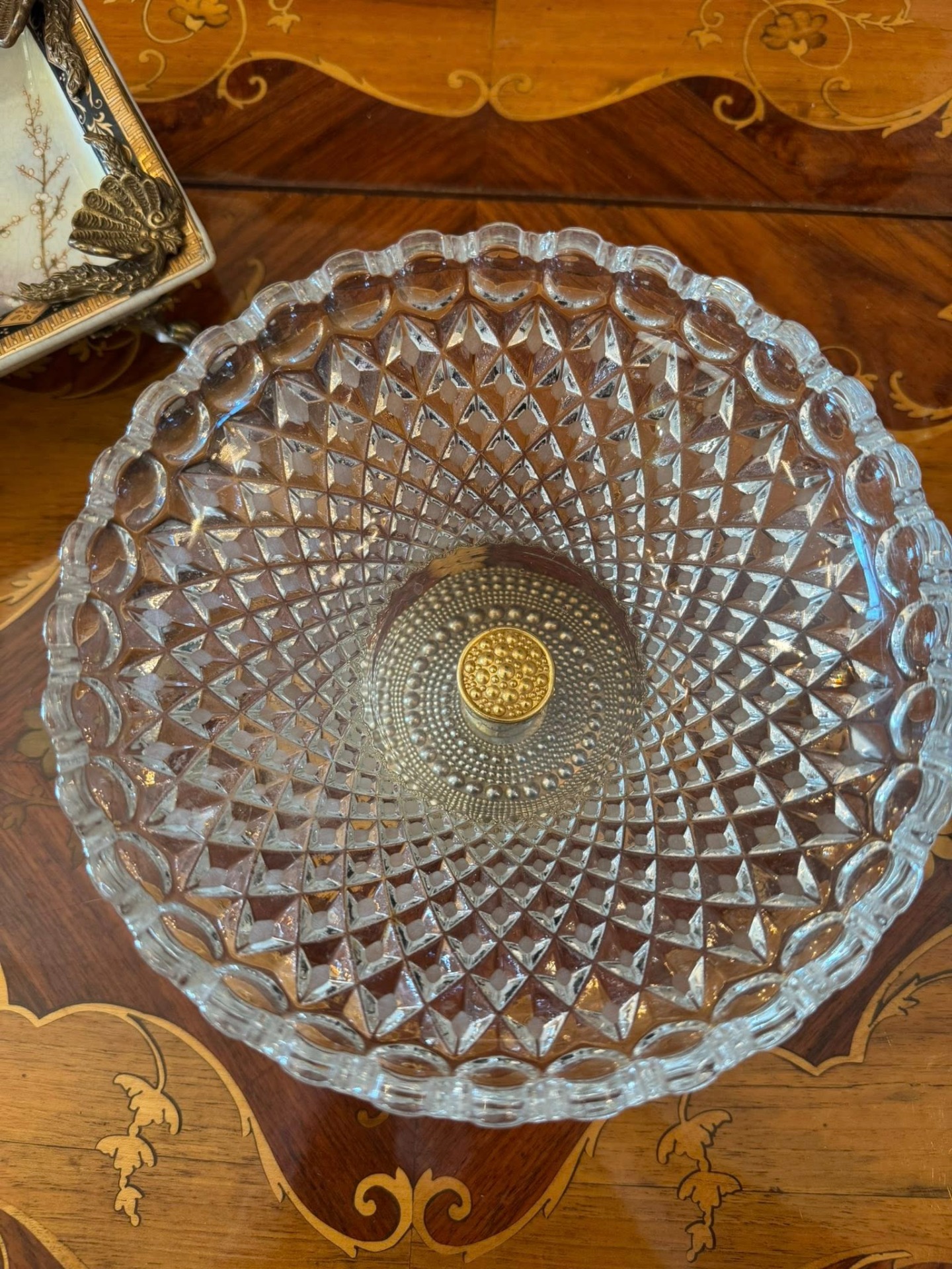 Fructieră delicată din cristal tăiat cu un model de tip "diamant"