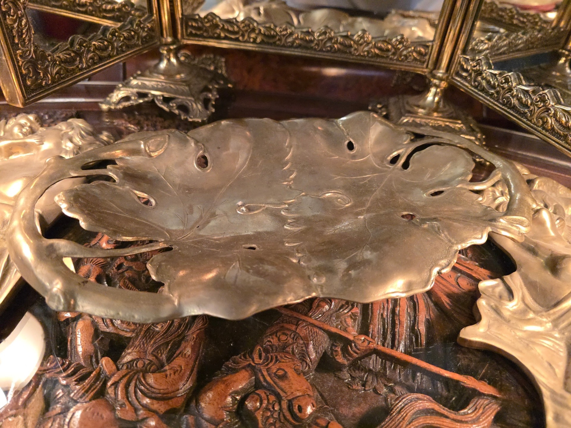 Fructiera din bronz in forma de frunza art-nouveau,cxa 1950 Germania
