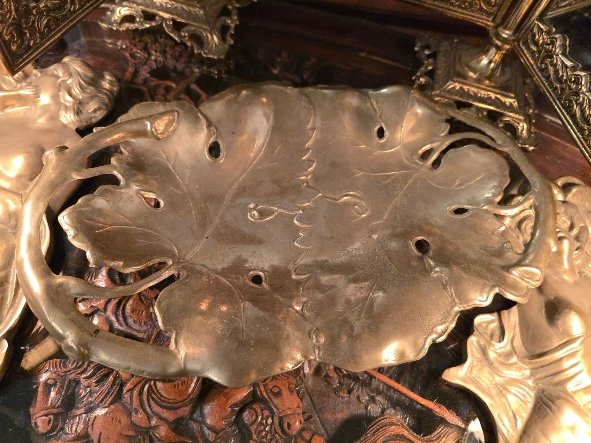Fructiera din bronz in forma de frunza art-nouveau,cxa 1950 Germania