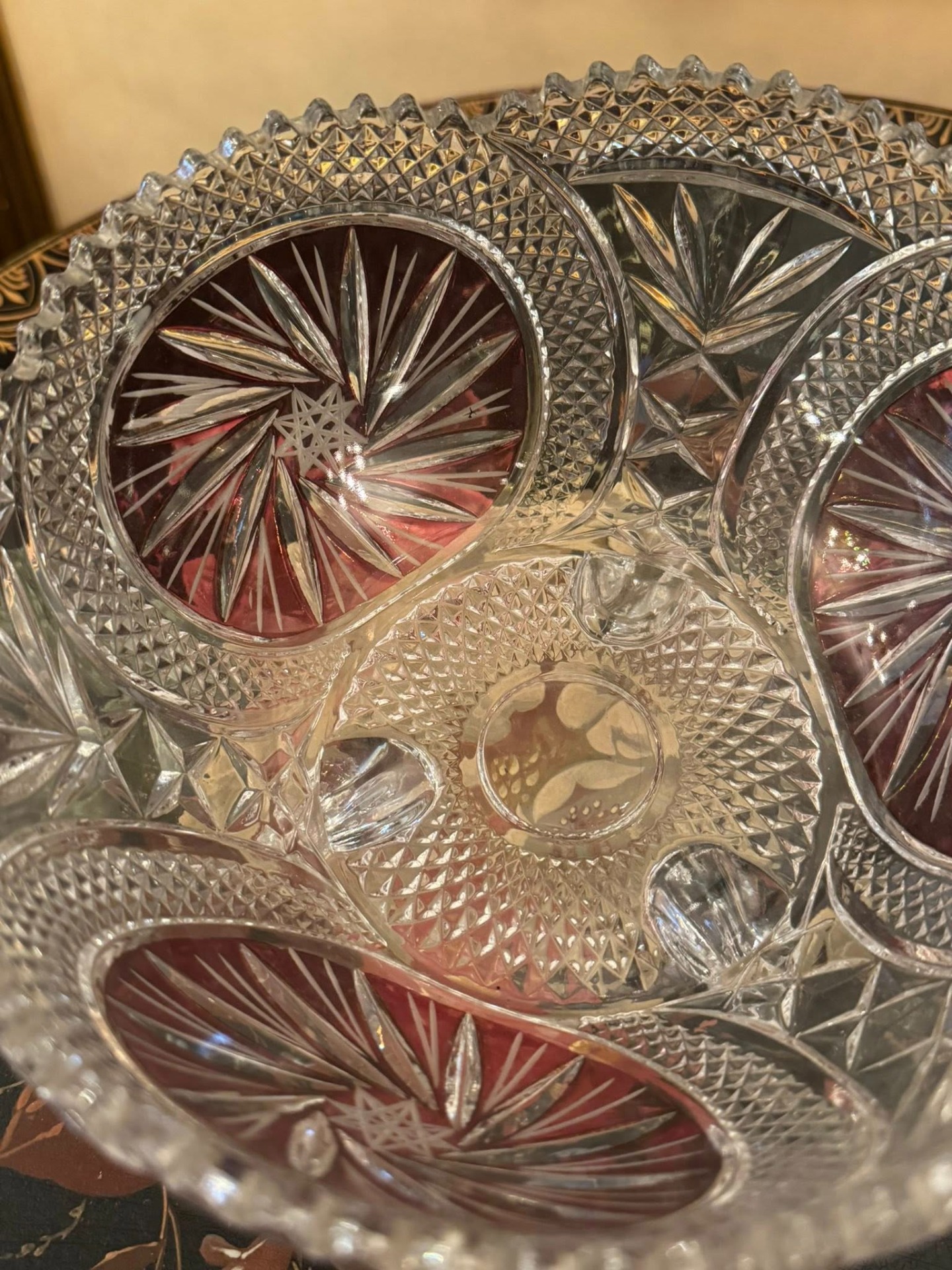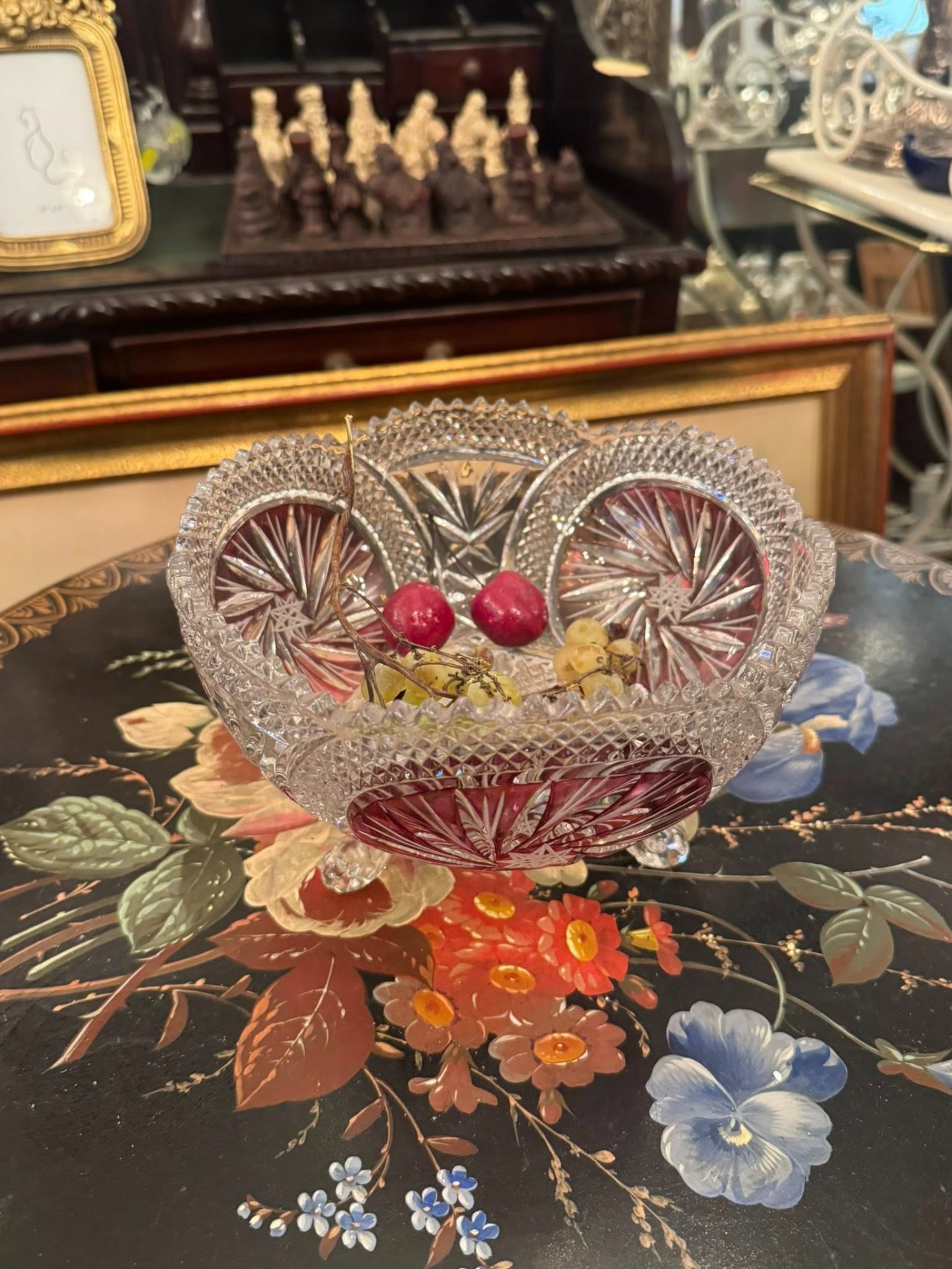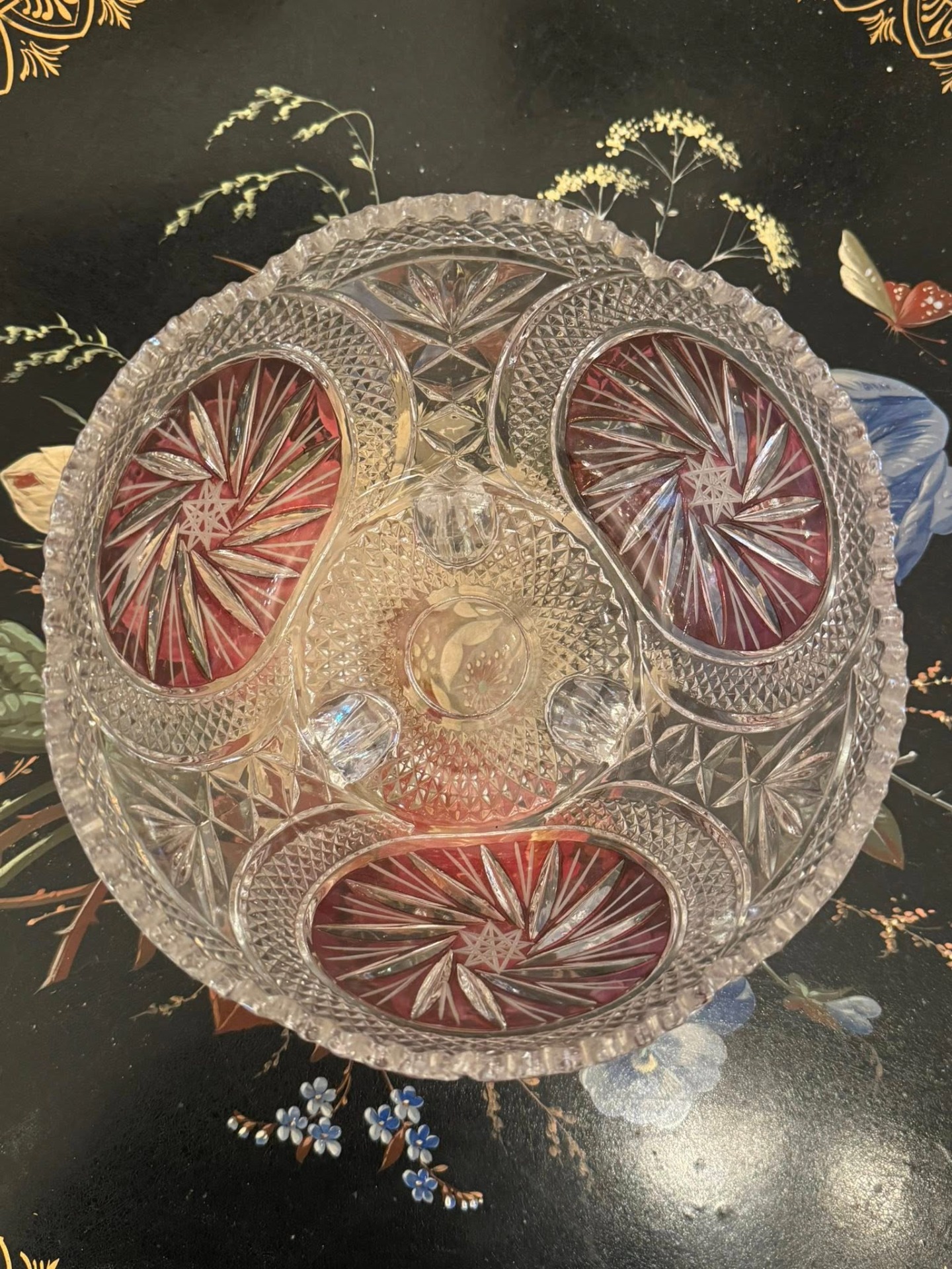 Fructiera din cristal de Boemia cu flash de rubin