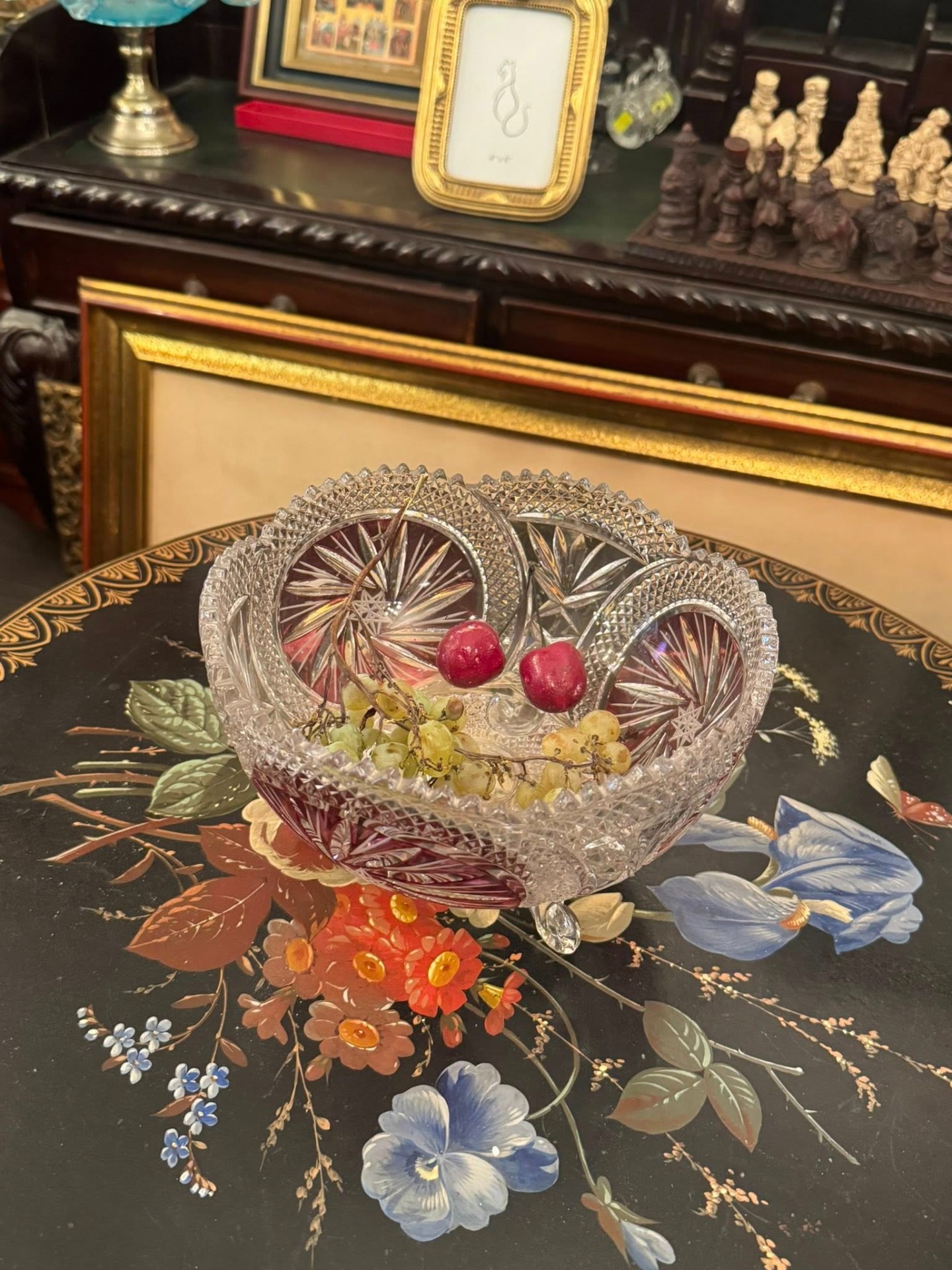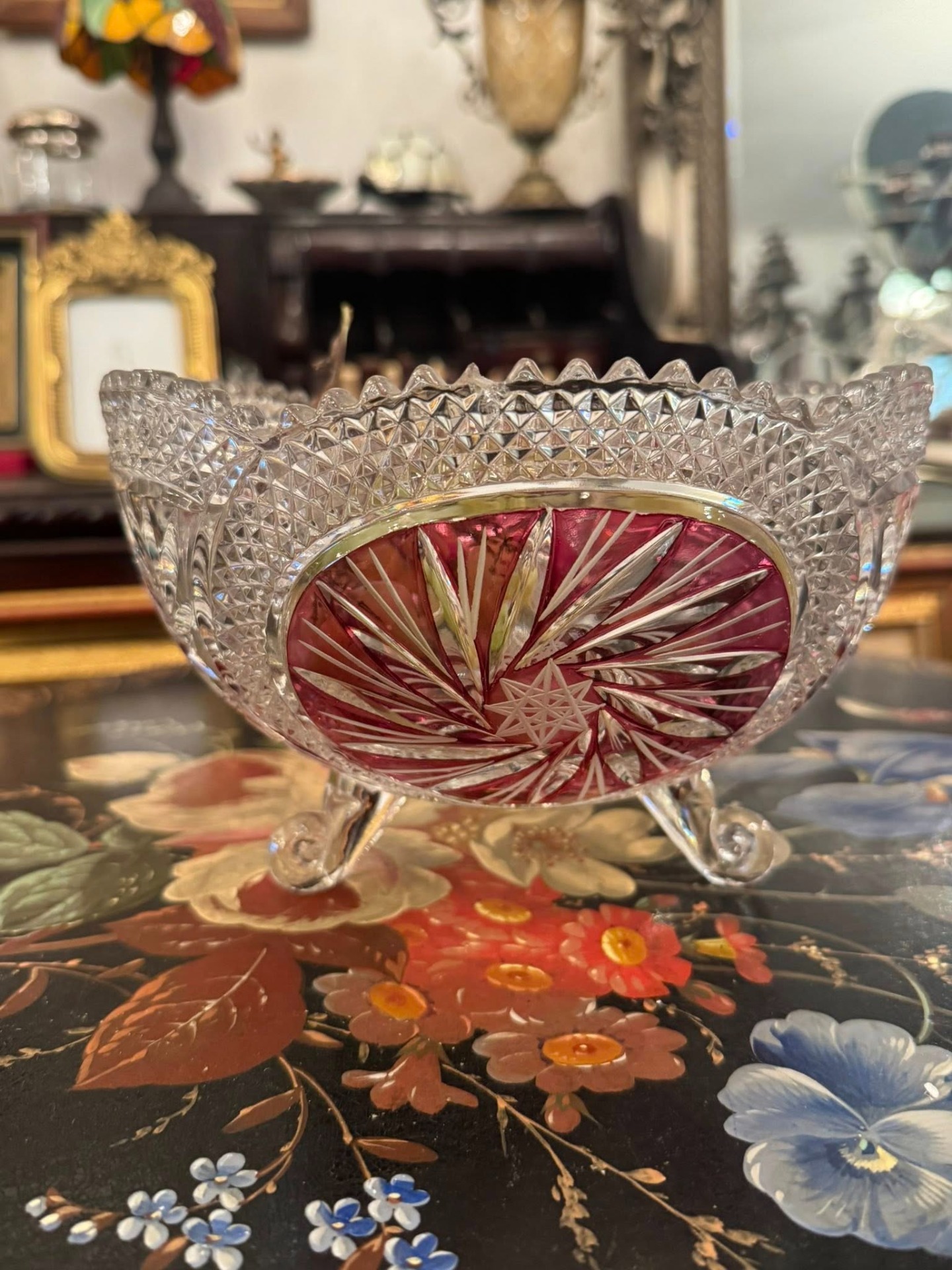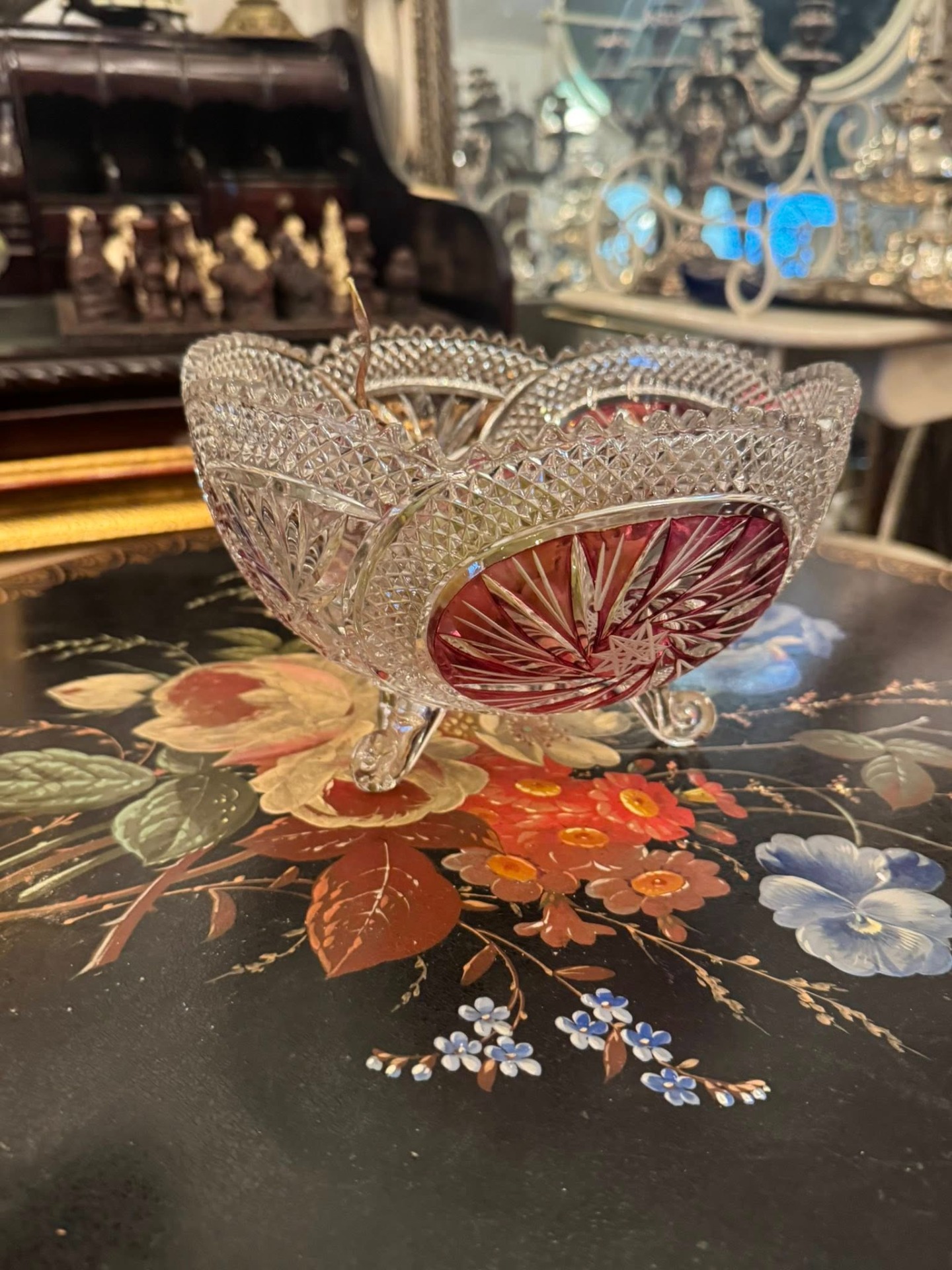 Fructiera din cristal de Boemia cu flash de rubin