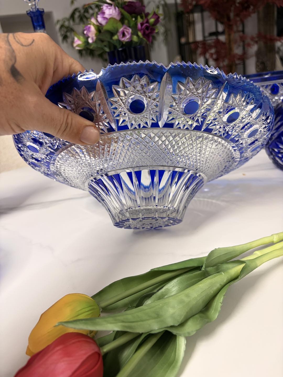 fructiera din cristal slefuita manual, cca 1970 Germania.