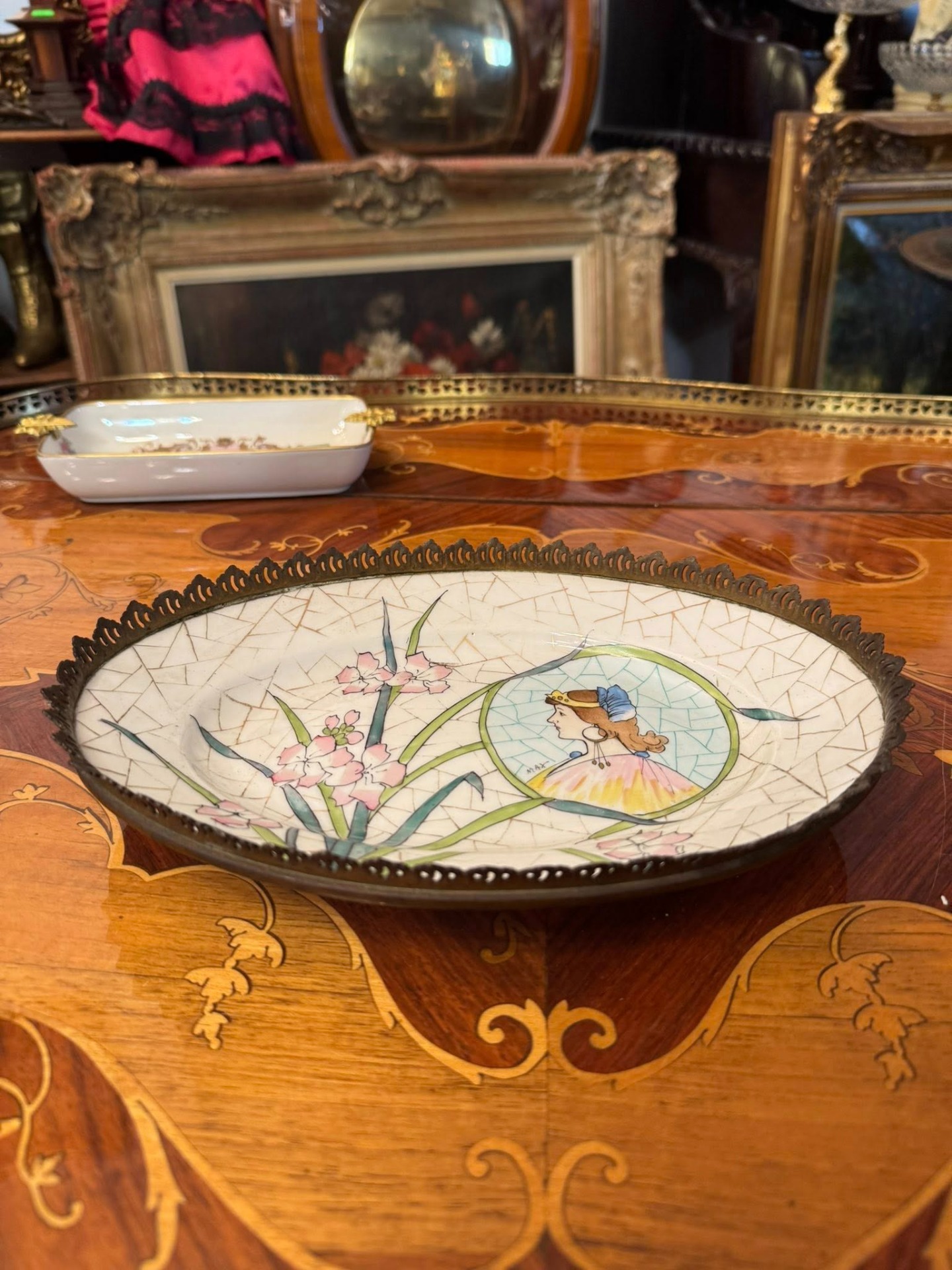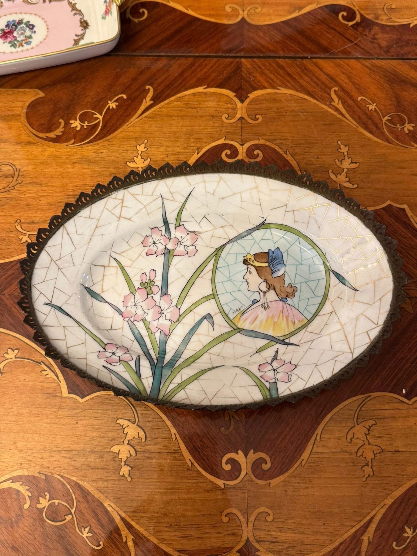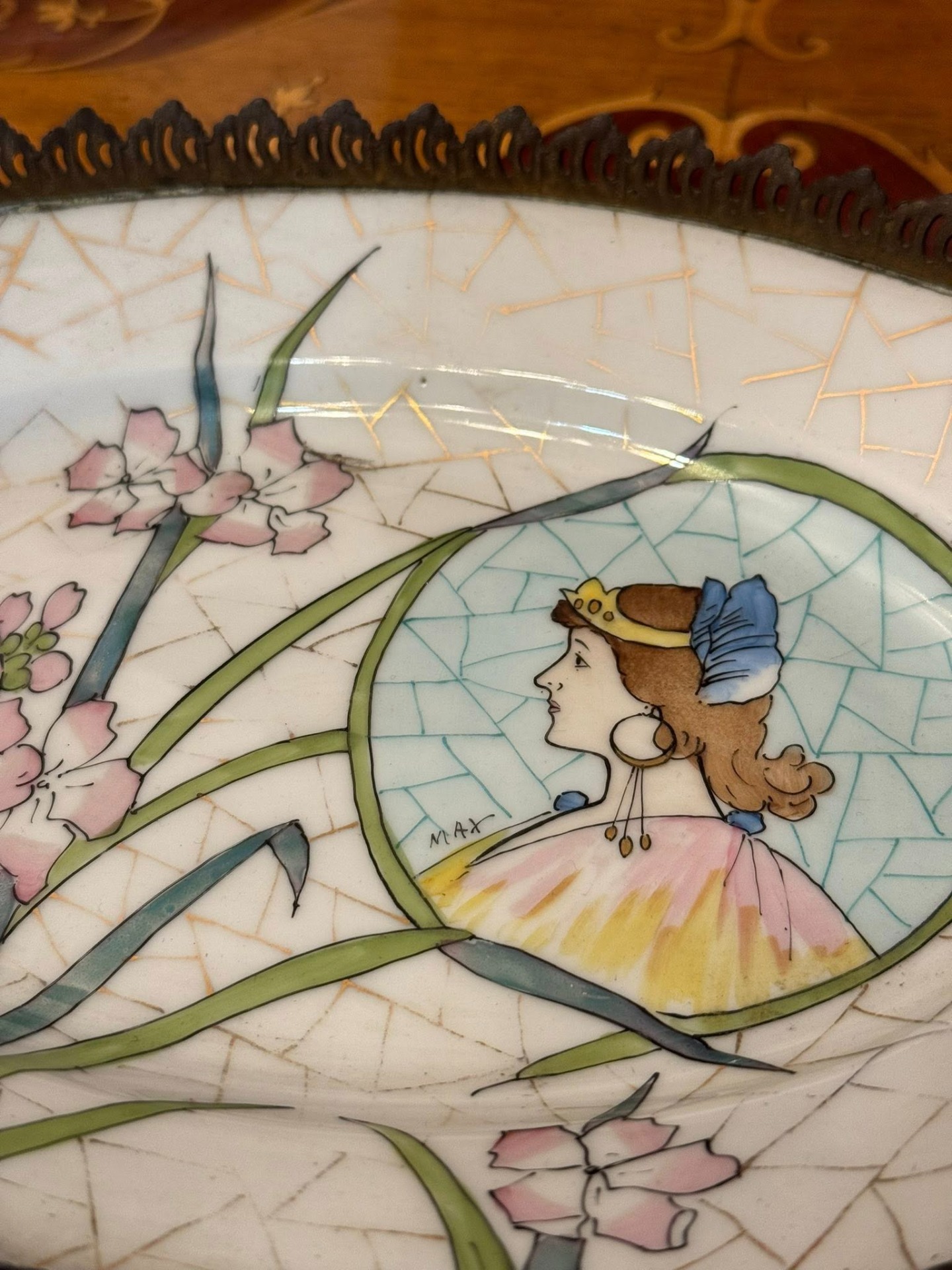Fructieră din porțelan cu un design în stil mozaic, în stil Art Nouveau.