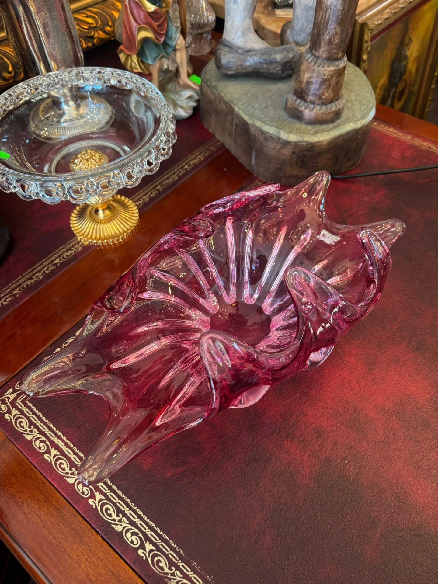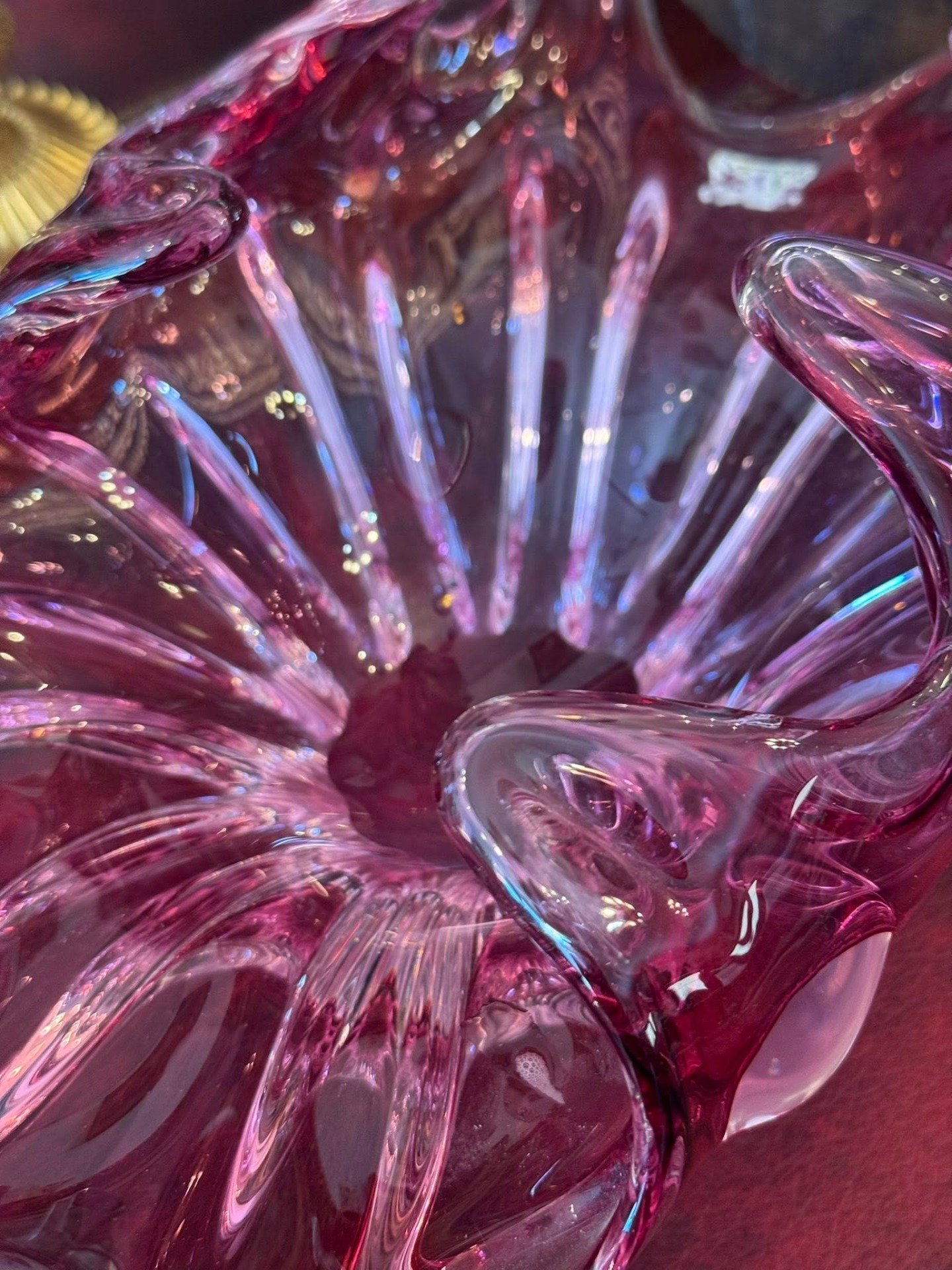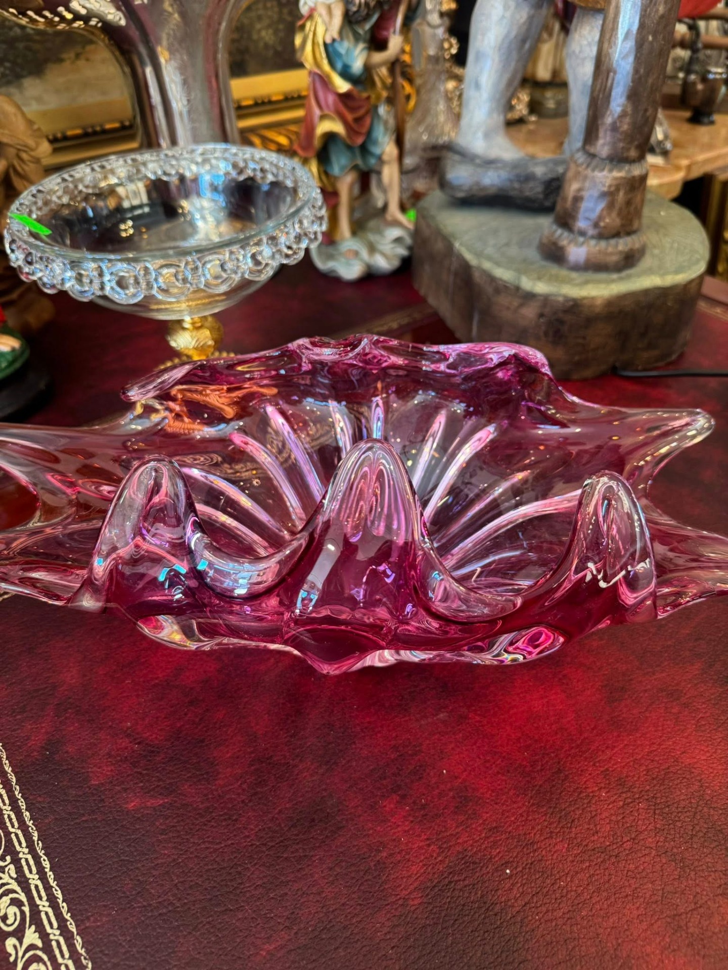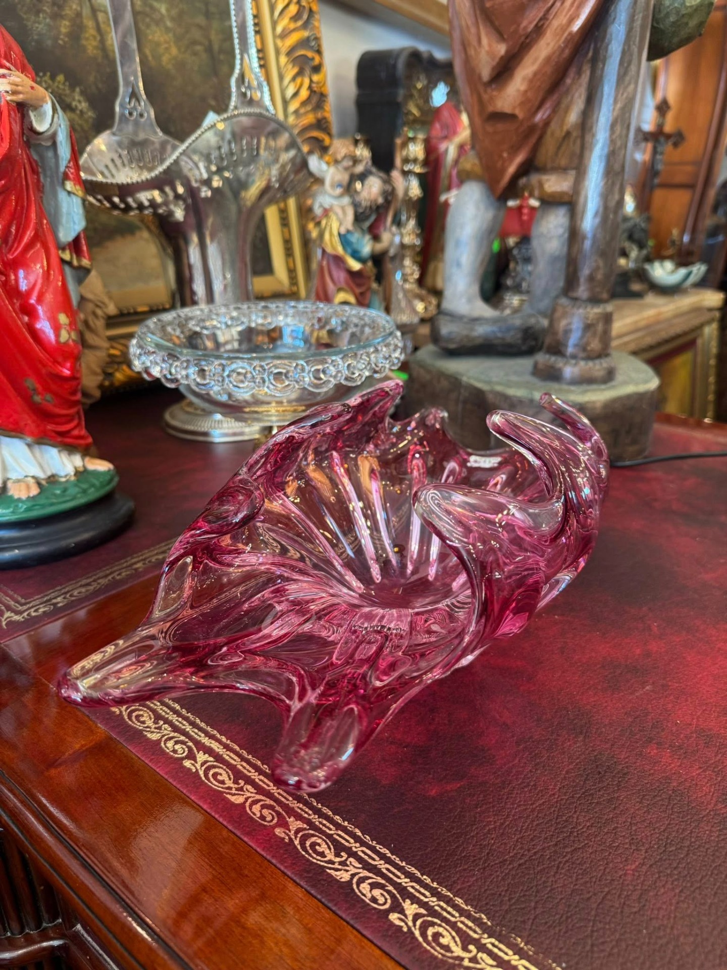 Fructieră din sticlă în stil Murano caracteristică designului de mijloc de secol XX,