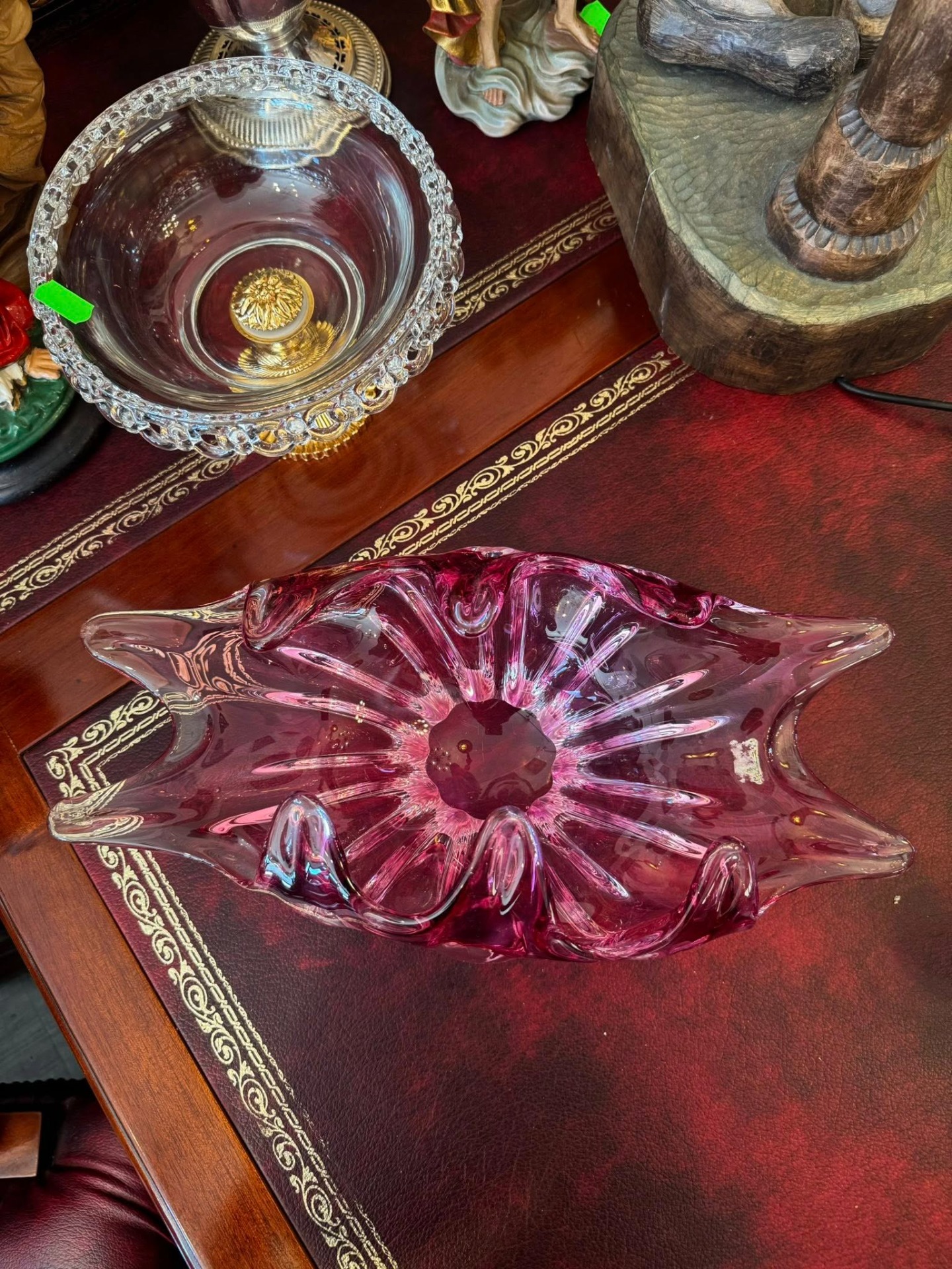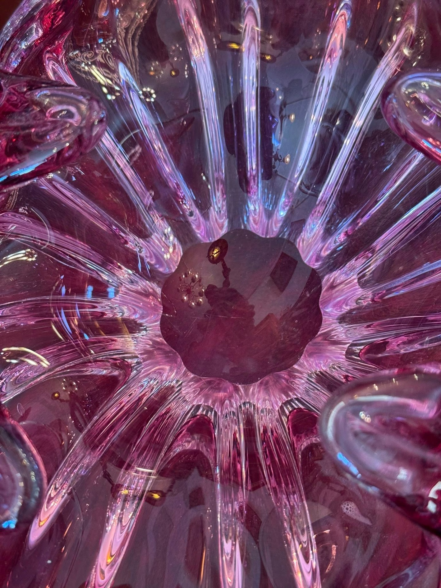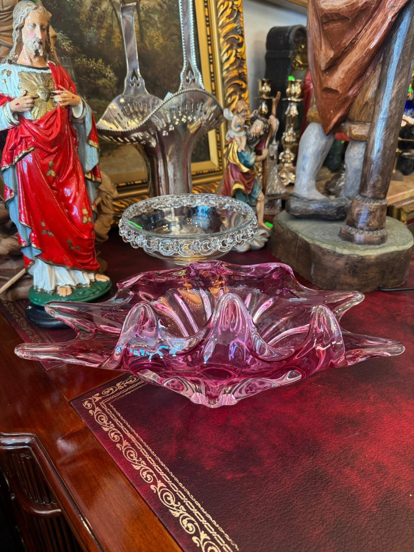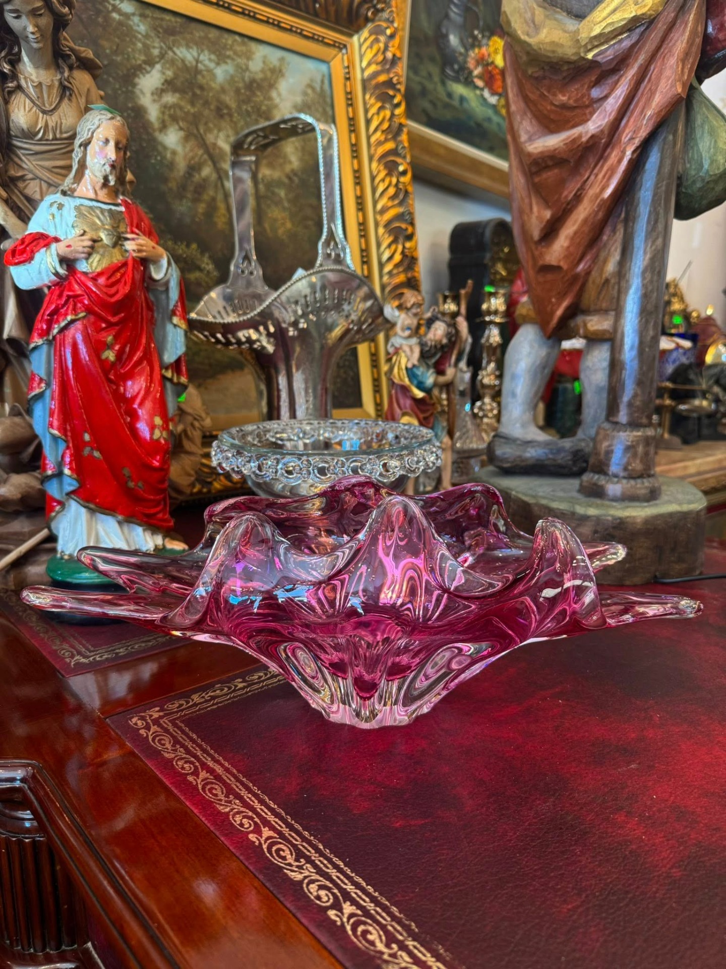 Fructieră din sticlă în stil Murano caracteristică designului de mijloc de secol XX,