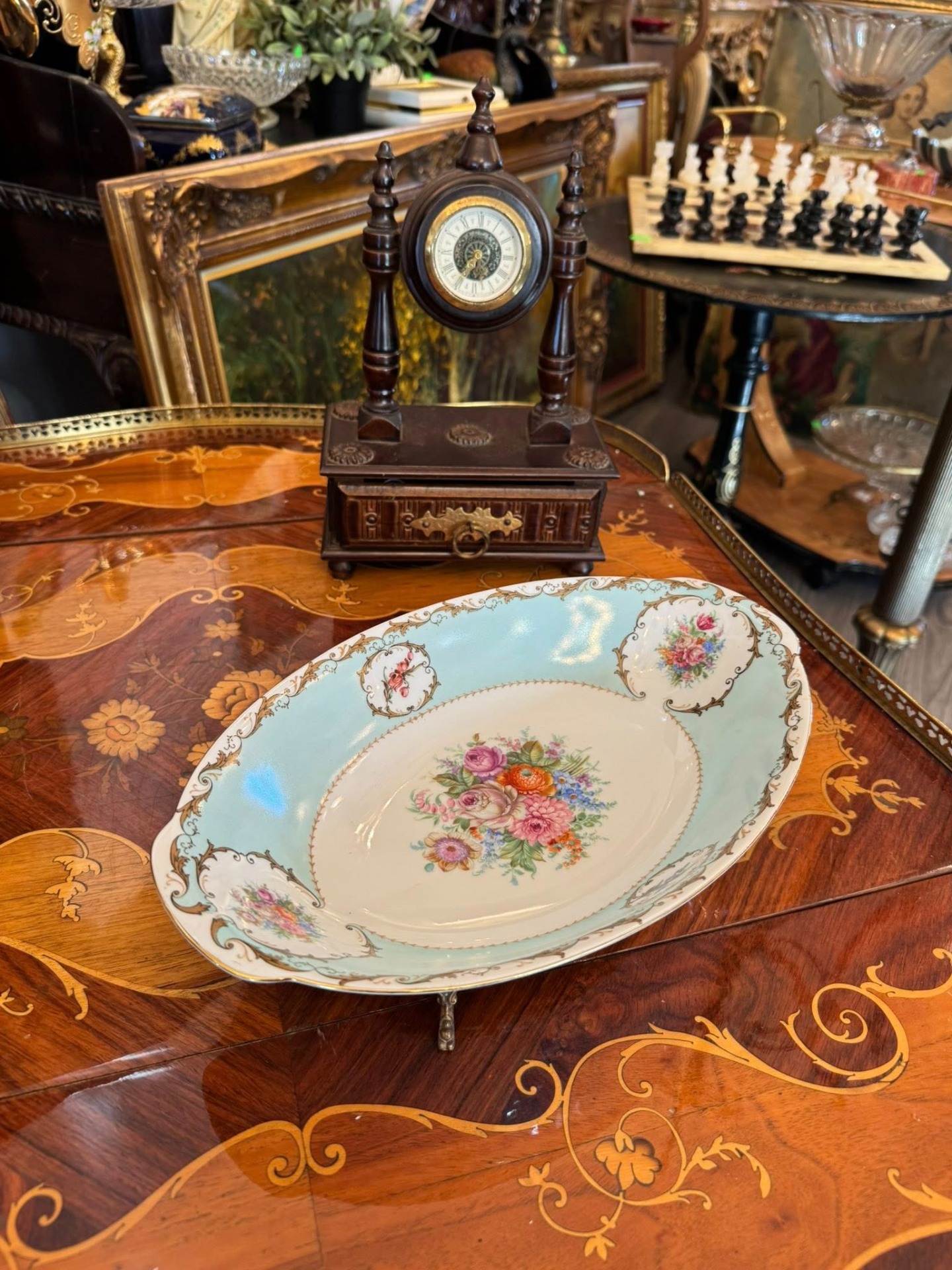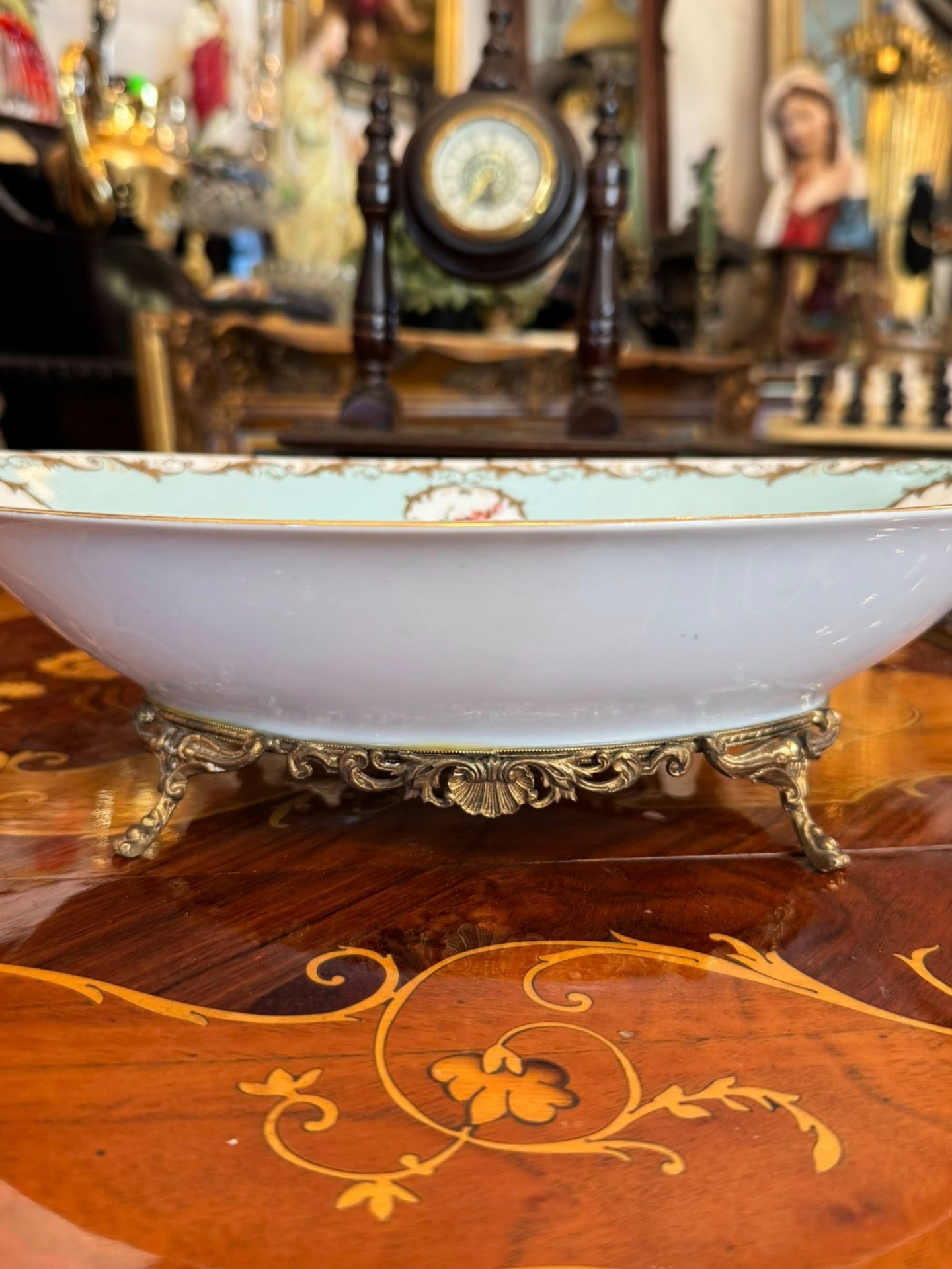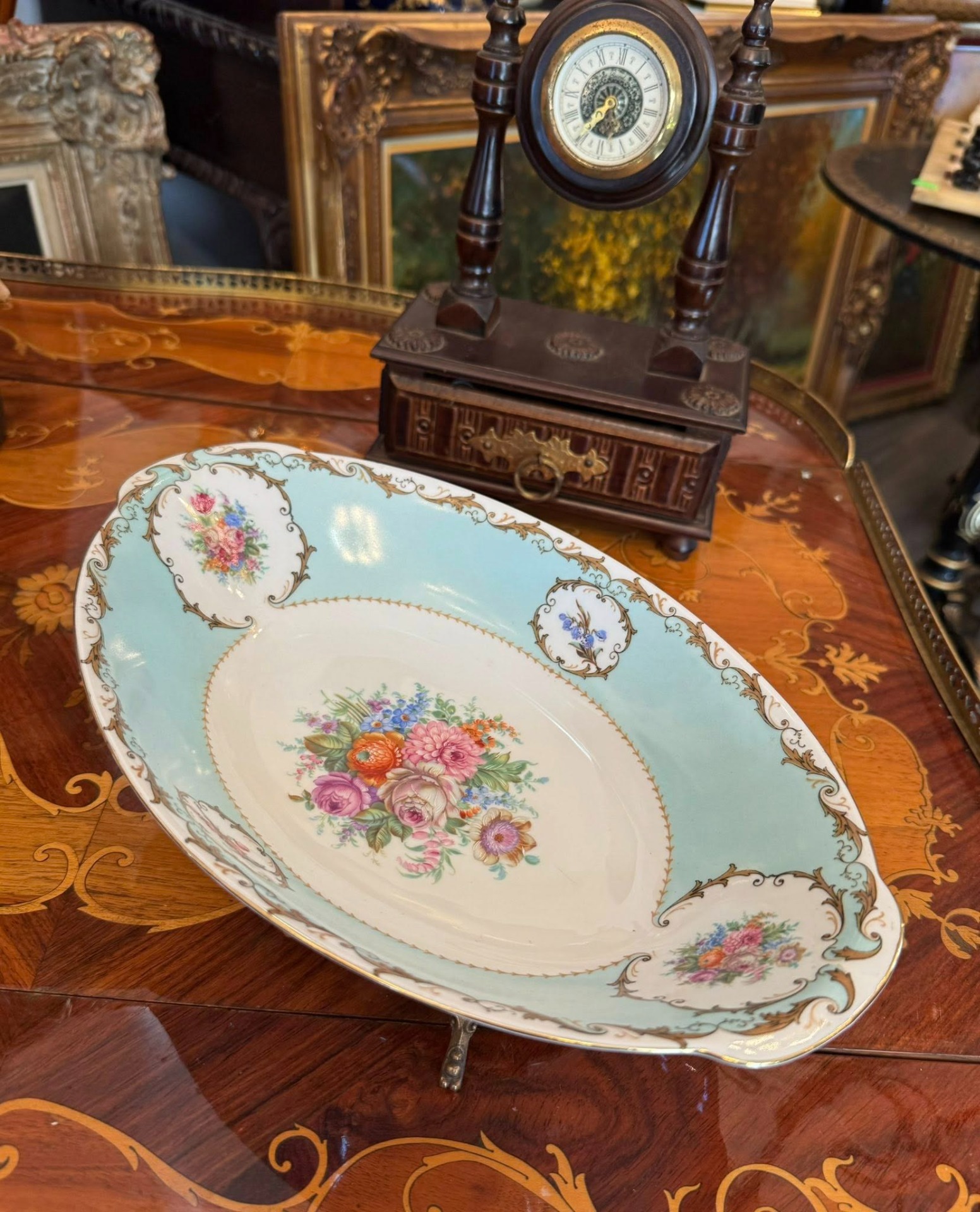 Fructieră elegantă din porțelan realizată în stil Rococo cu motive florale.(Franța, cca 1970)