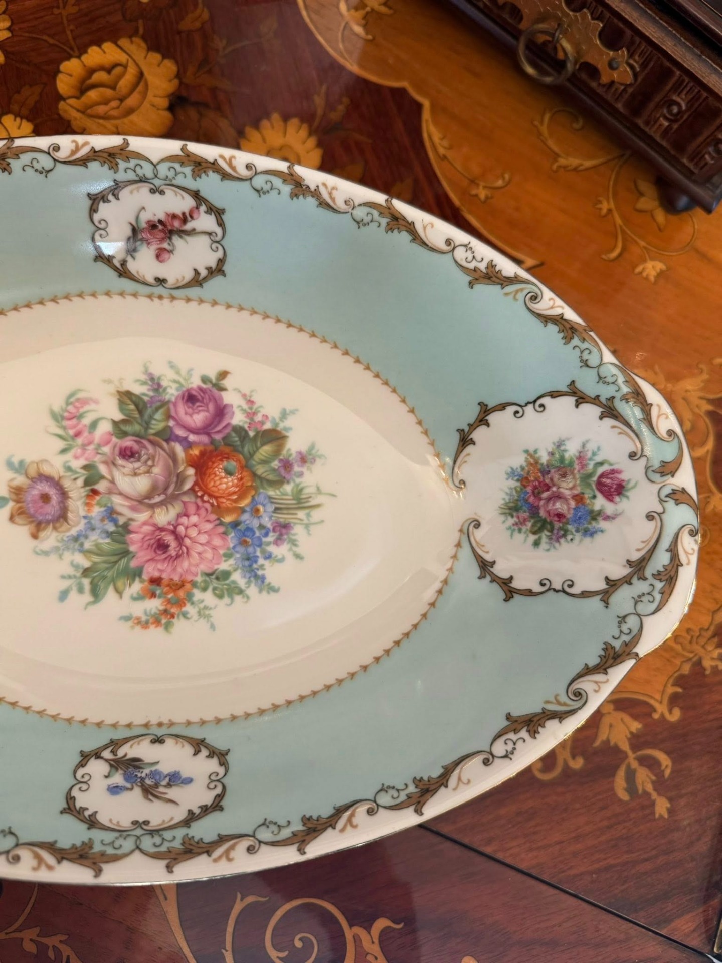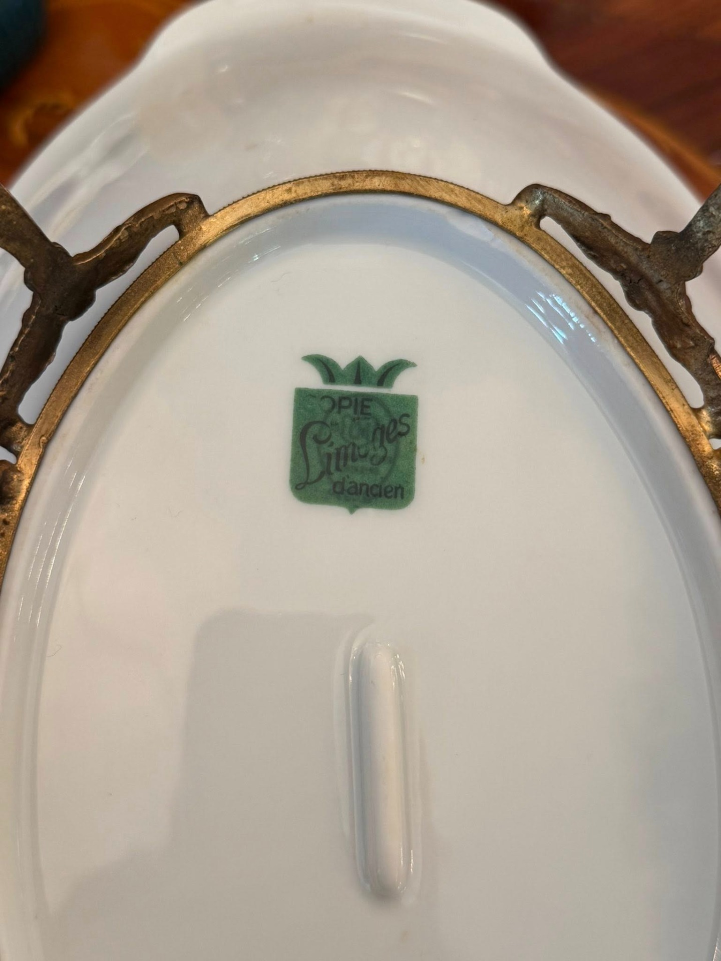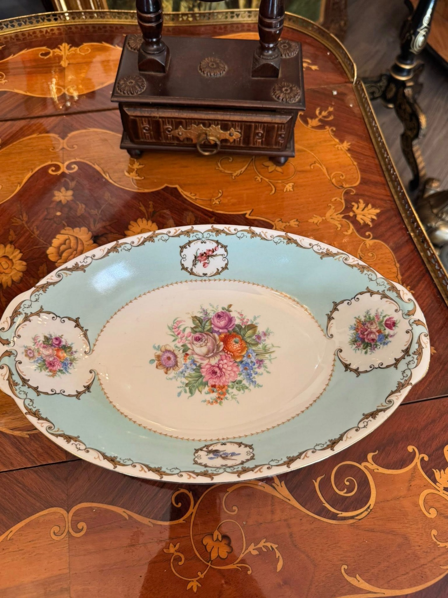 Fructieră elegantă din porțelan realizată în stil Rococo cu motive florale.(Franța, cca 1970)