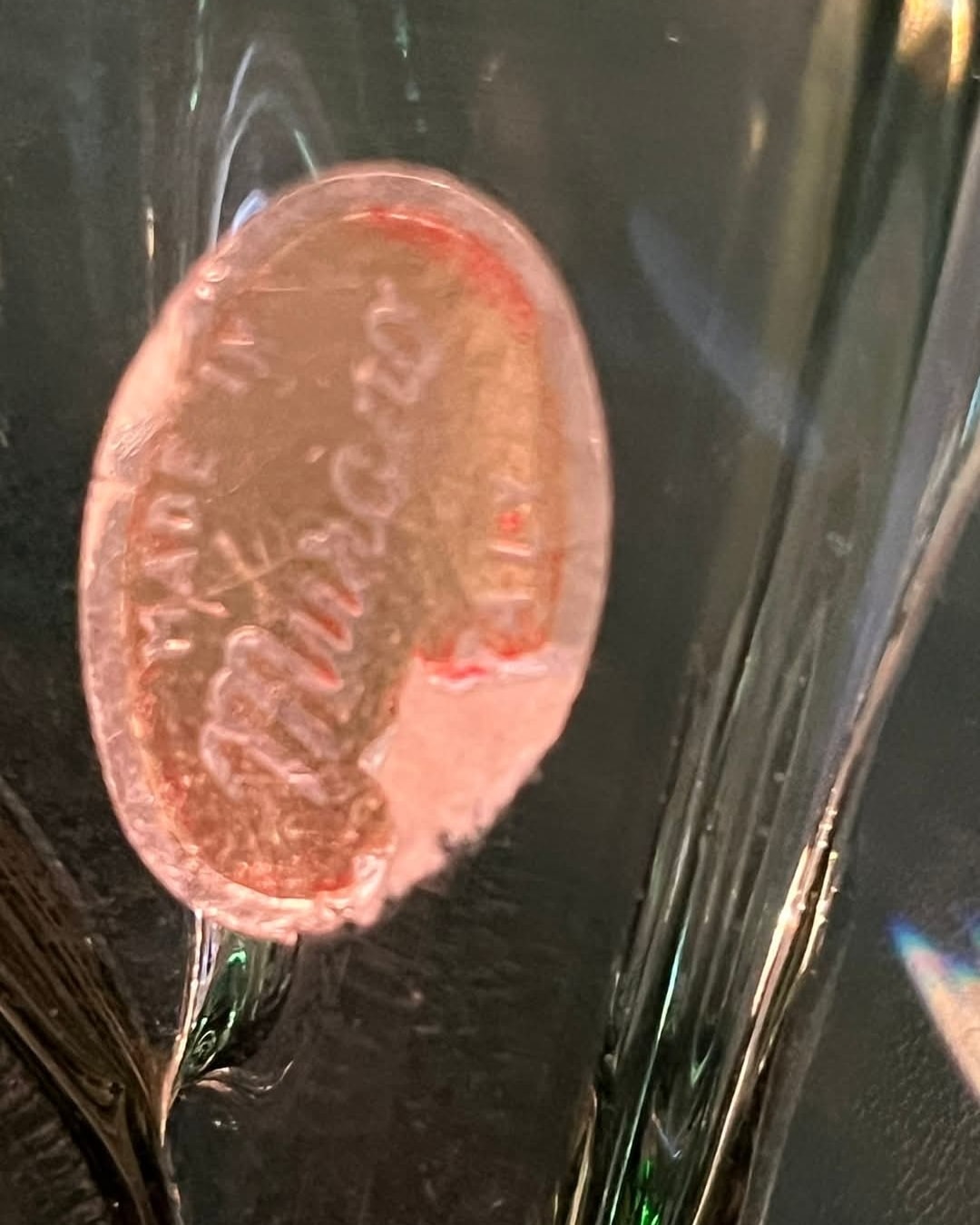 Culoare: Verde smarald. Sticla este lucrată în masa ei (nu vopsită), ceea ce îi dă acea claritate și profunzime specifică sticlei de calitate.