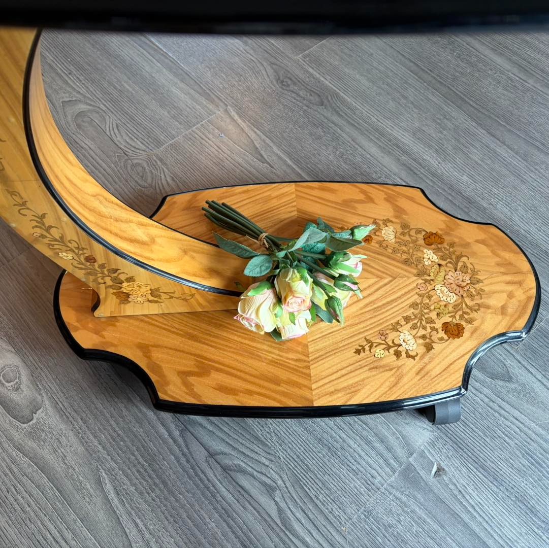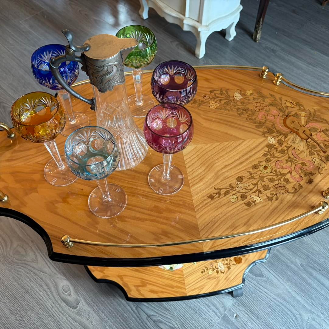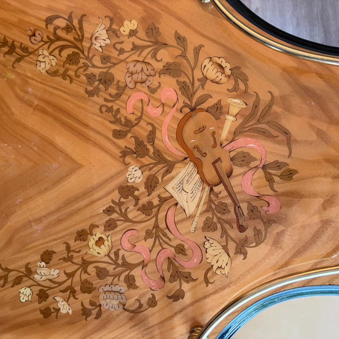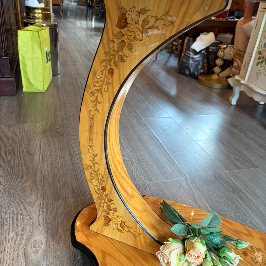 Gheridon din lemn cu intarsie.