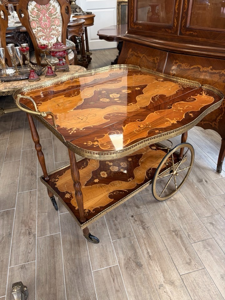gheridon (măsuță de servit) superb, o piesă autentică de mobilier vintage Italiana, cu laterale pliabile.