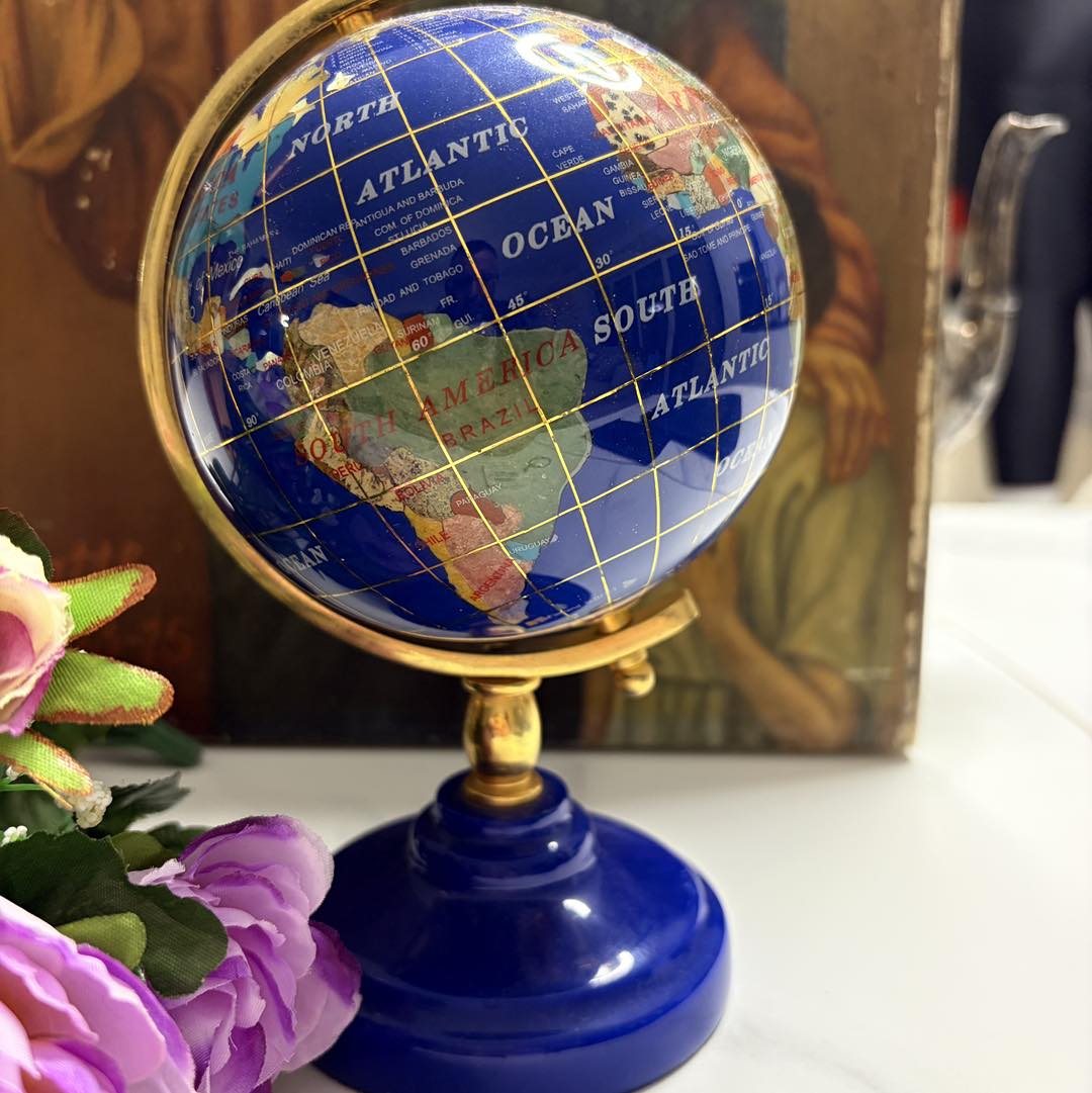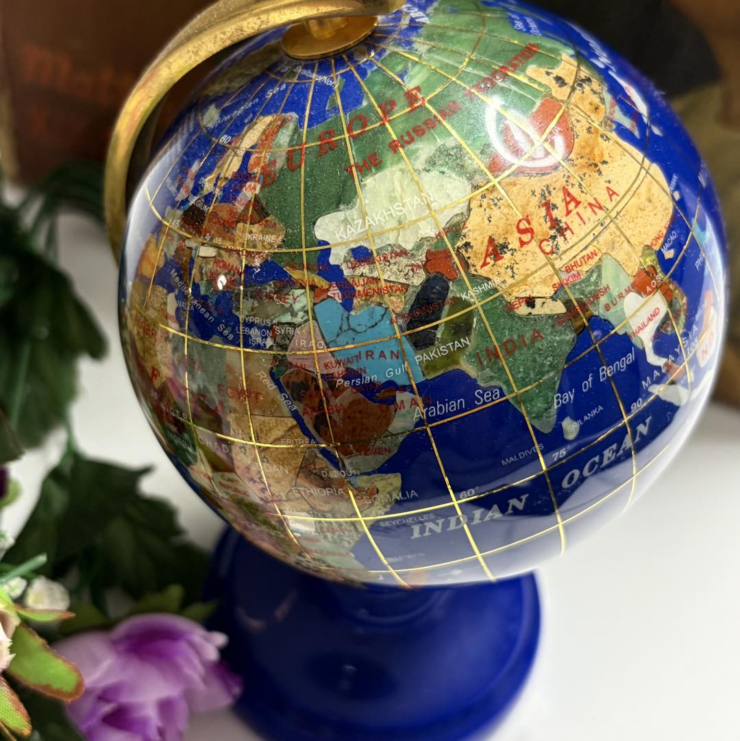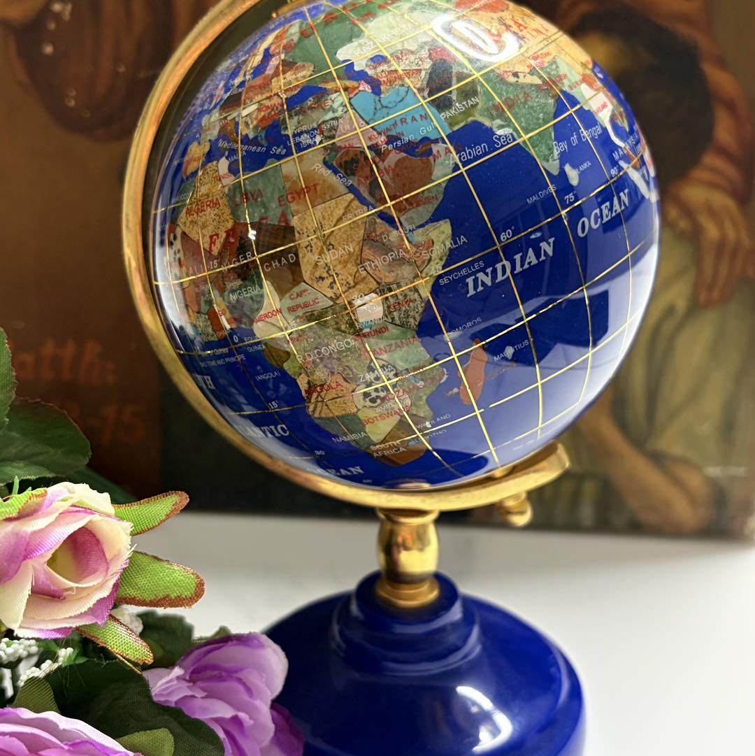 Glob Pământesc de Lux - Mozaic din Pietre Semiprețioase și Inserții Aurii