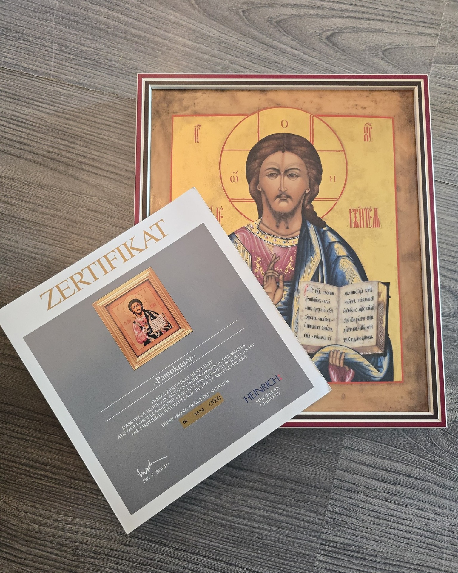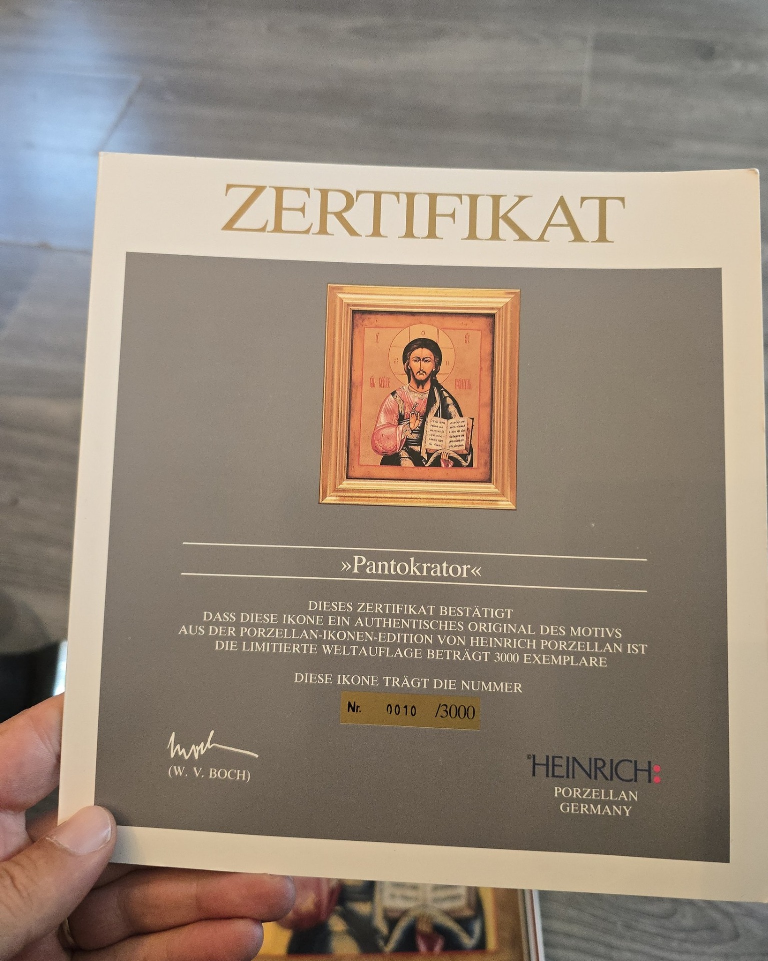 Icoană de colecție pe porțelan de lux, realizată de fabrica germană Heinrich Porzellan (Selb, West Germany), cunoscută pentru serii exclusiviste de artă