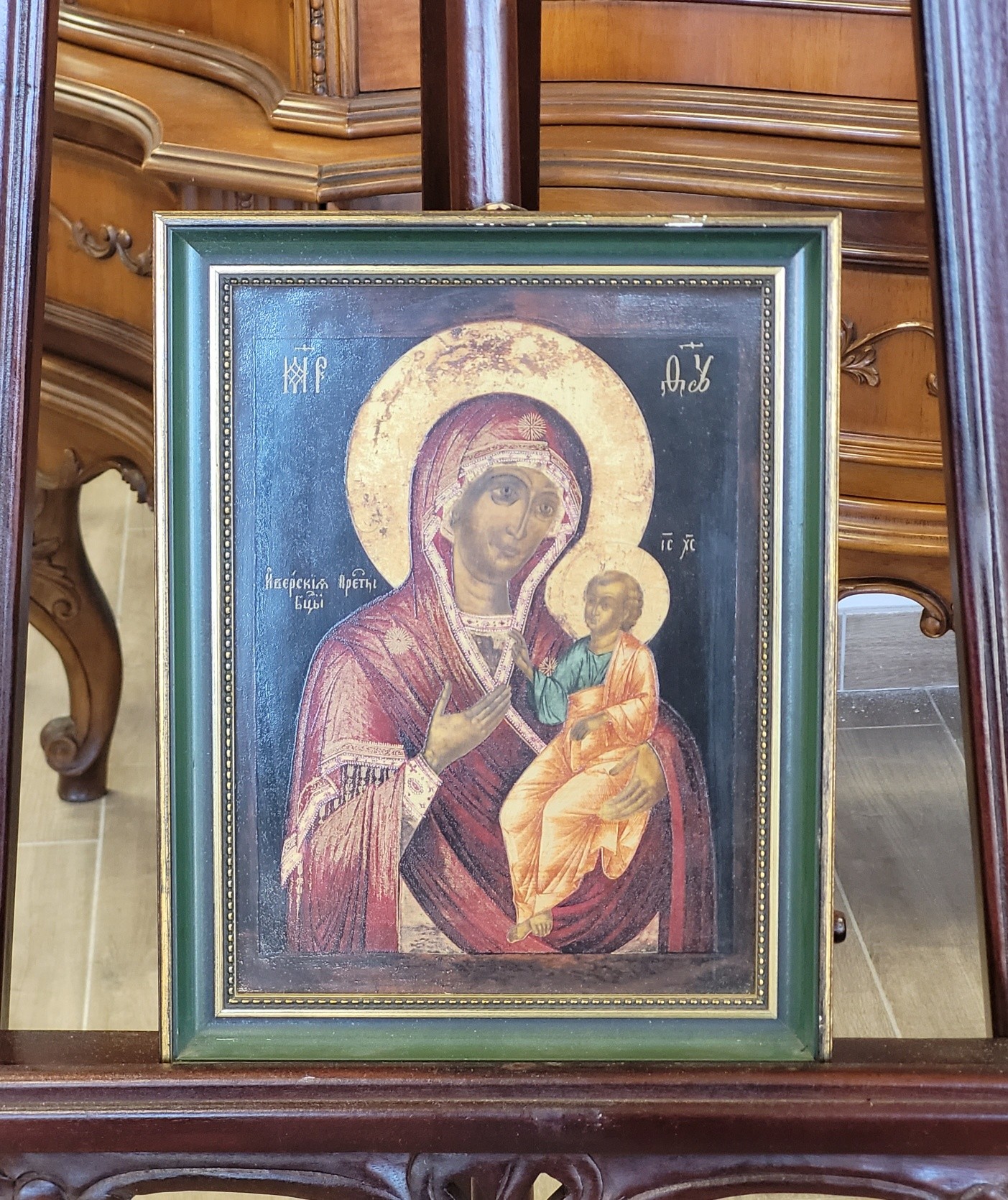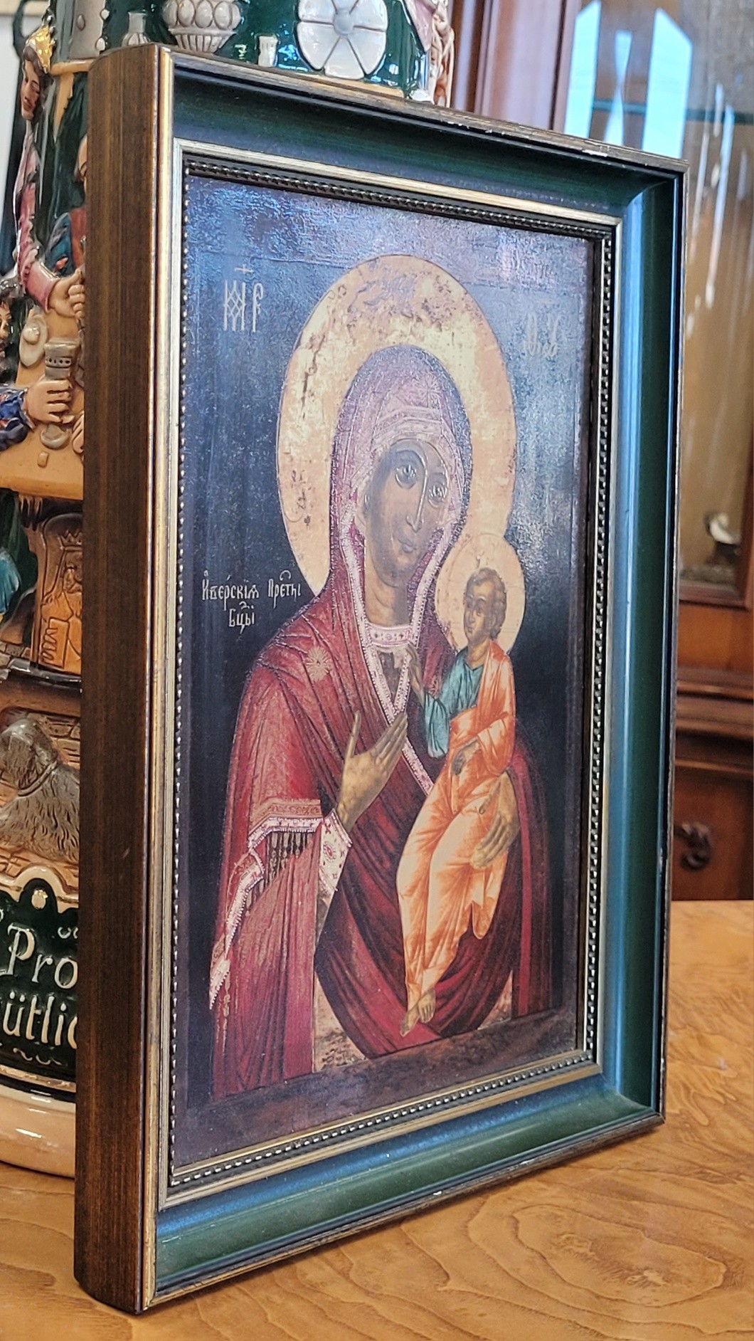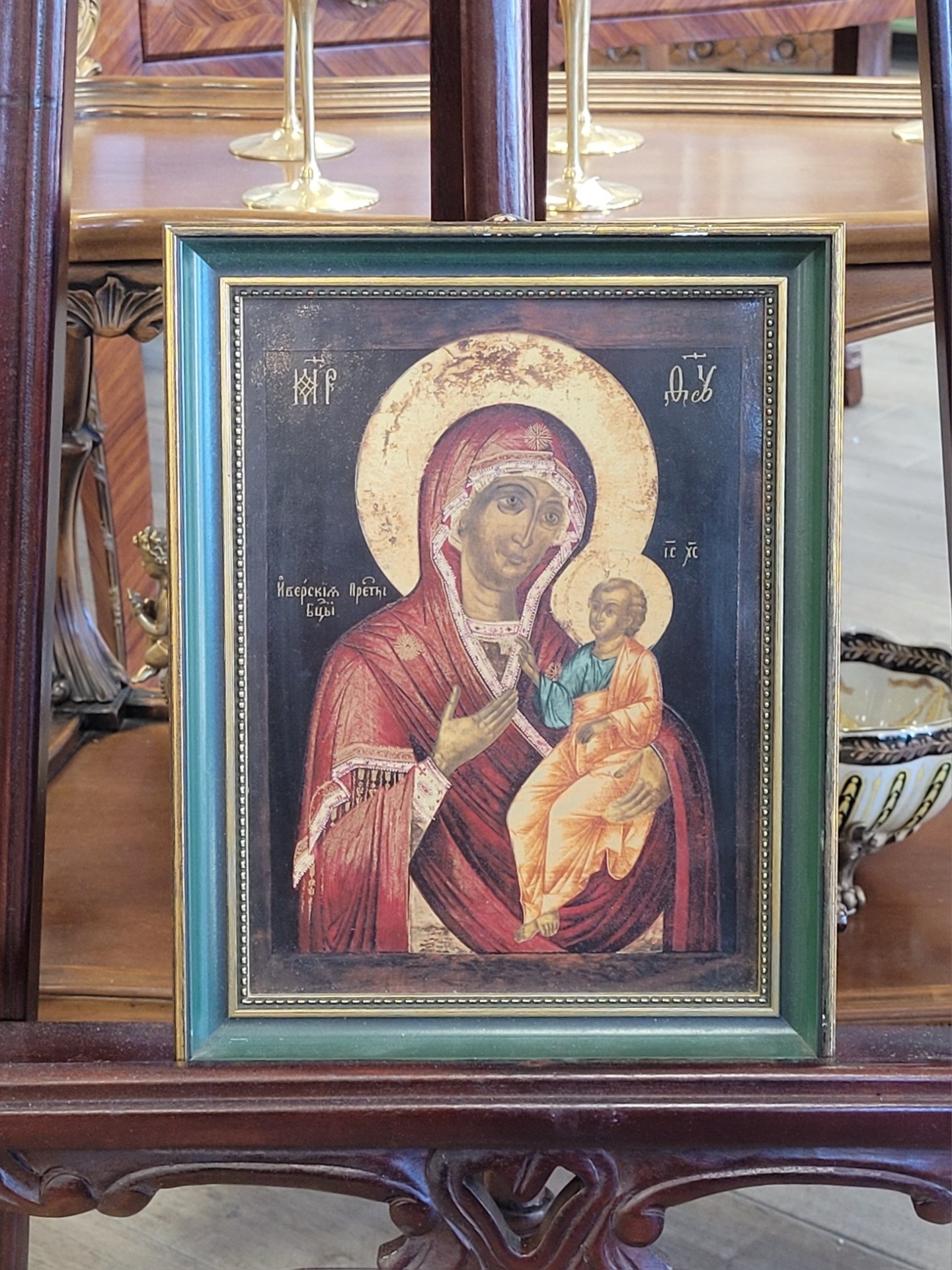 Piesa redă cu o finețe remarcabilă icoana Maicii Domnului din Iviron (Iverskaya), după un model rusesc autentic din secolul al XIX-lea.