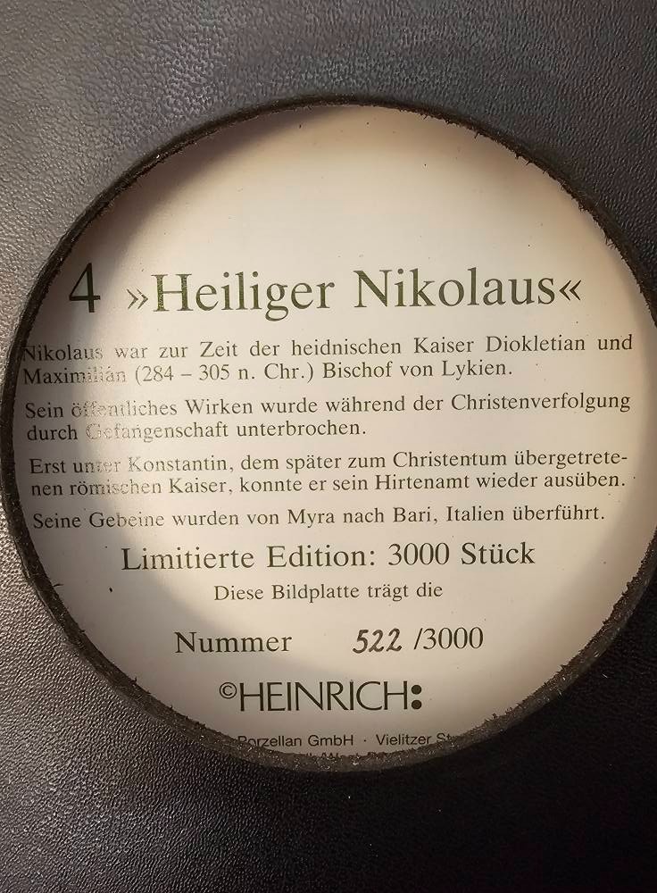 Icoană de colecție reprezentându-l pe Sfântul Nicolae (Heiliger Nikolaus), realizată de Heinrich Porzellan GmbH, Germania. Piesa face parte dintr-o ediție