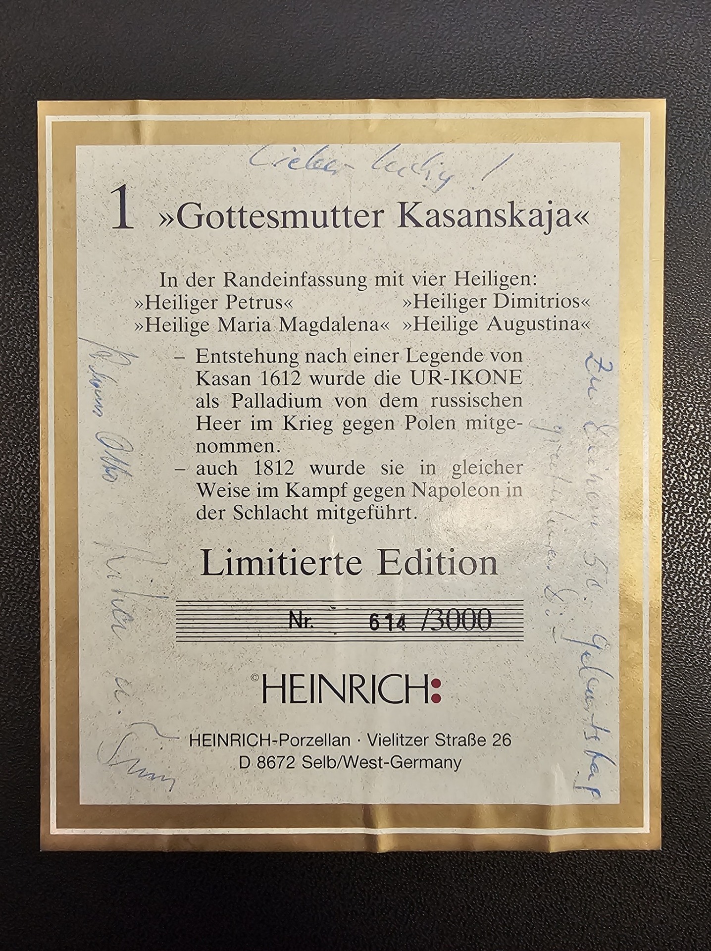Piesa face parte dintr-o ediție limitată la 3000 de exemplare, aceasta fiind numerotată 614 / 3000.