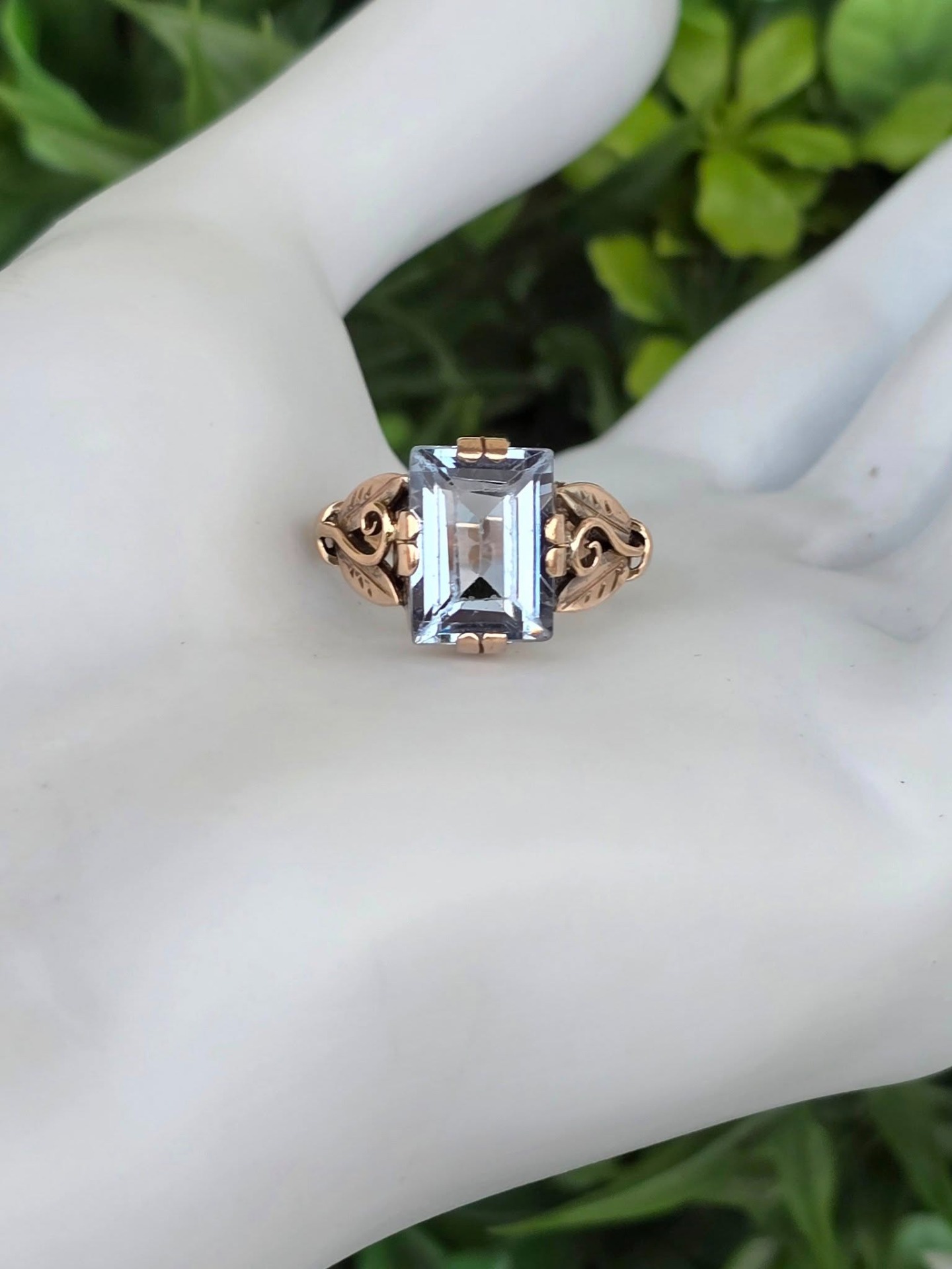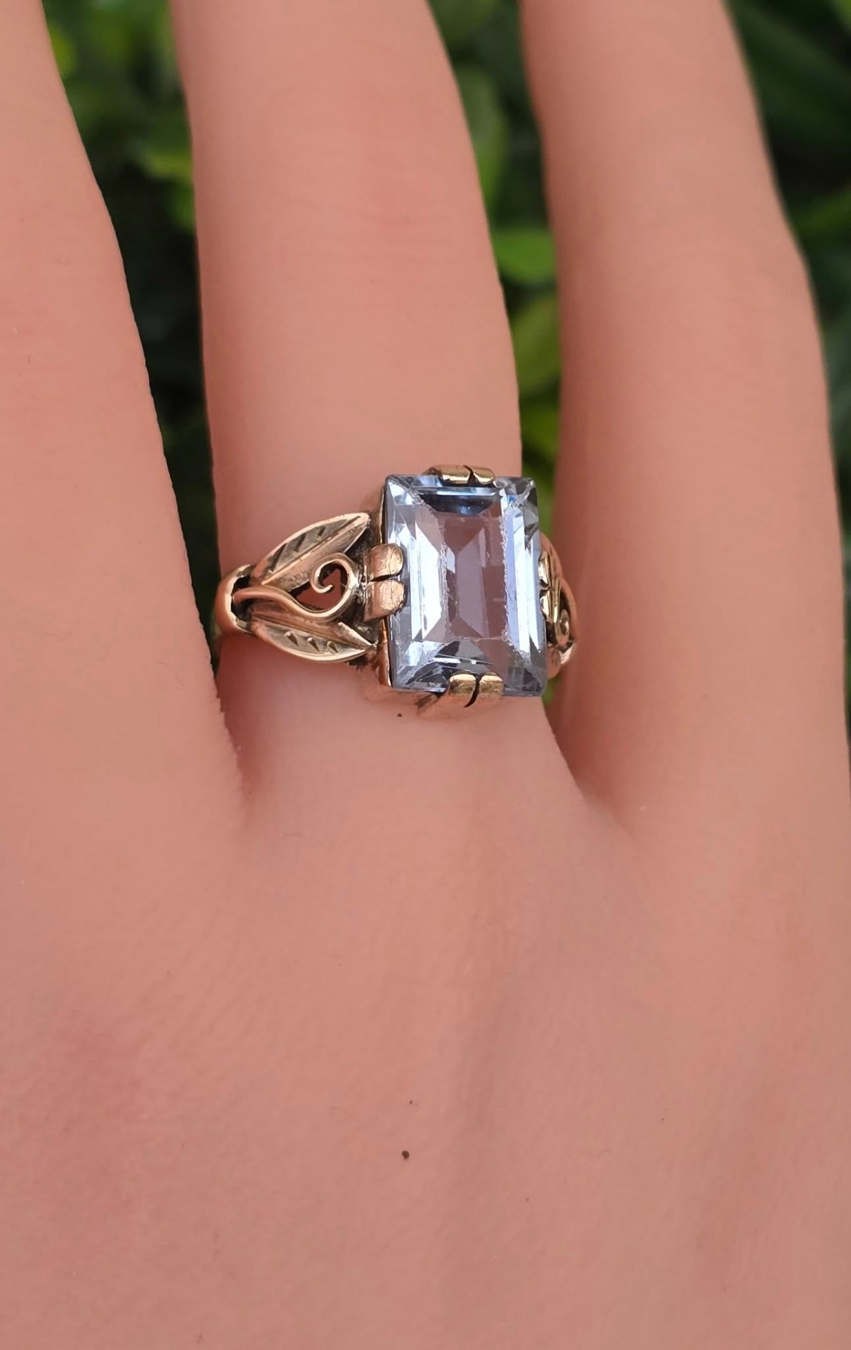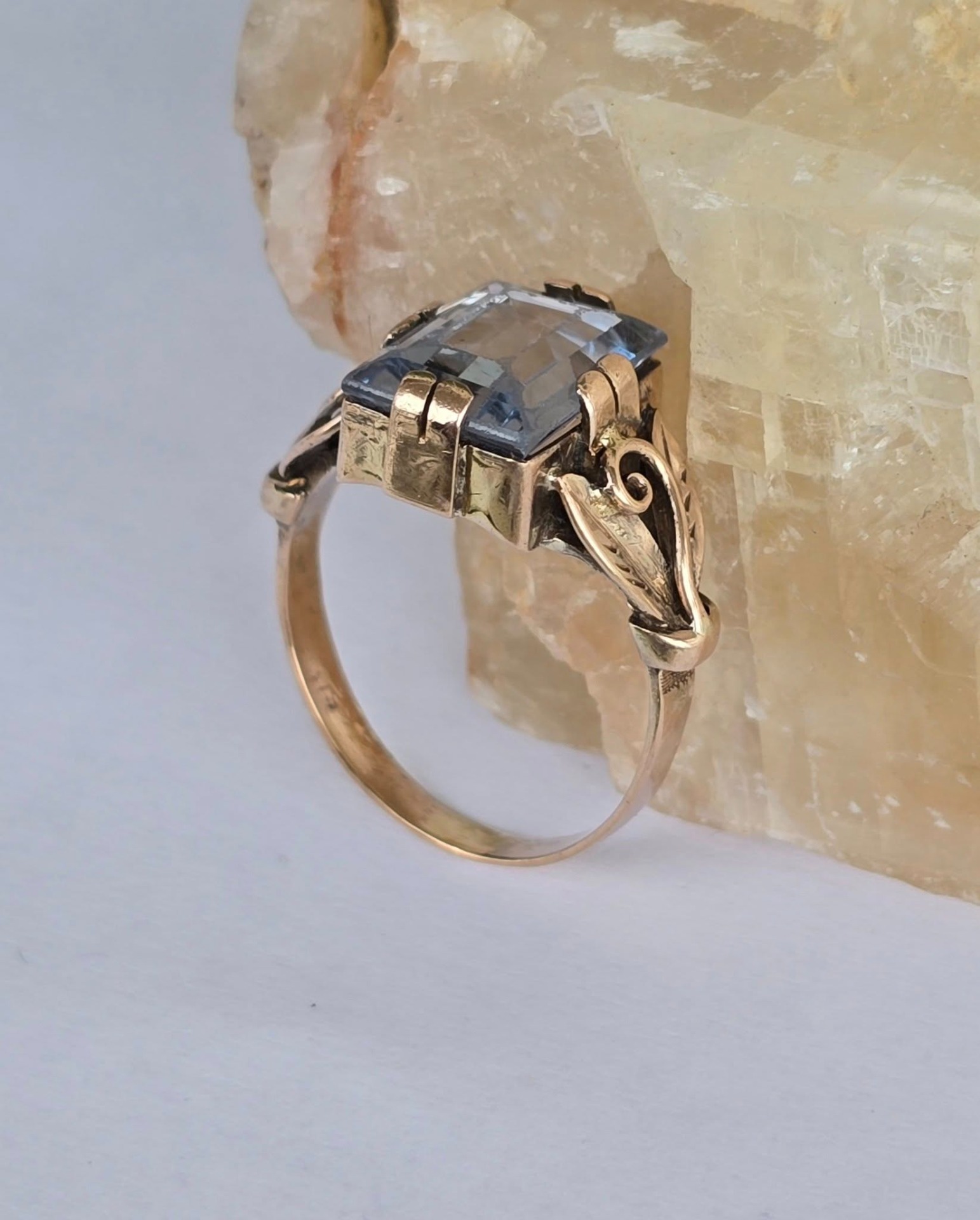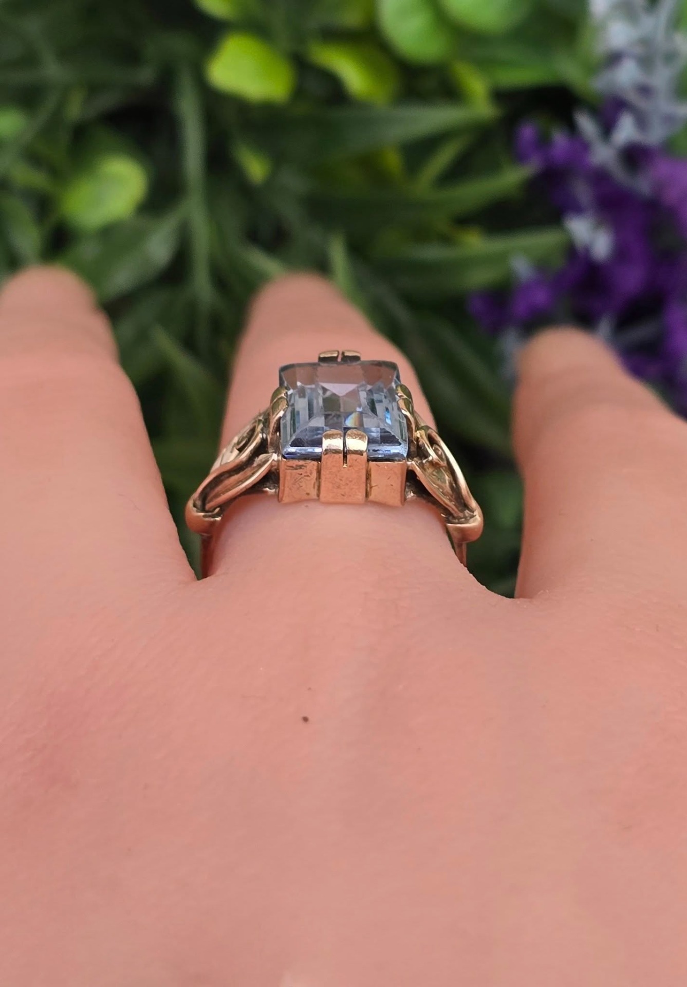 Inel Art Deco deosebit, din aur de 9K, cu topaz natural (anii 1930-1940, Germania).