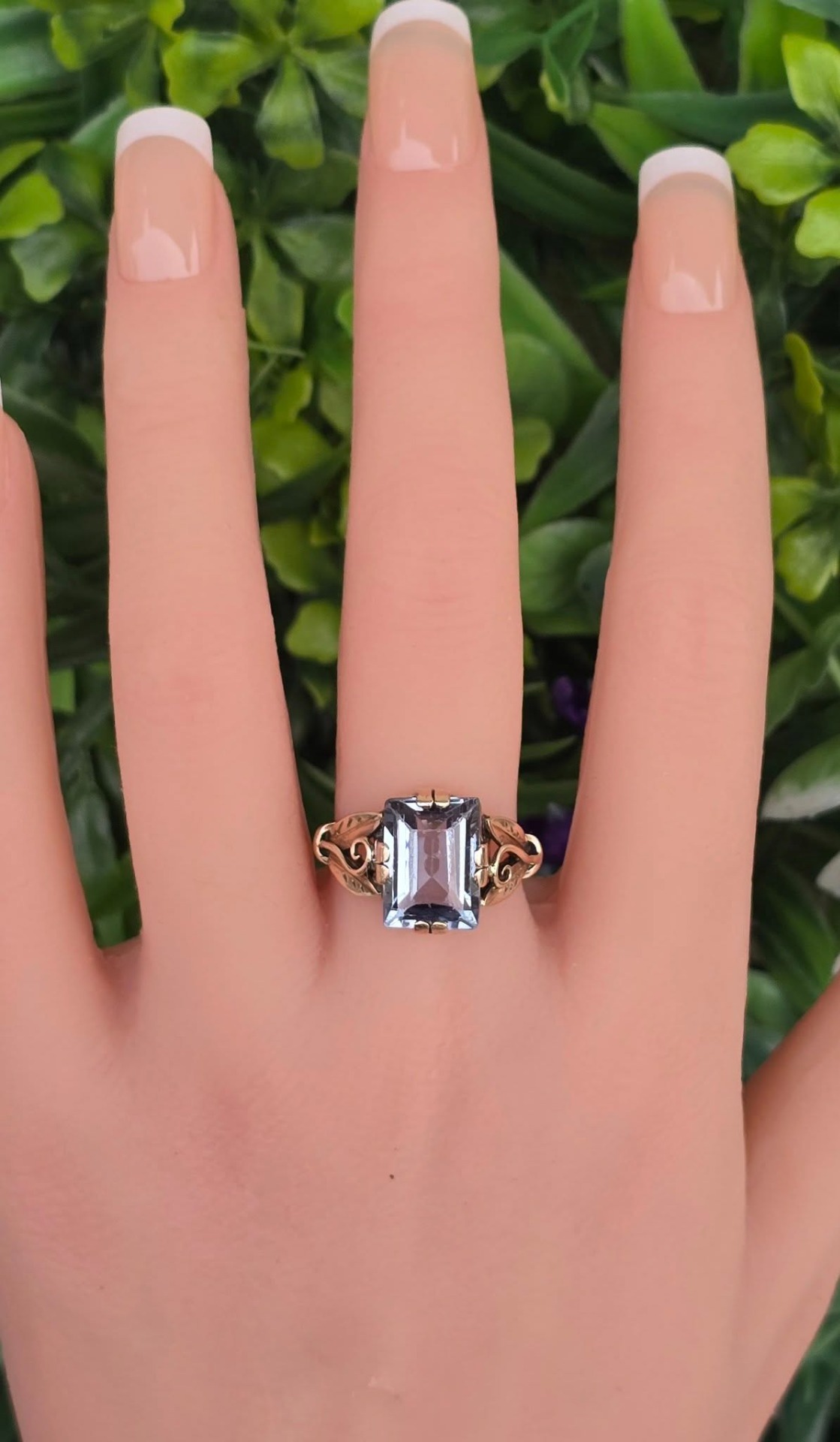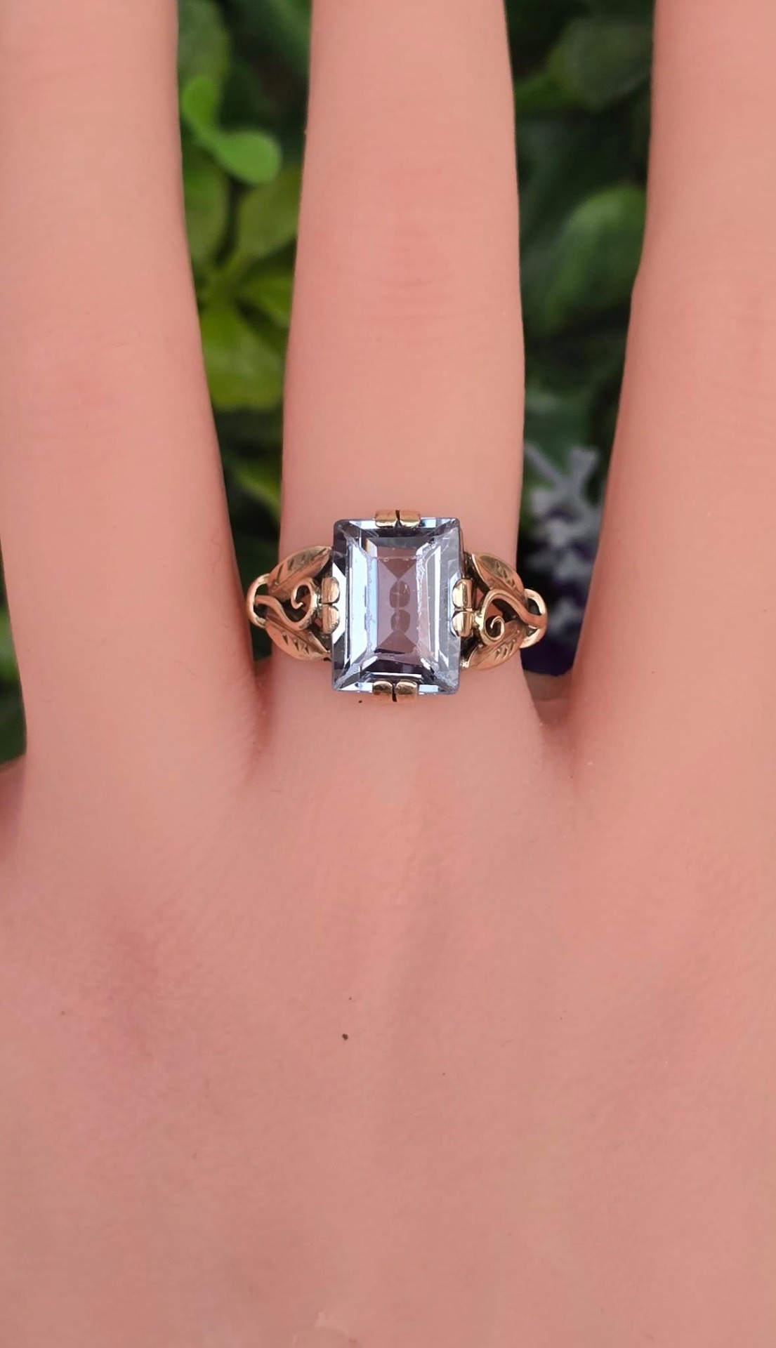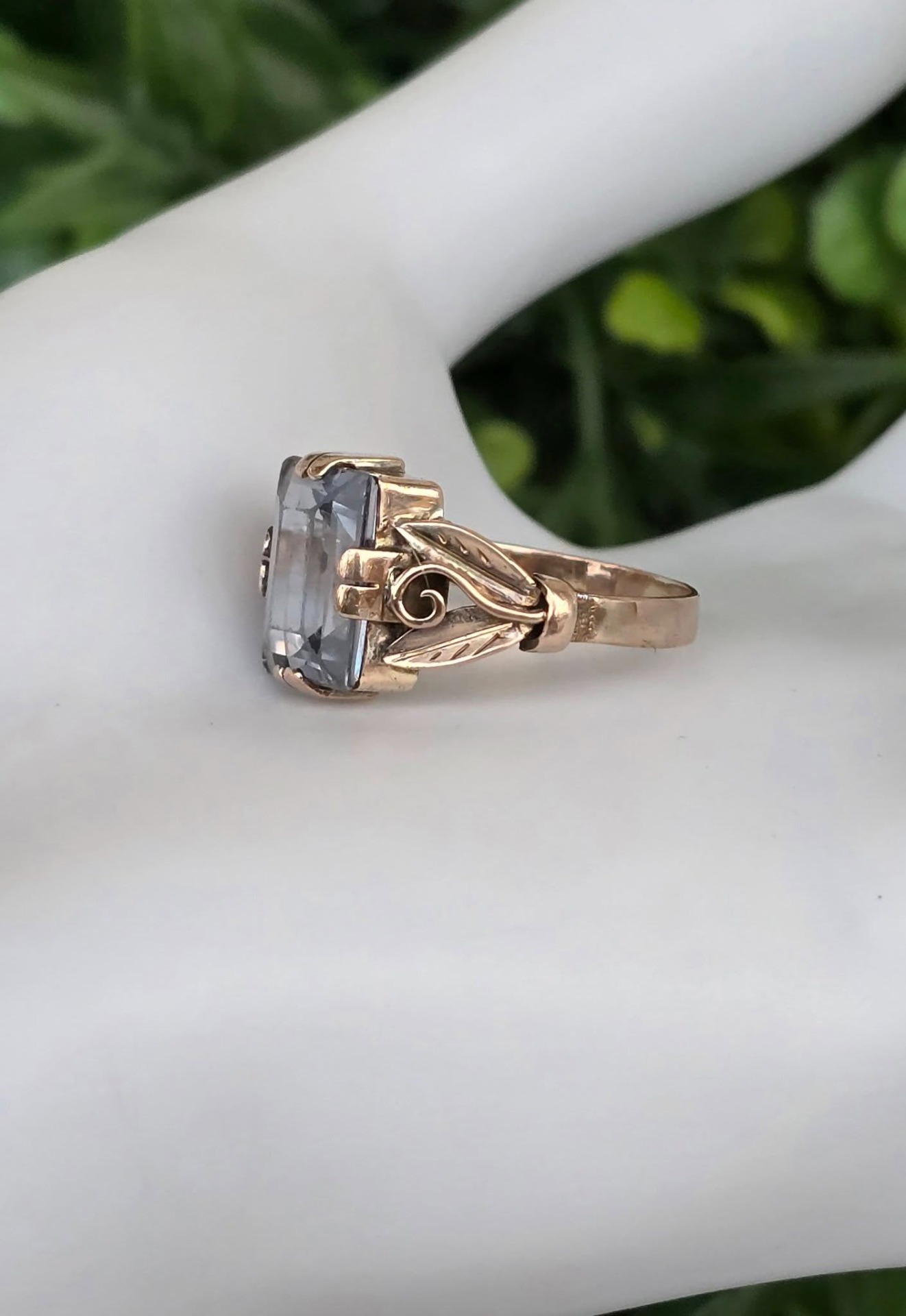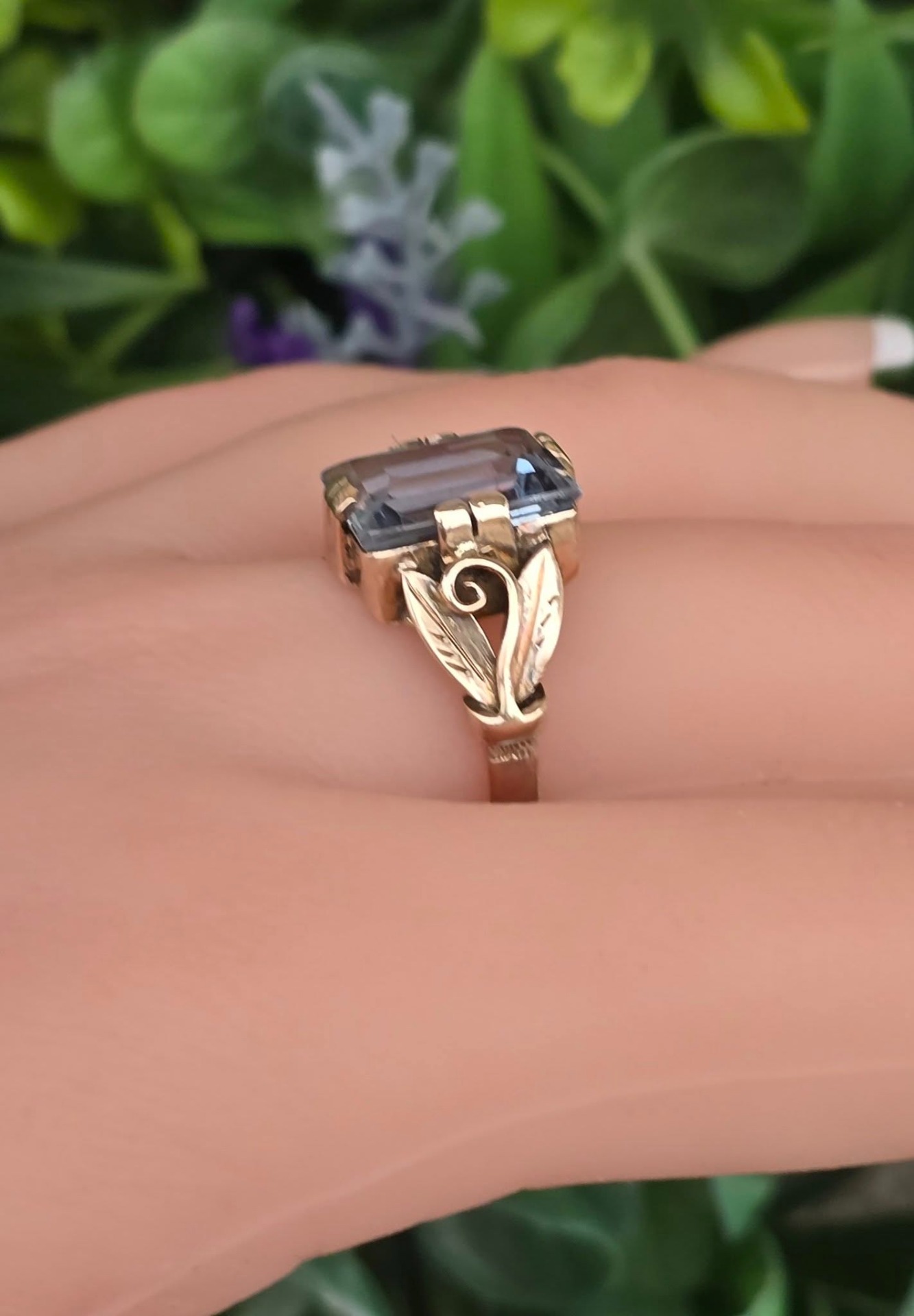 Inel Art Deco deosebit, din aur de 9K, cu topaz natural (anii 1930-1940, Germania).