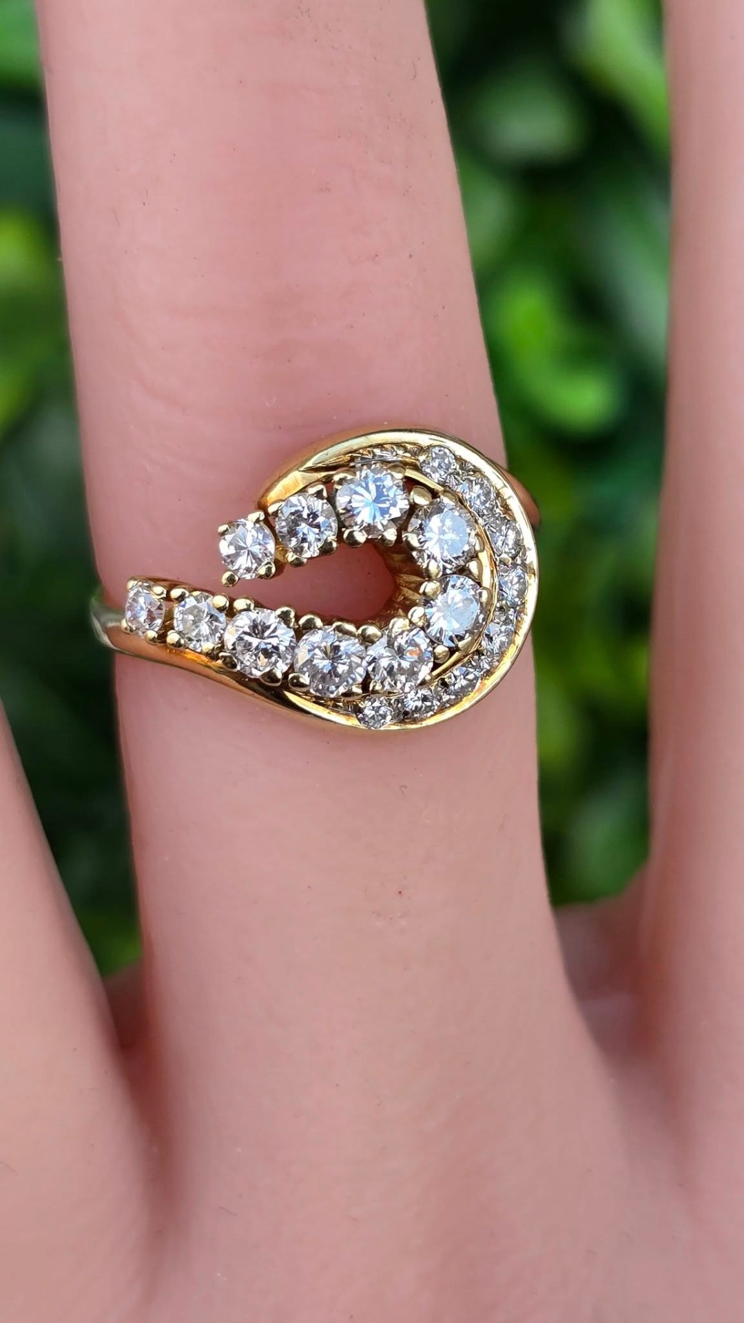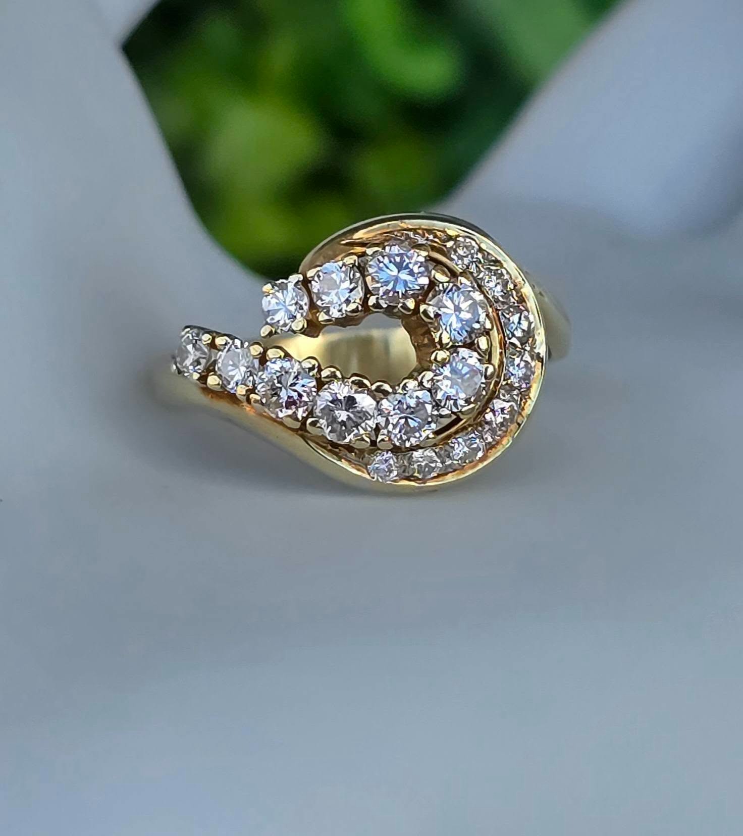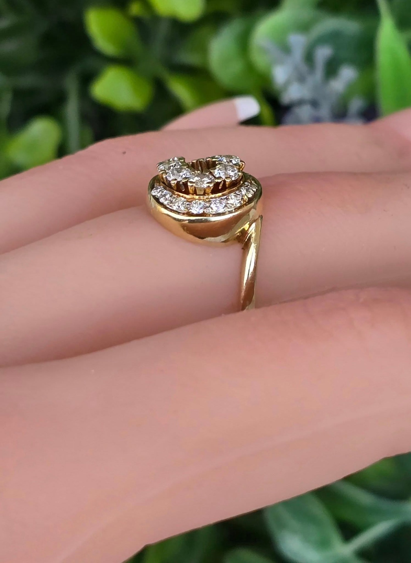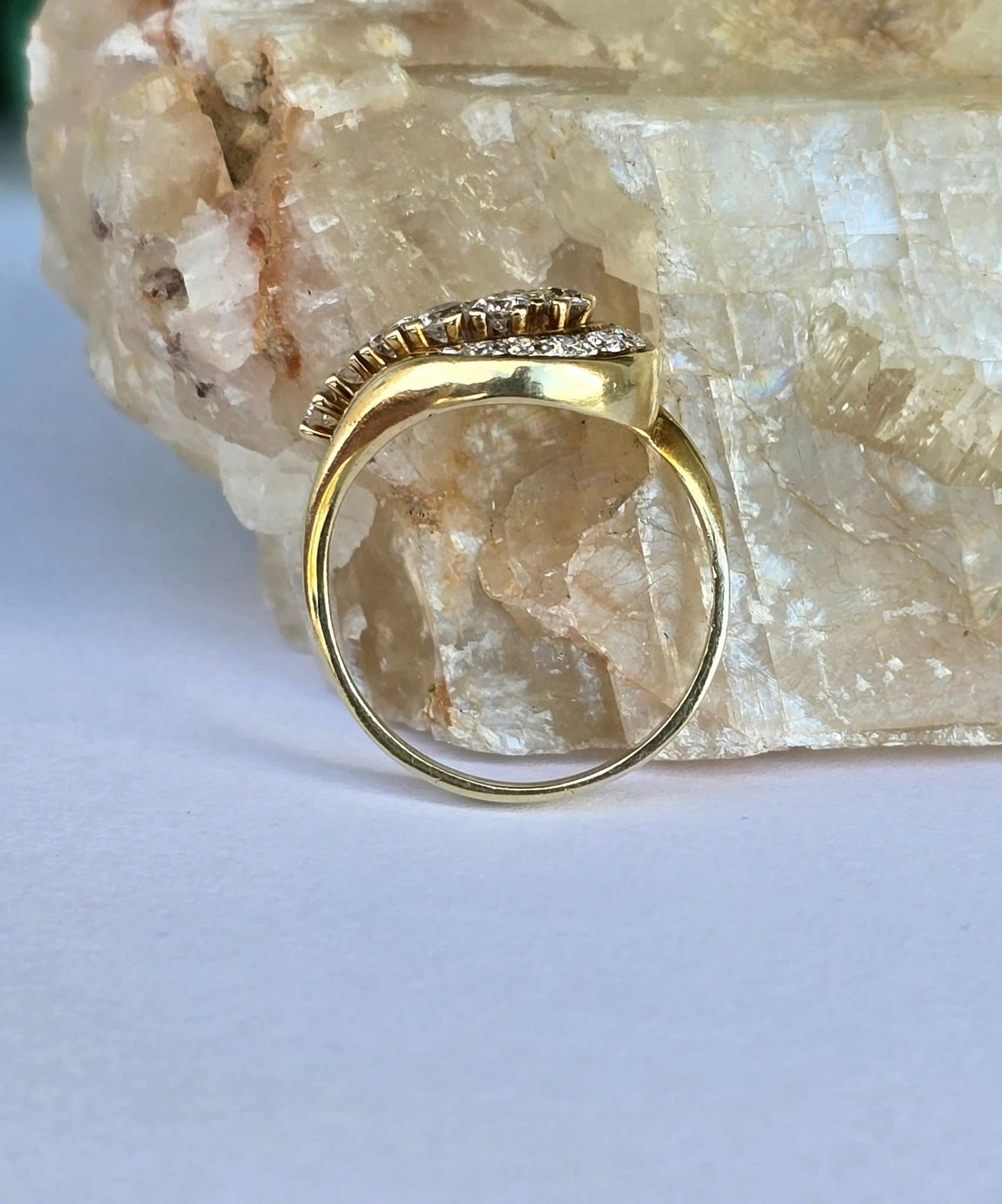 Inel "cocktail" vechi, strălucitor, din aur de 14K, cu 18 superbe diamante naturale (0.73ct) de calitate superioară.