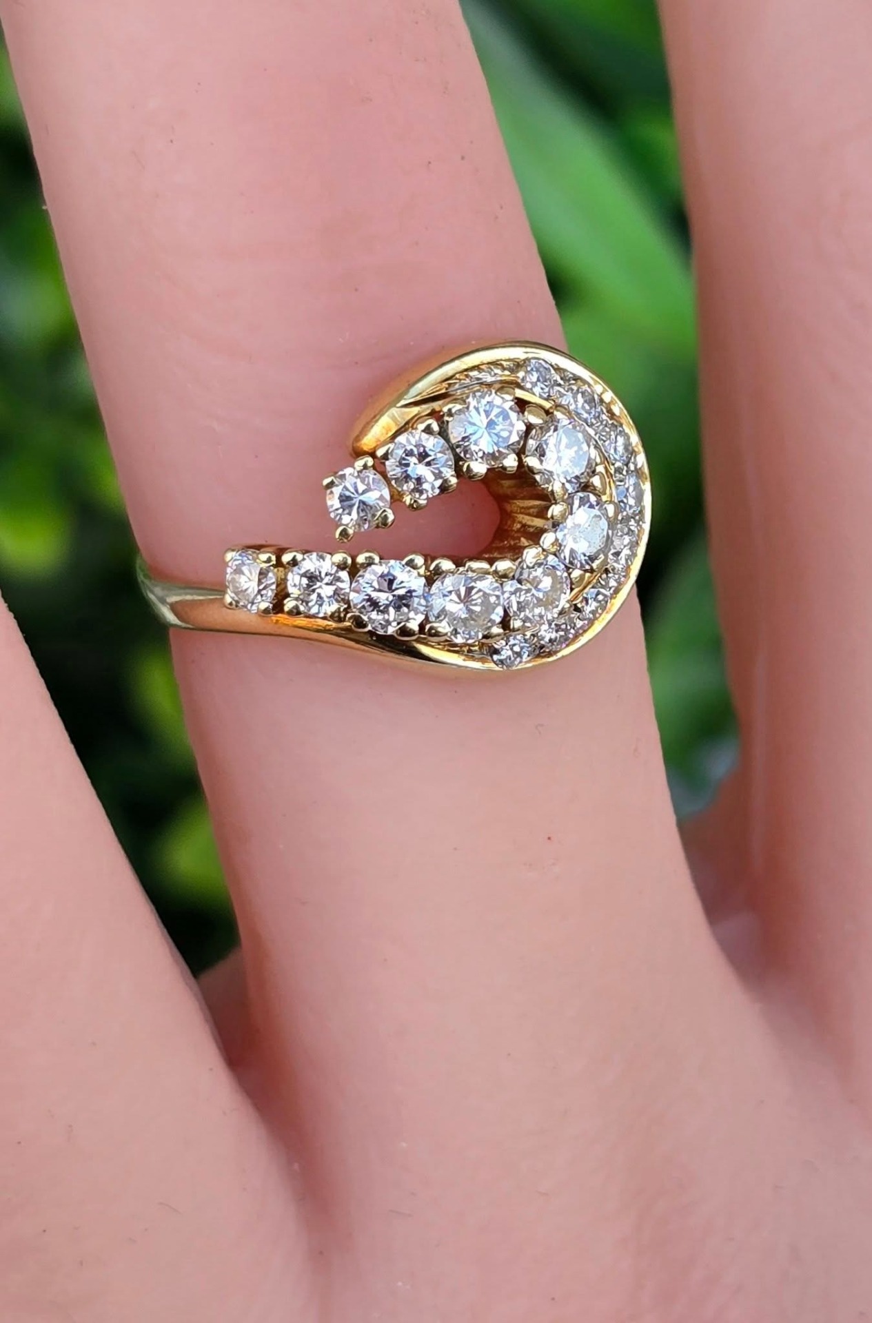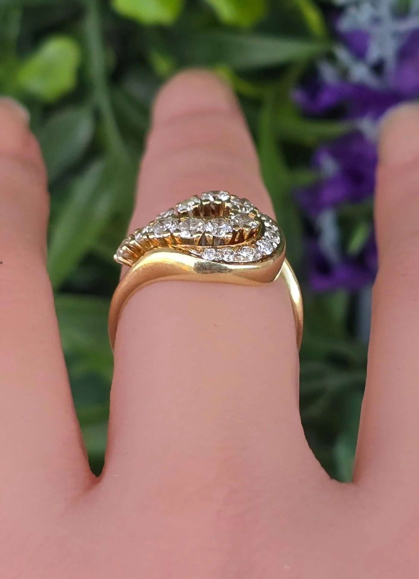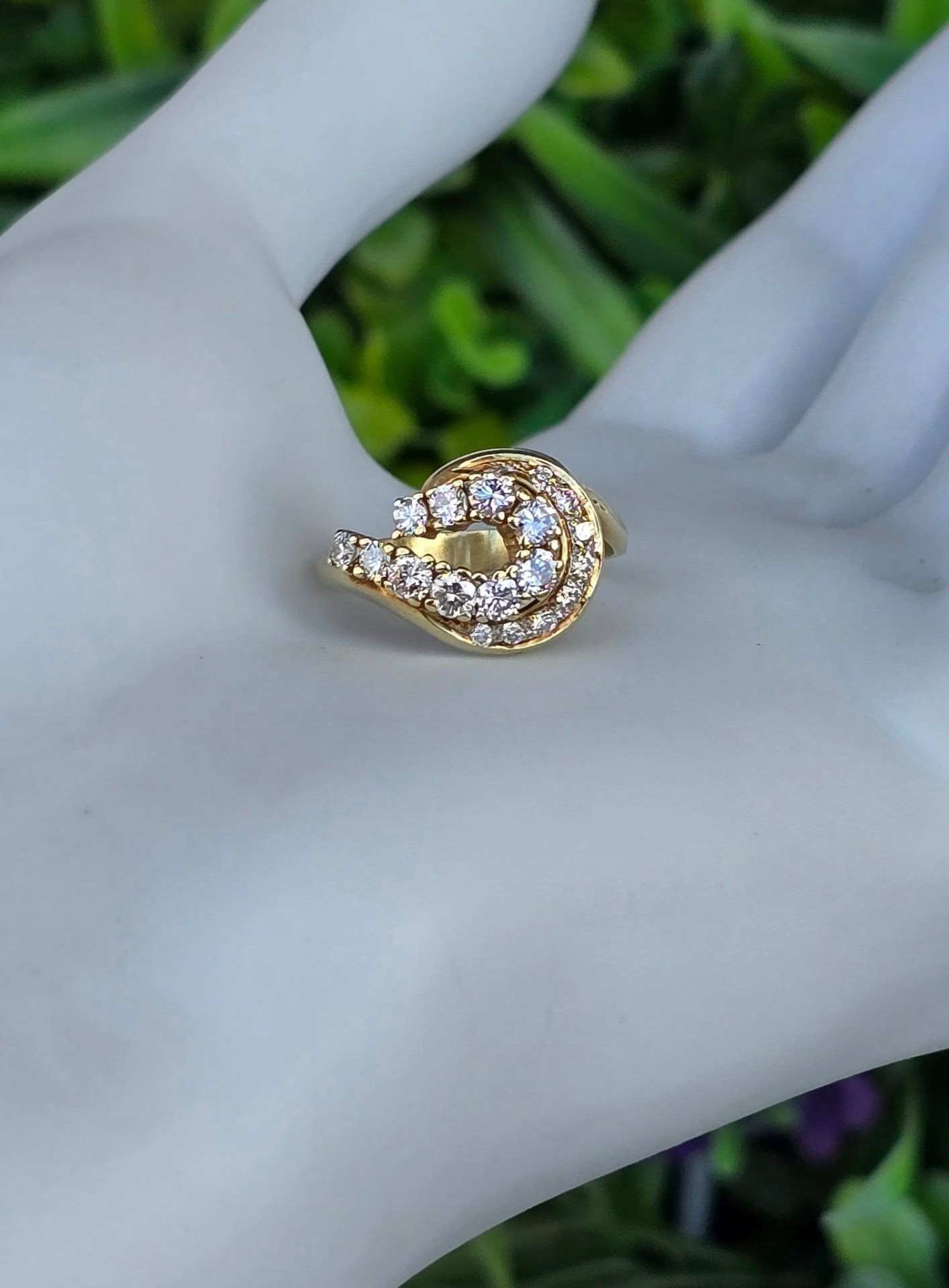 Inel "cocktail" vechi, strălucitor, din aur de 14K, cu 18 superbe diamante naturale (0.73ct) de calitate superioară.