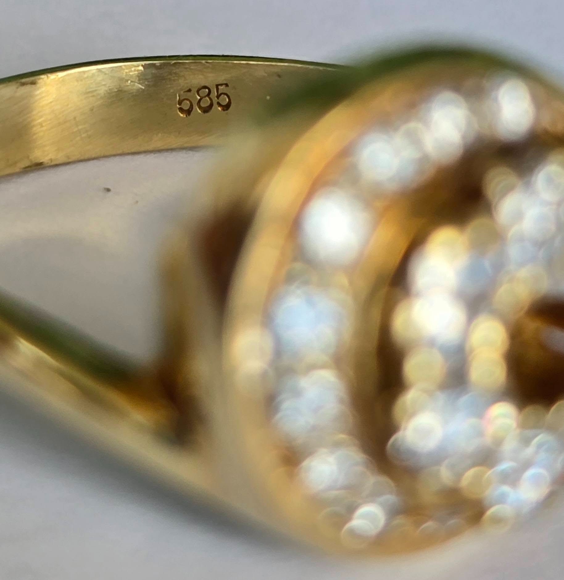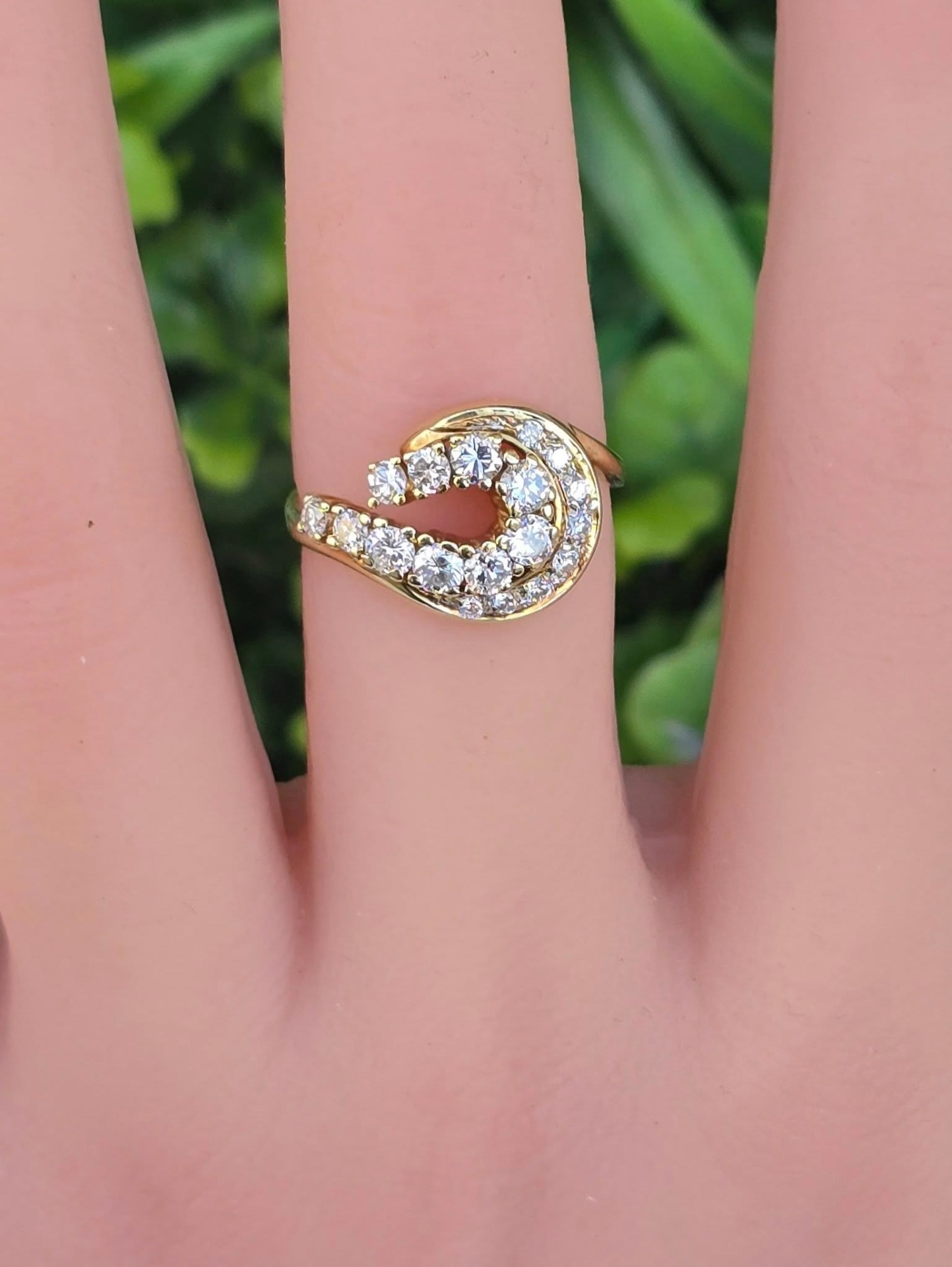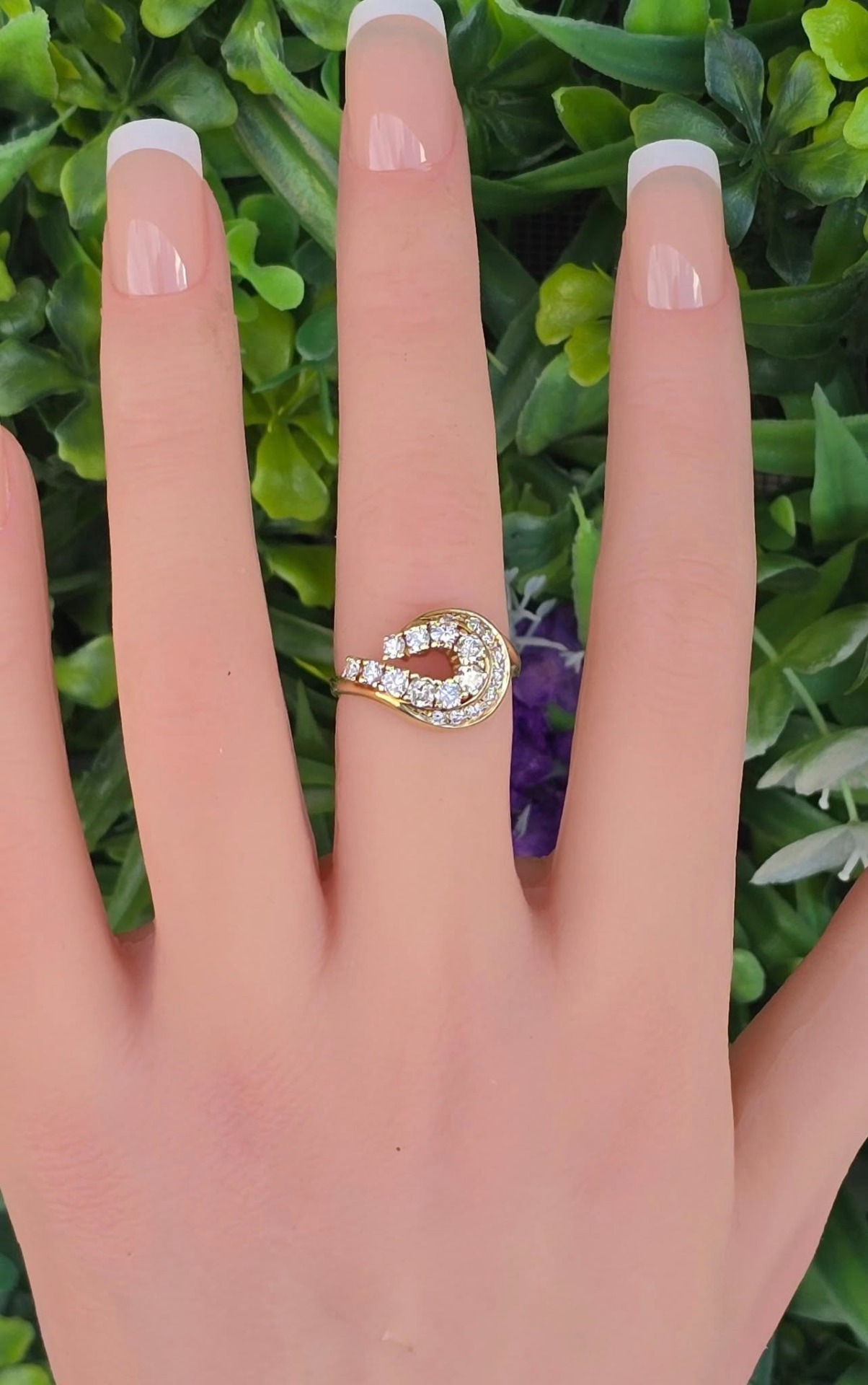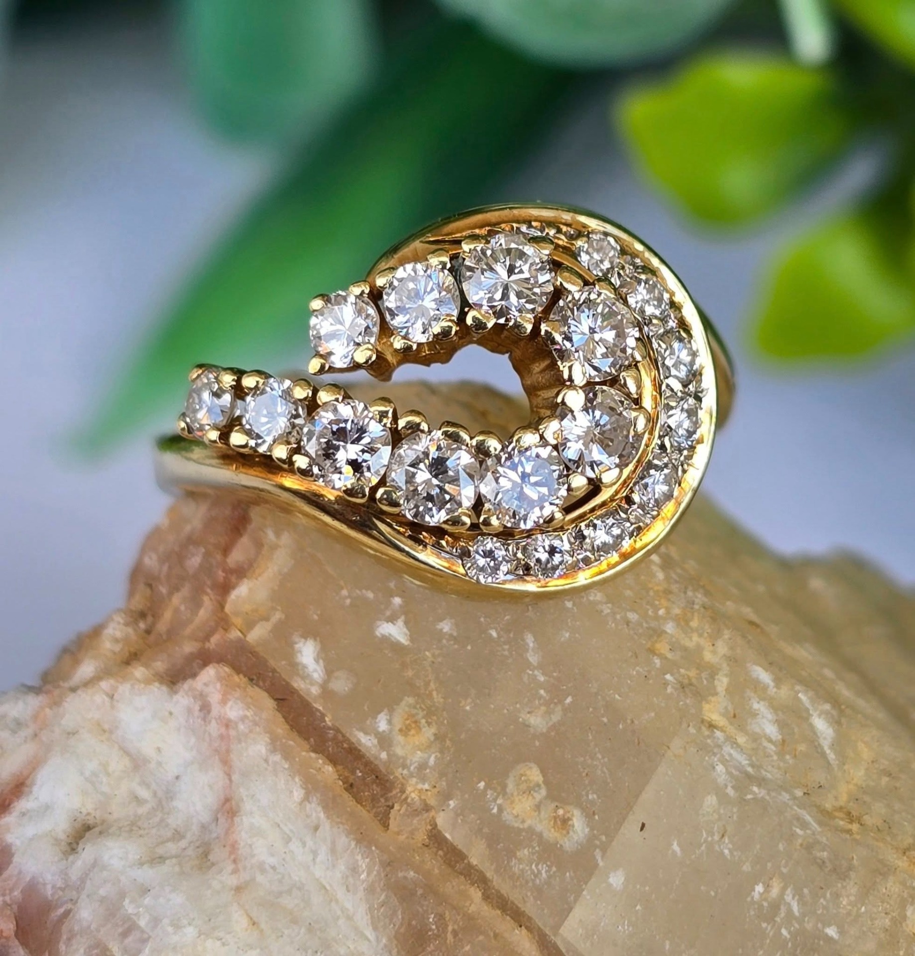 Inel "cocktail" vechi, strălucitor, din aur de 14K, cu 18 superbe diamante naturale (0.73ct) de calitate superioară.