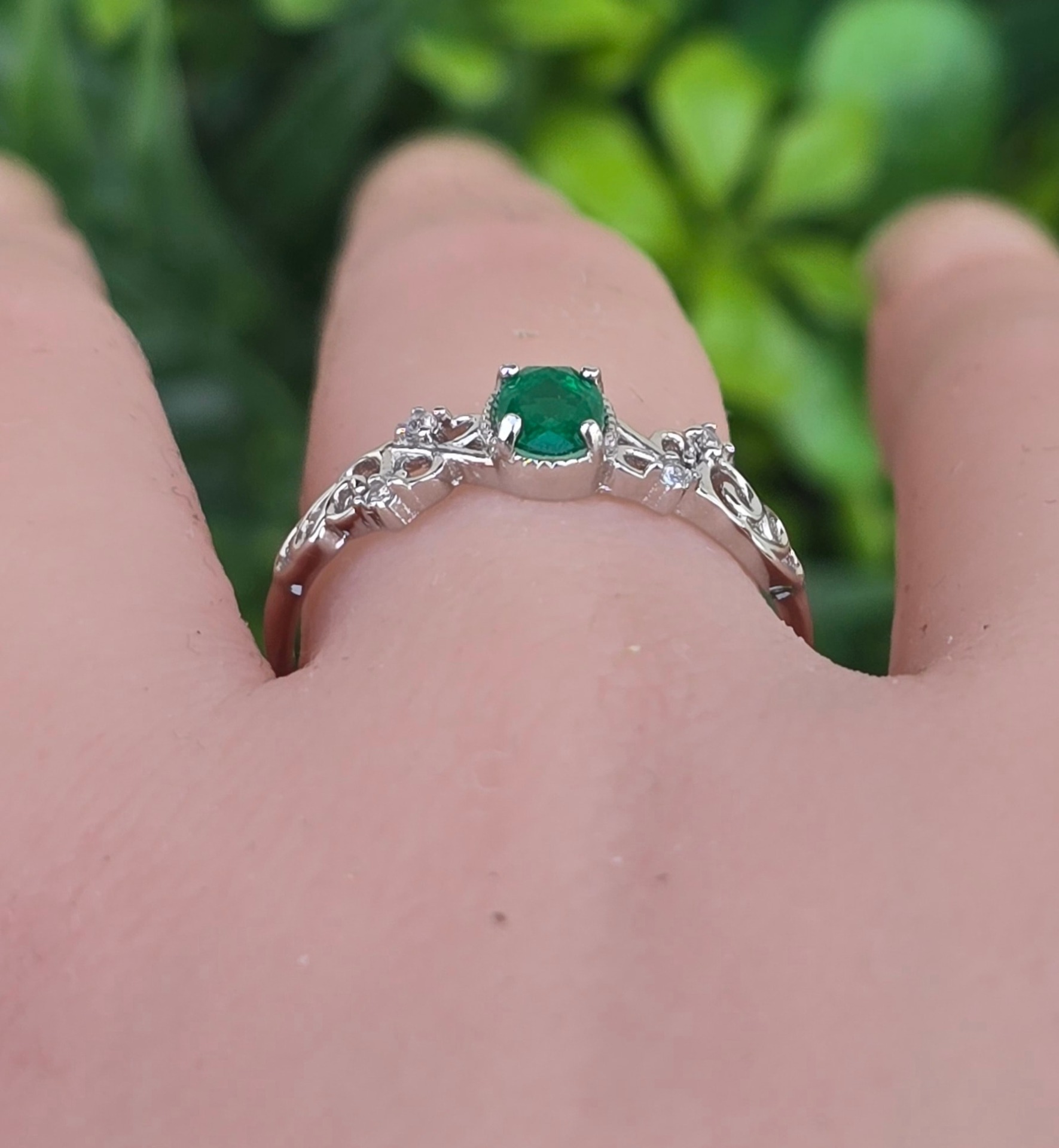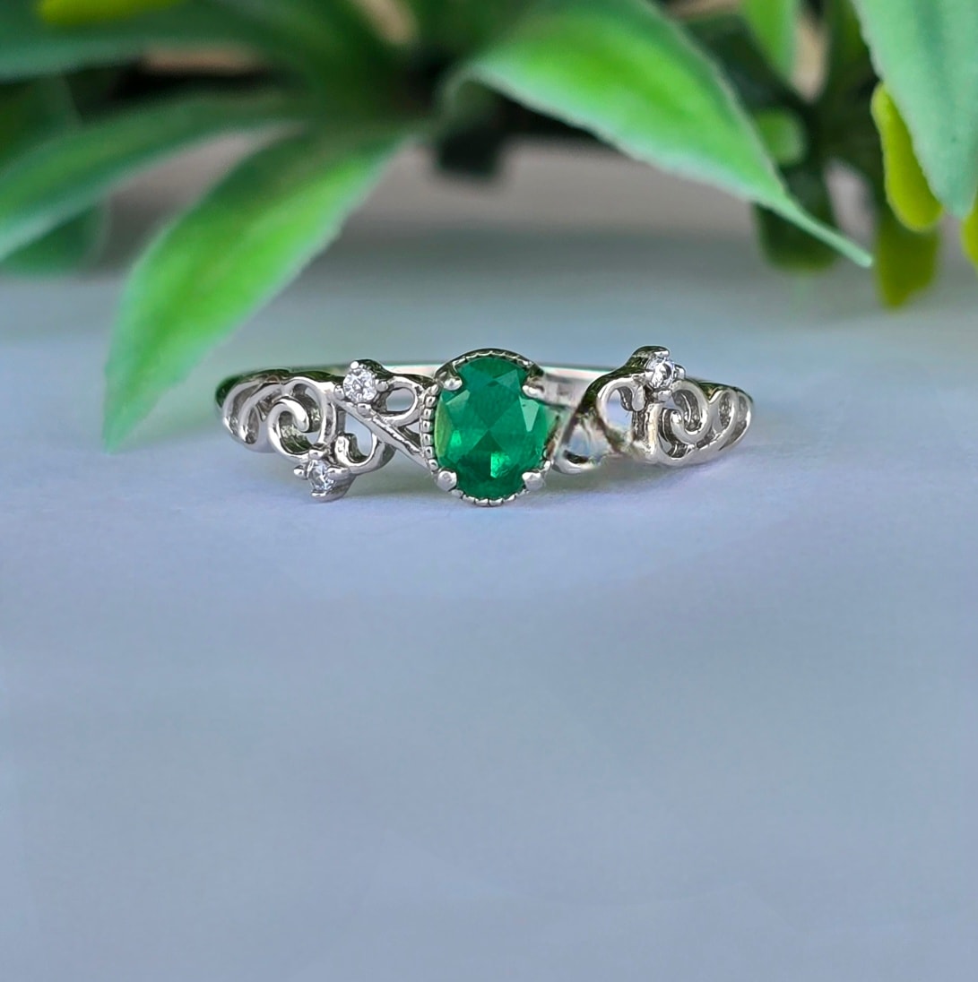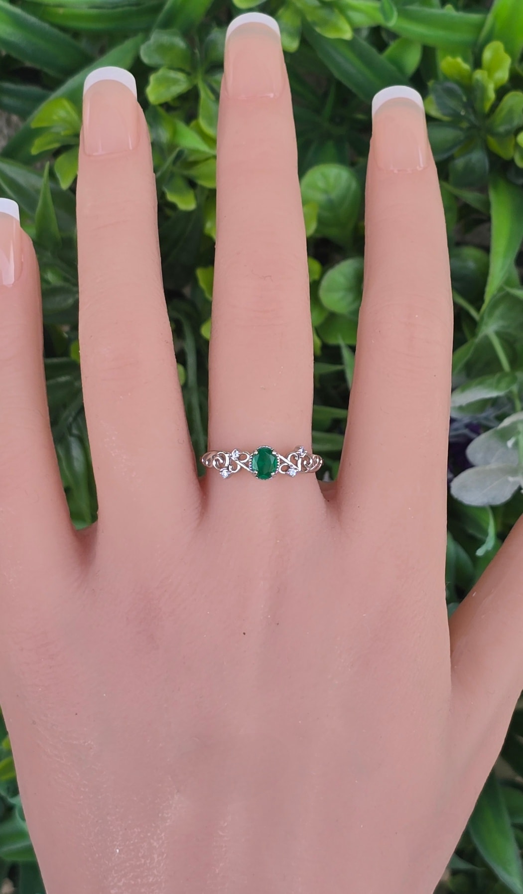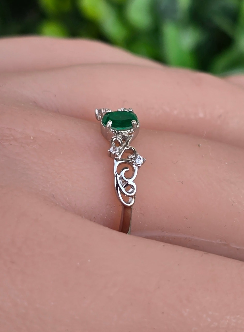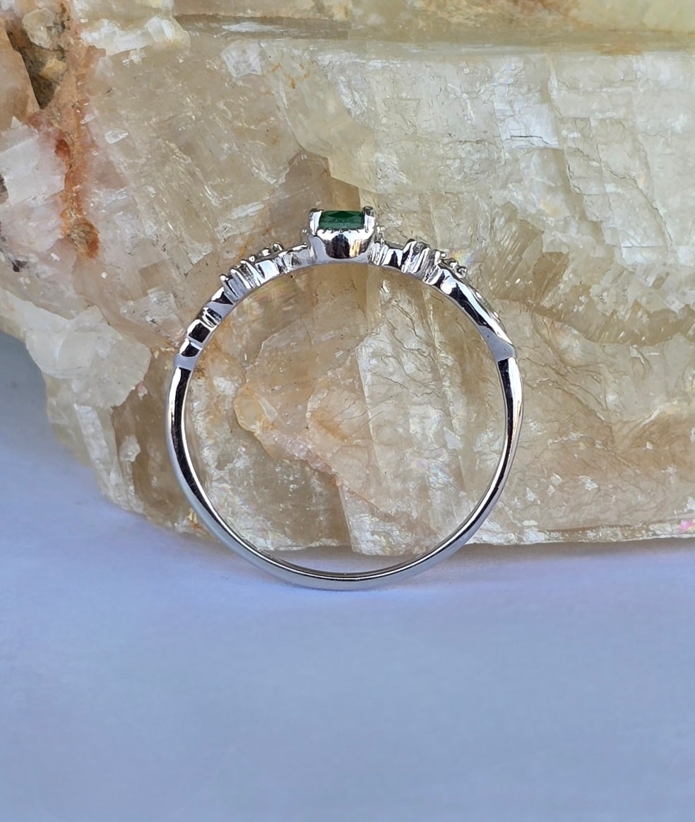 Inel contemporan din argint, cu smarald "doublet" și pietre cubic zirconia.
