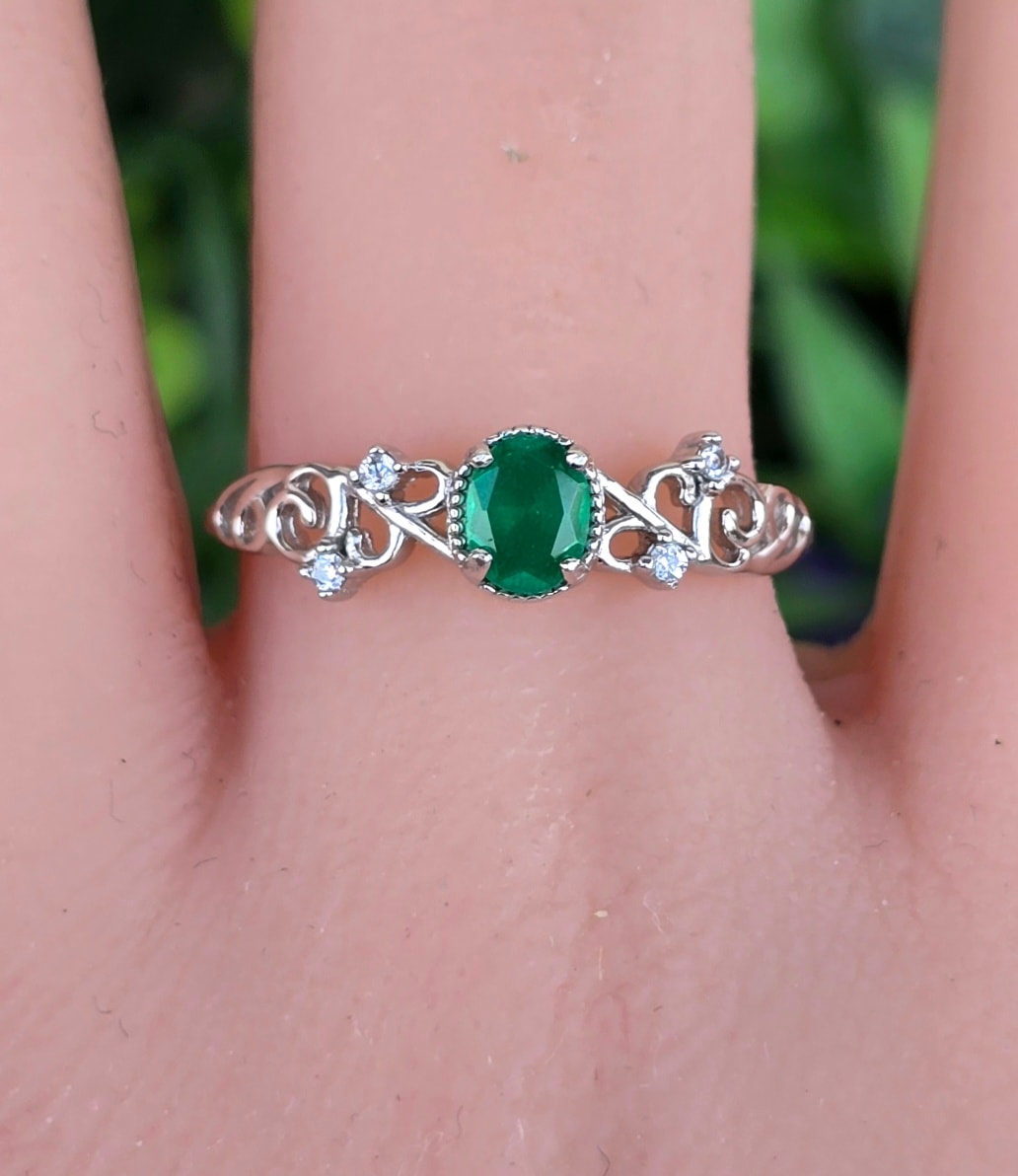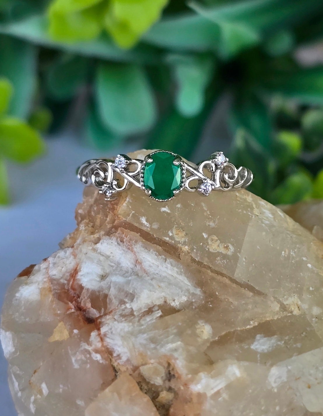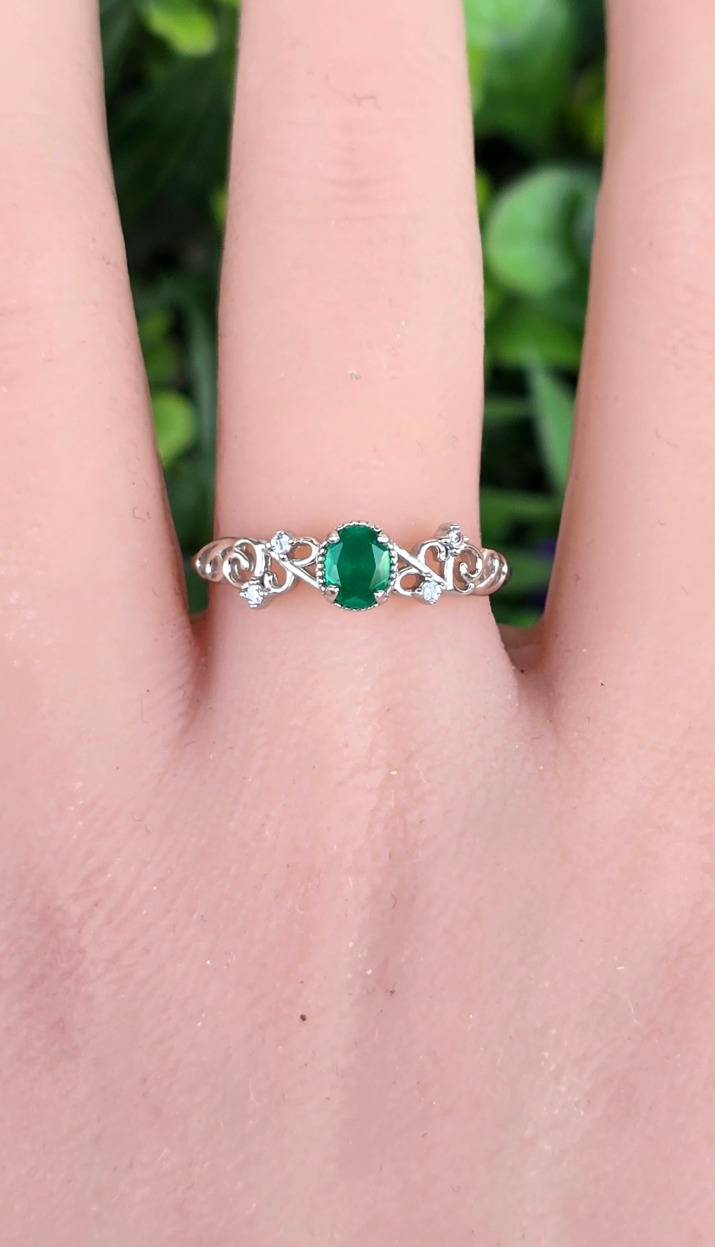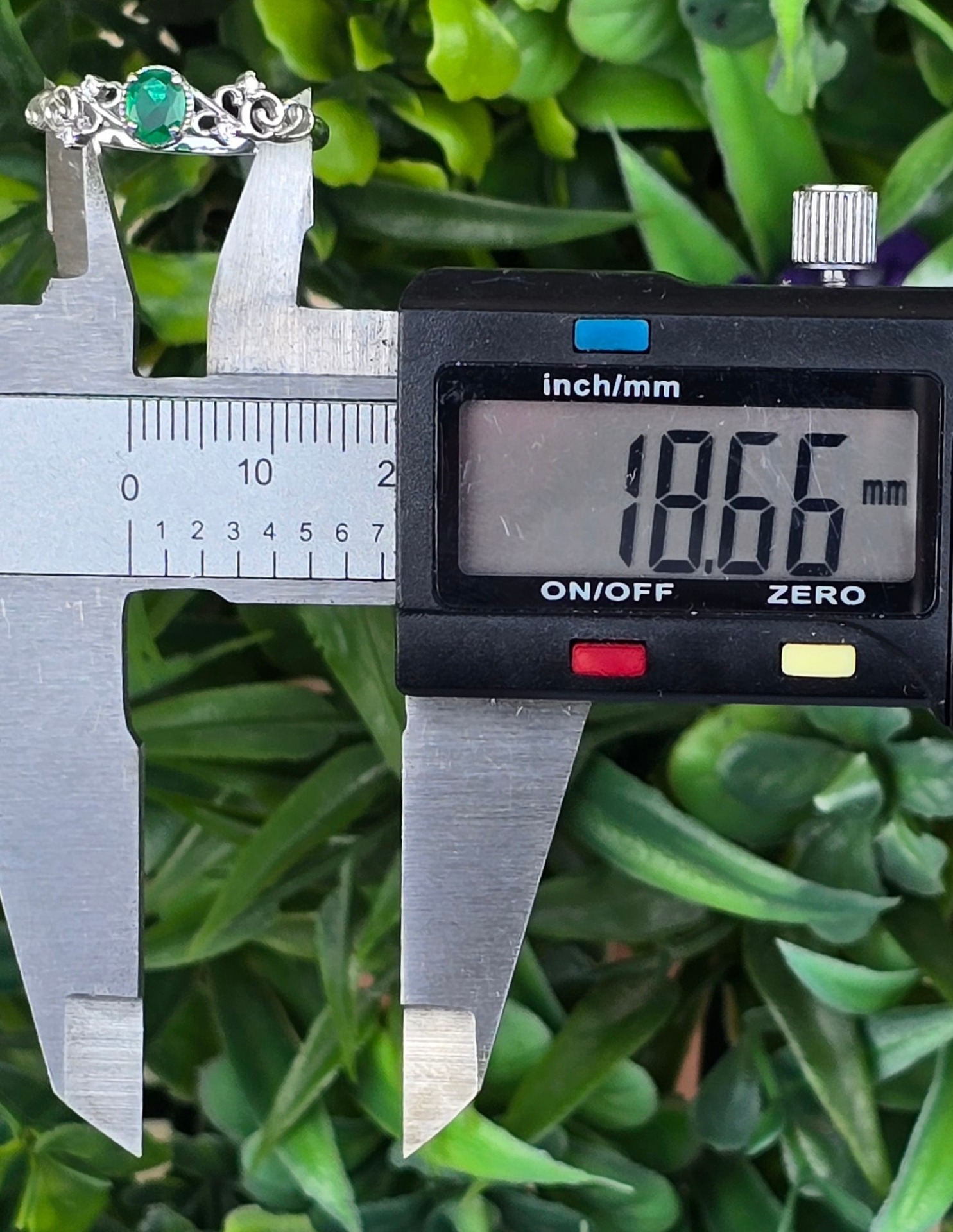 Inel contemporan din argint, cu smarald "doublet" și pietre cubic zirconia.