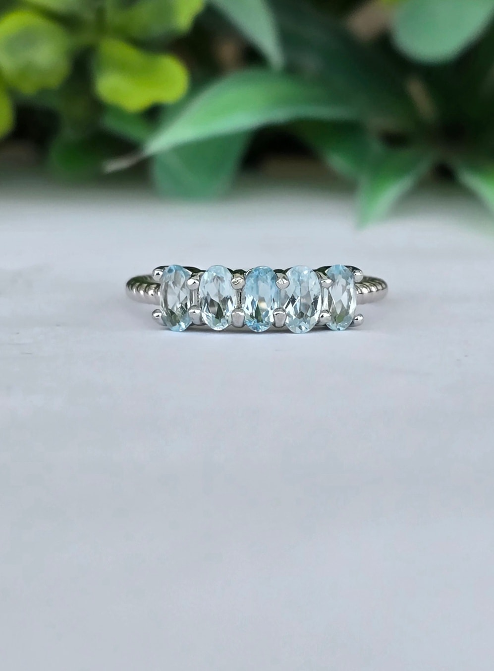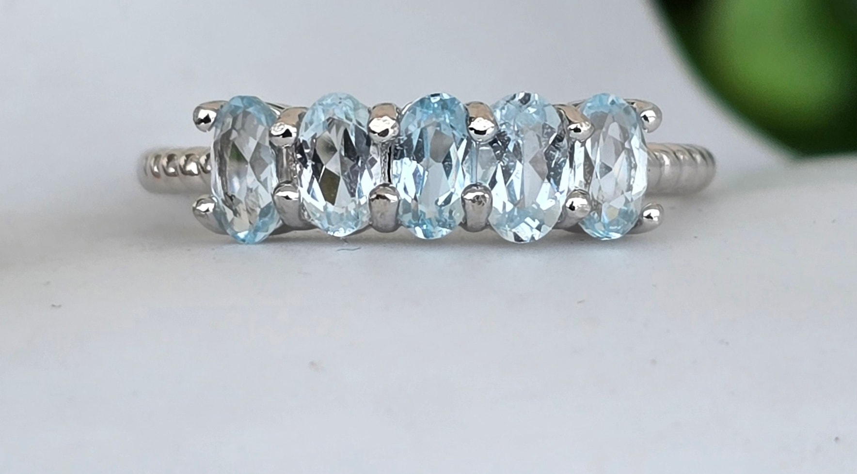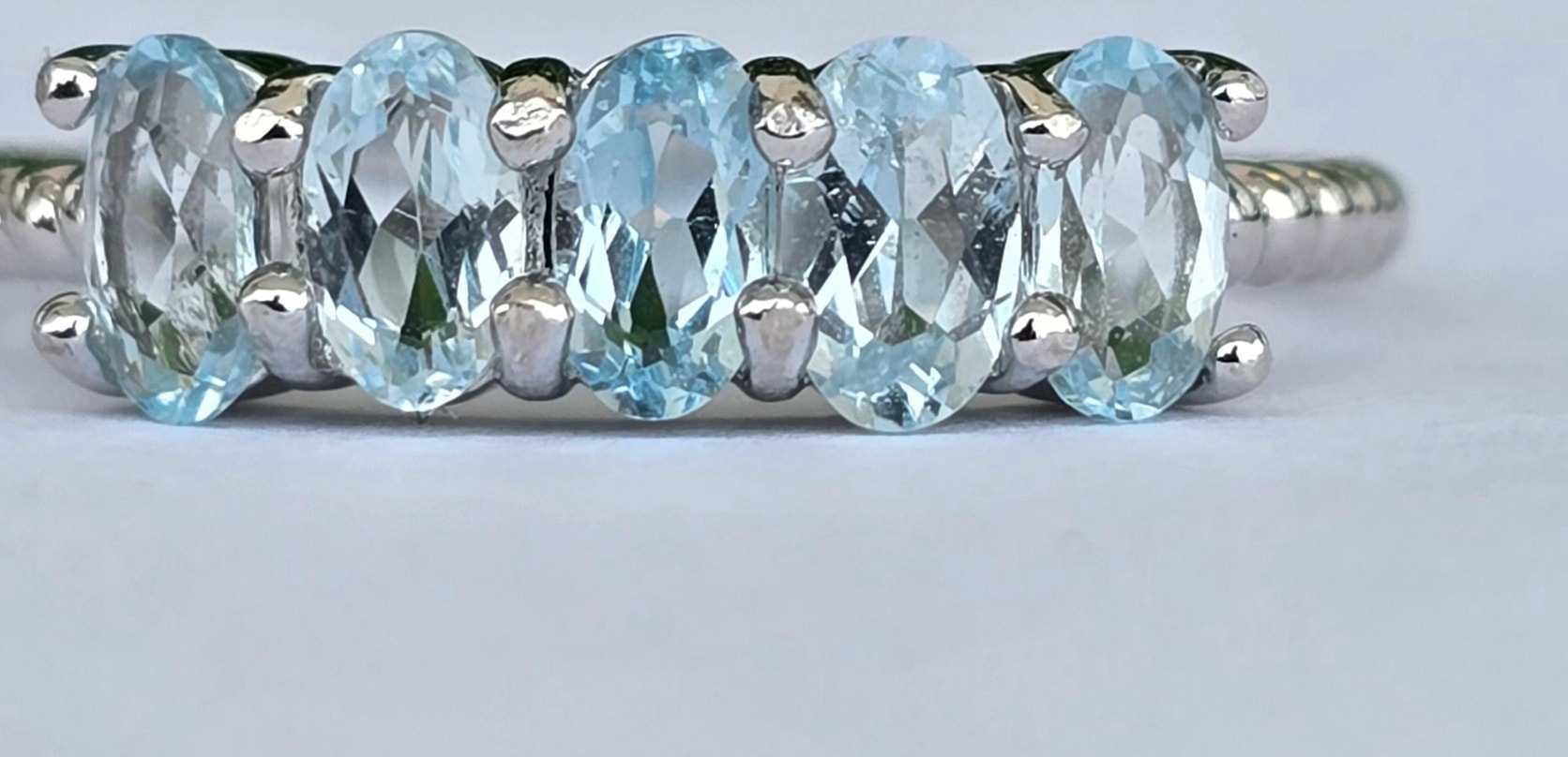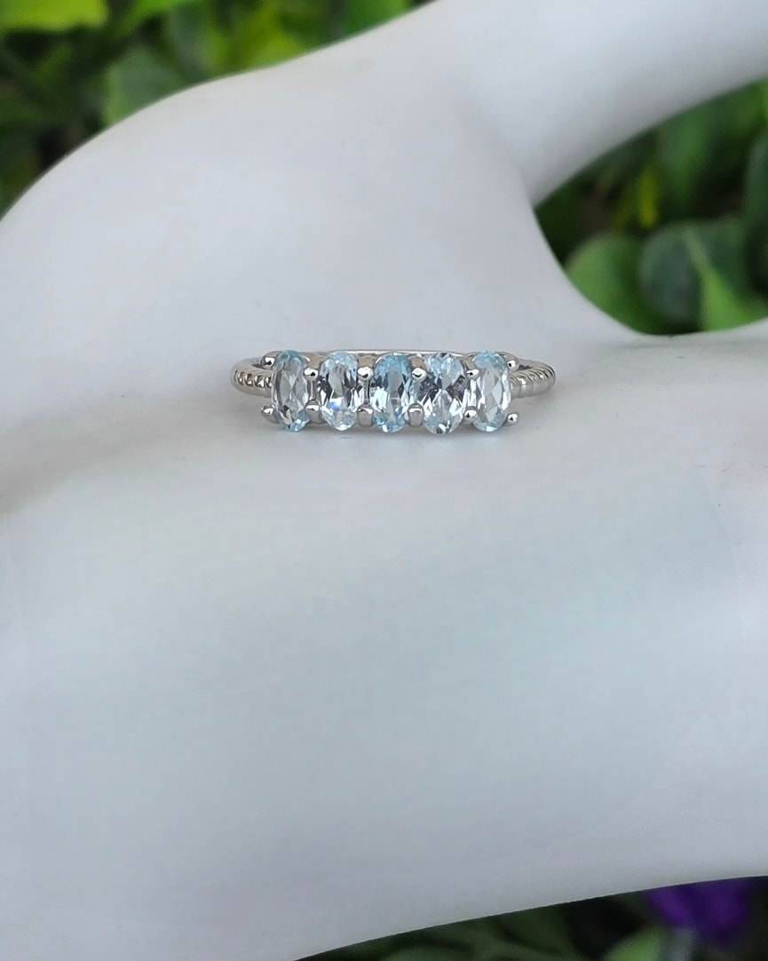 Inel contemporan din argint platinat, cu 5 topaze naturale.