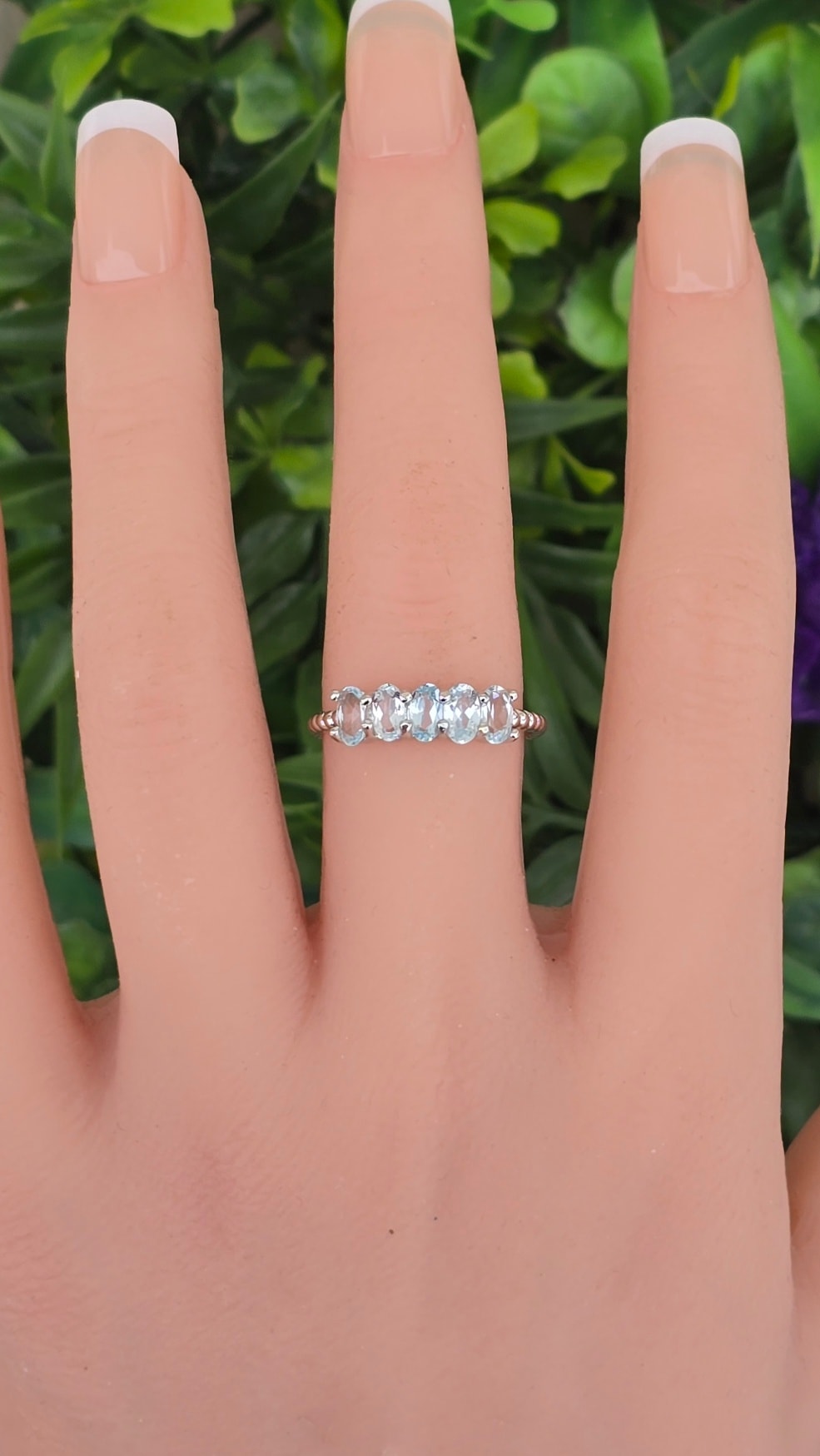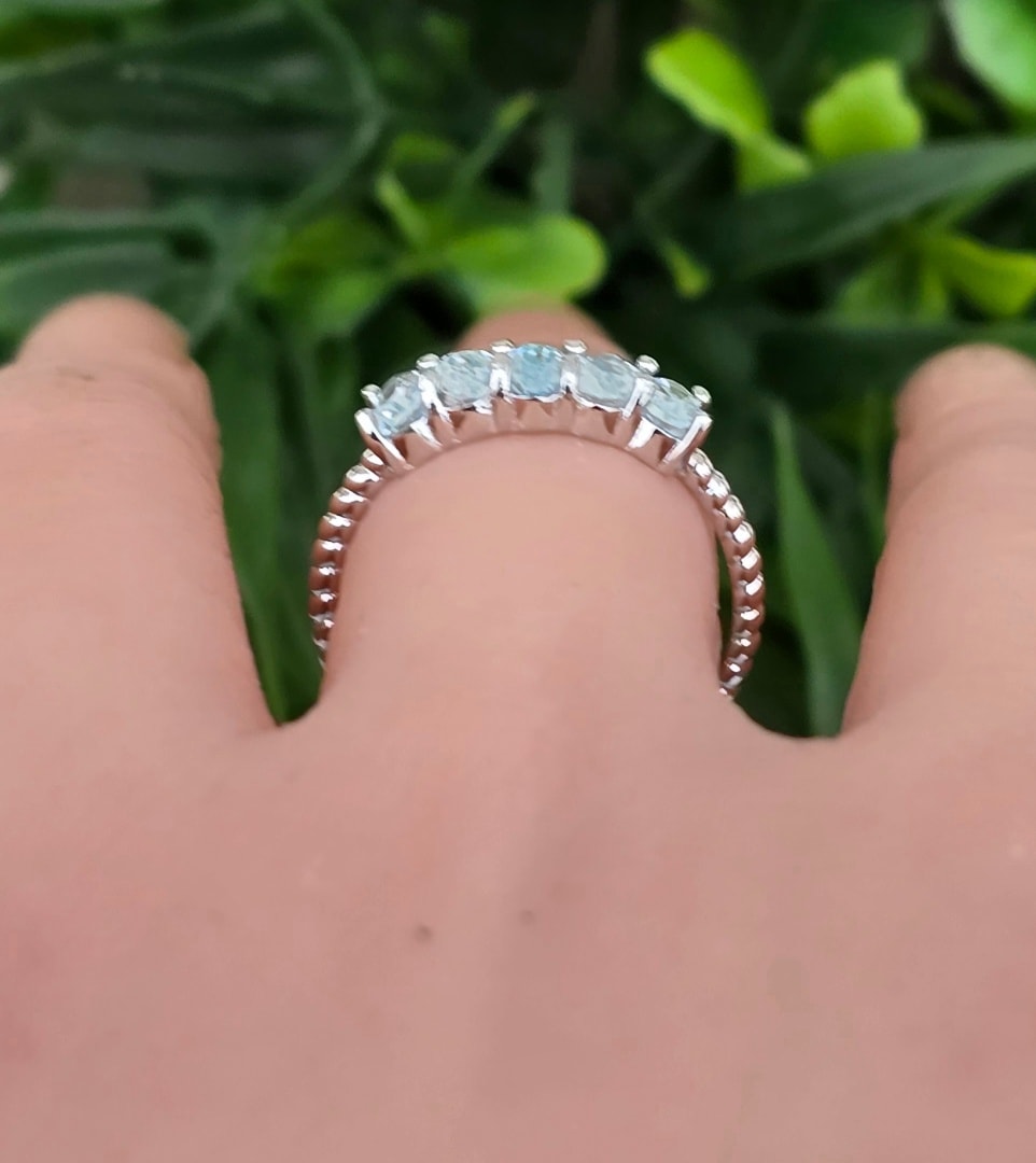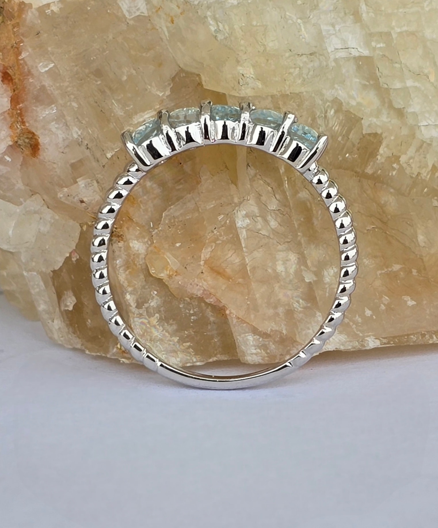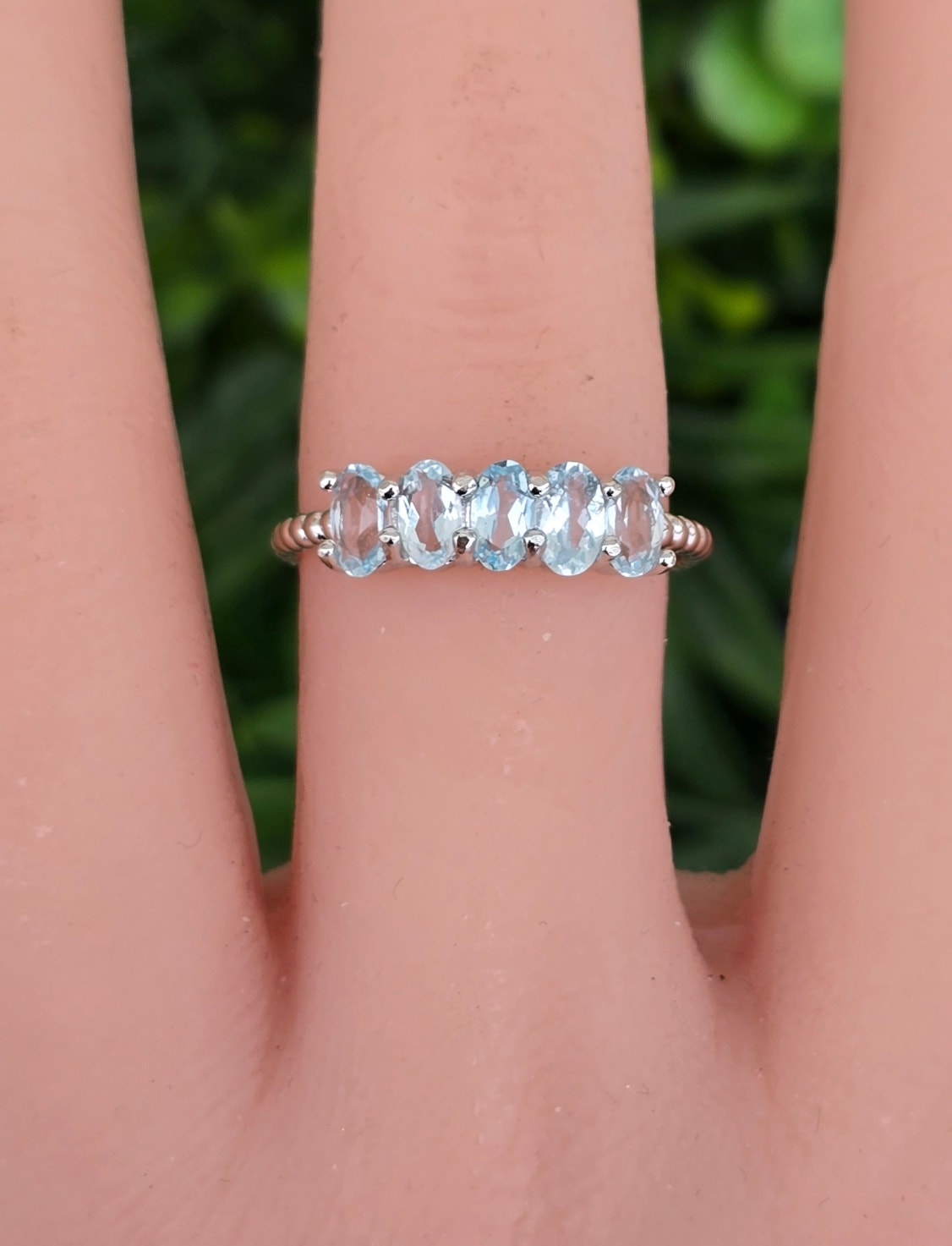 Inel contemporan din argint platinat, cu 5 topaze naturale.