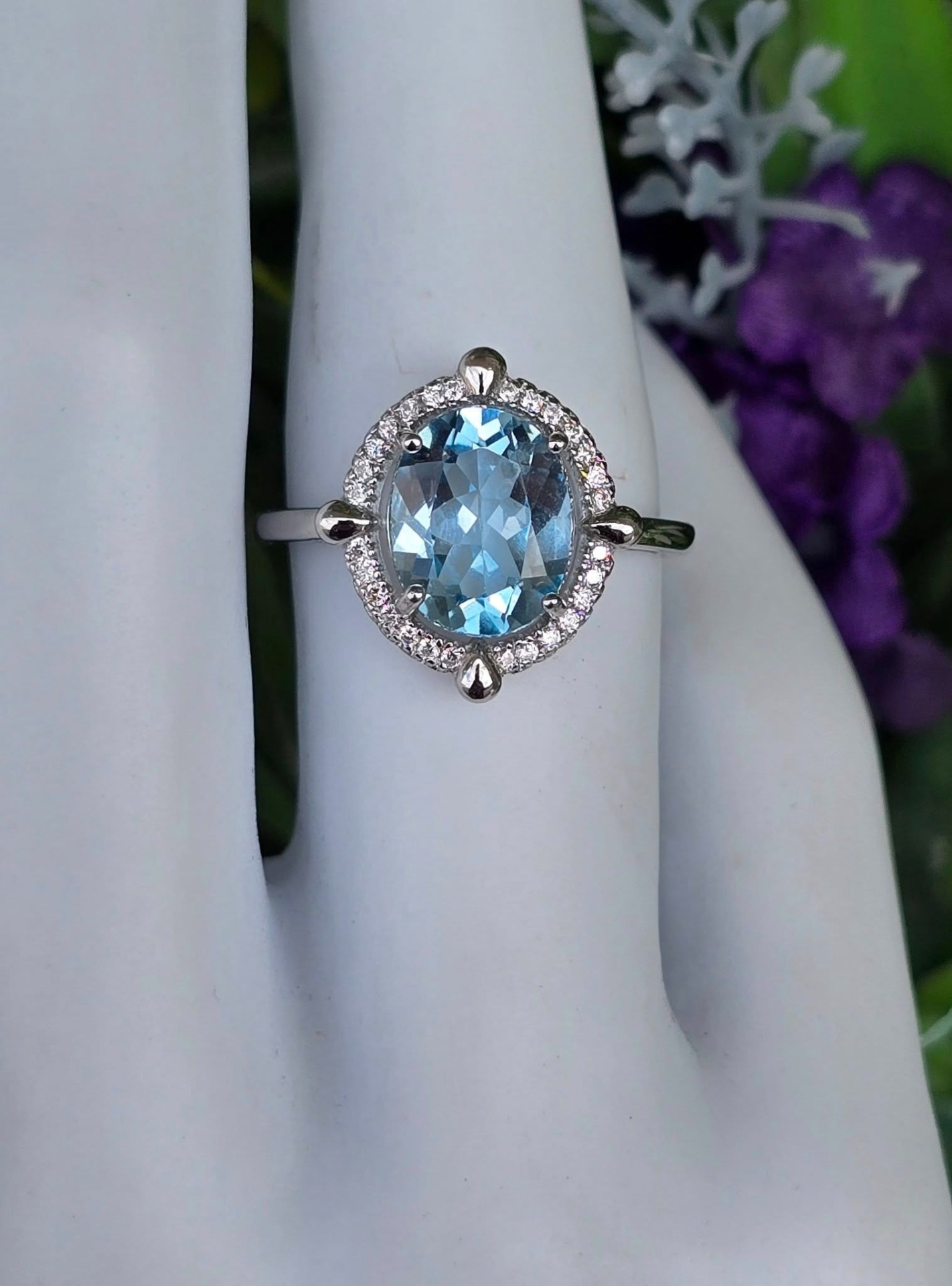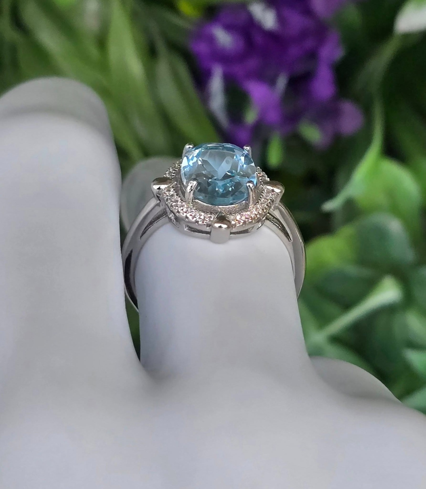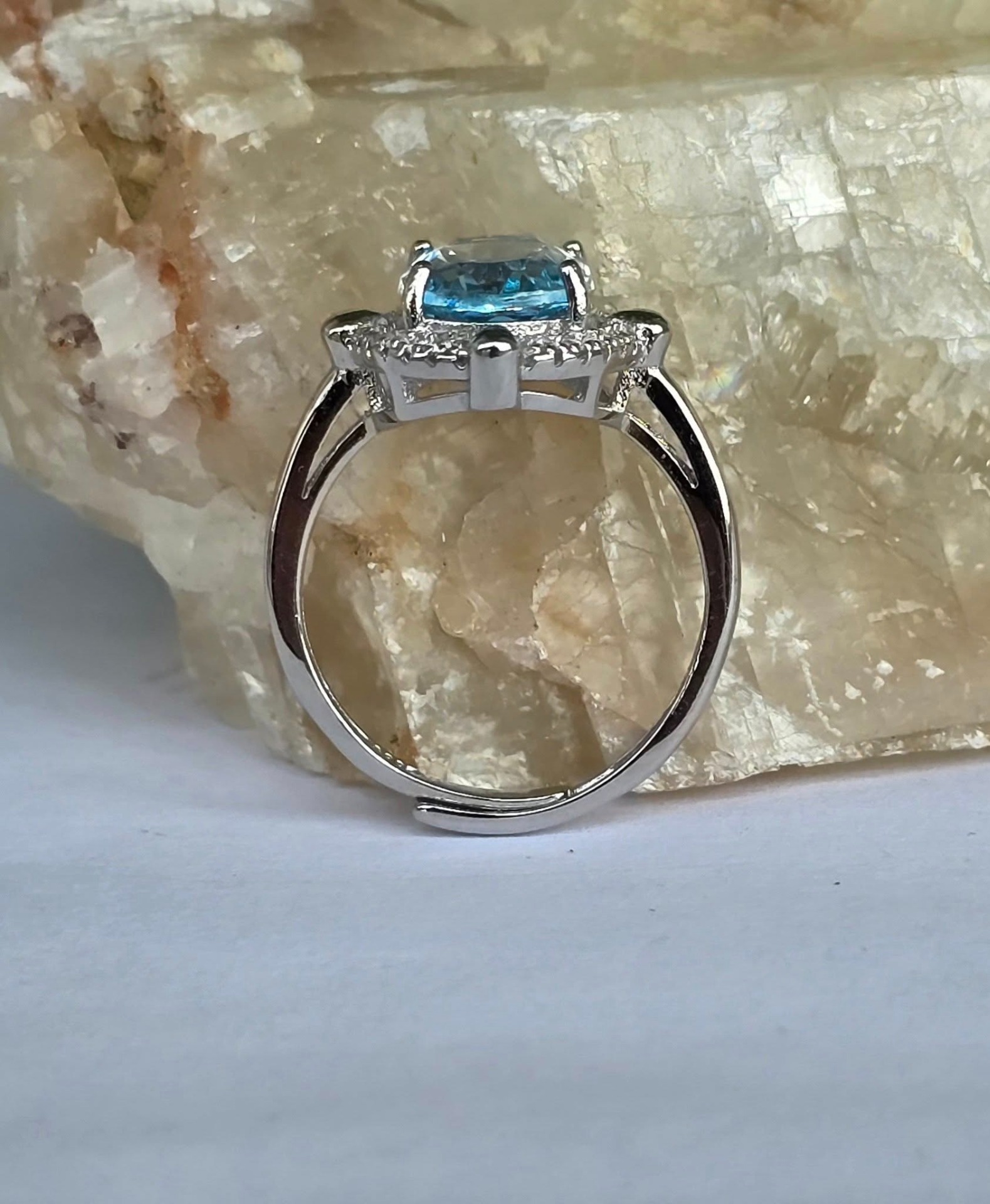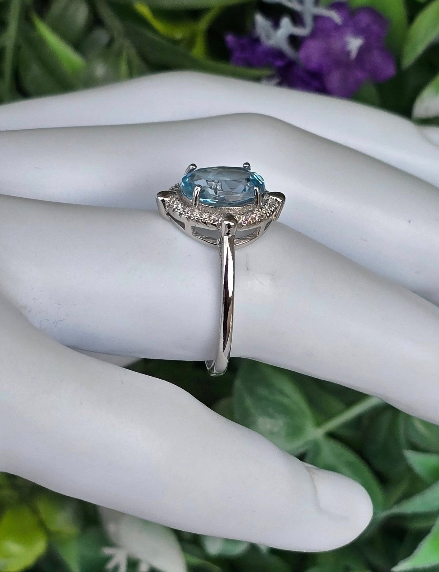 Inel contemporan din argint platinat, cu un superb topaz natural și pietre cubic zirconia.